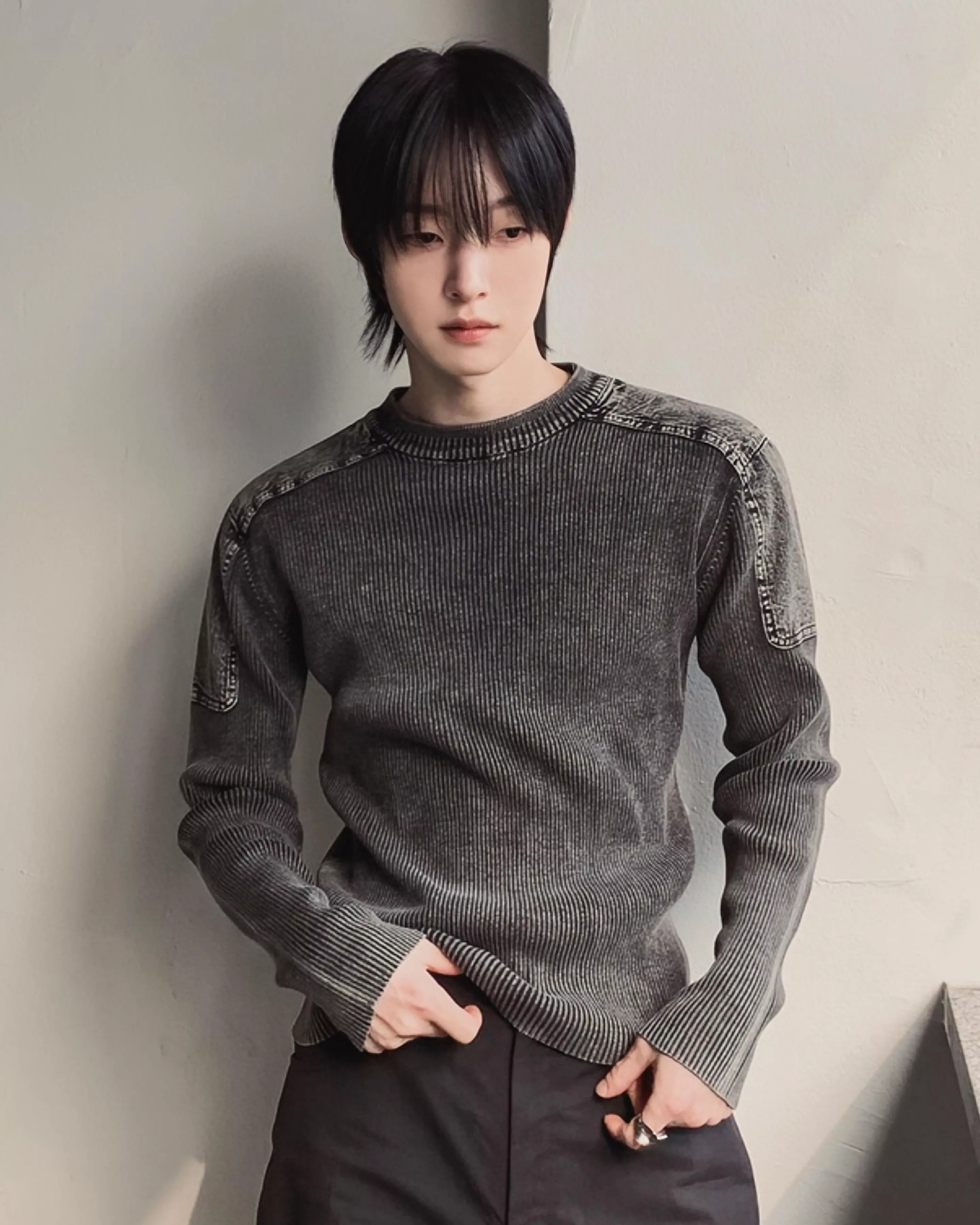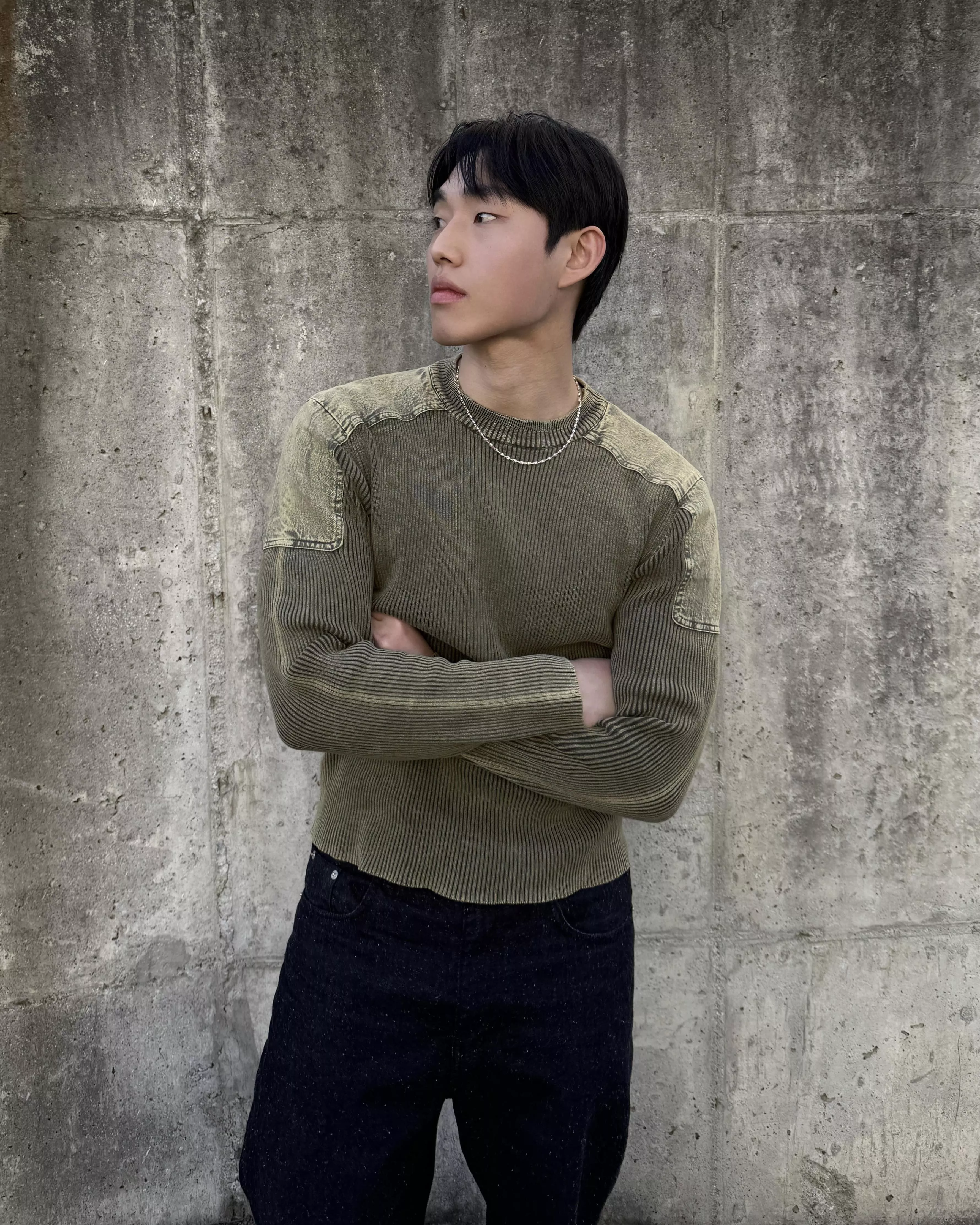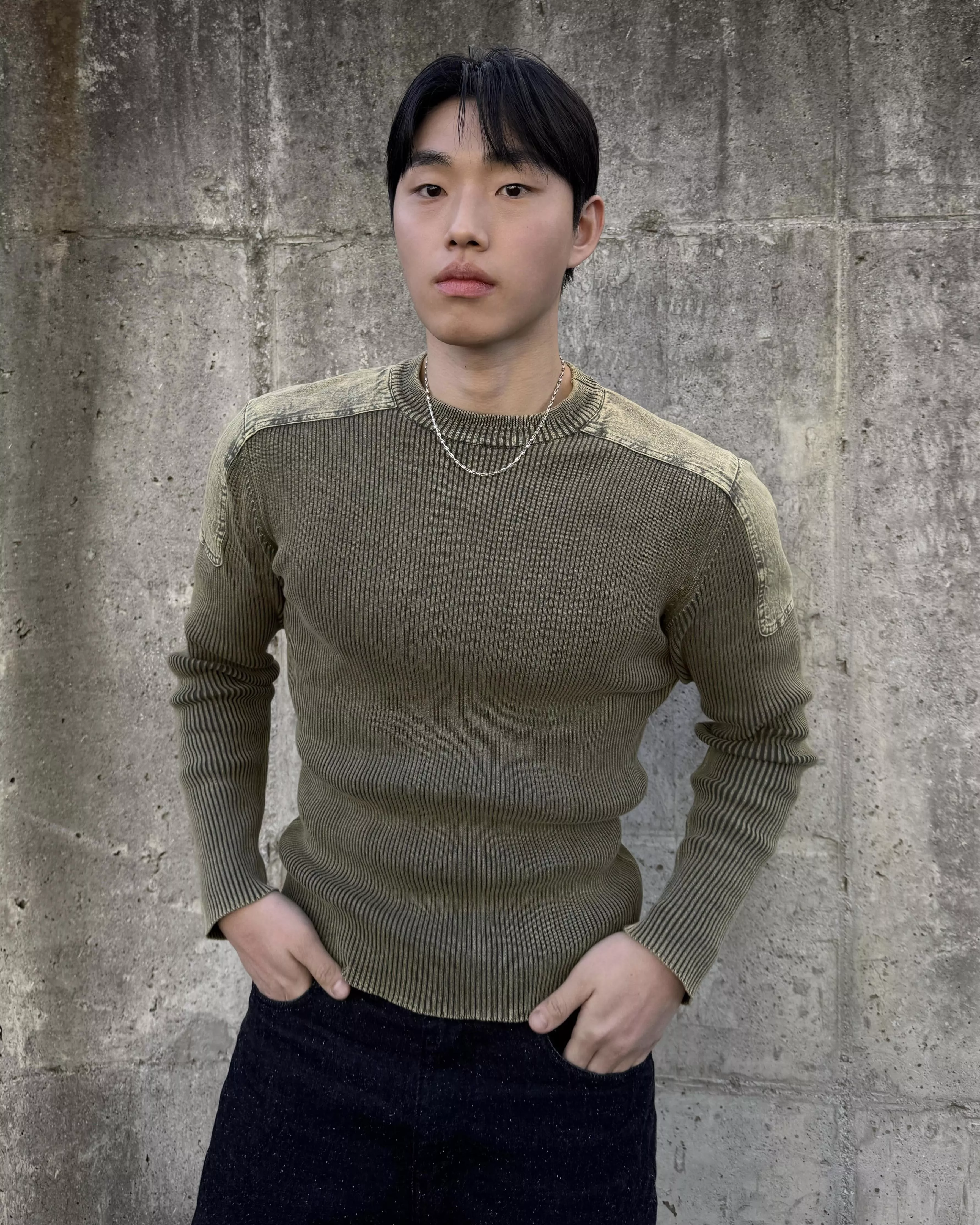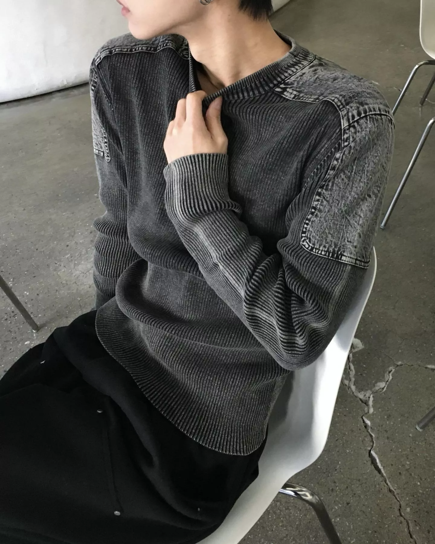 帶有復古感的水洗染色魅力的厚磅修身針織款