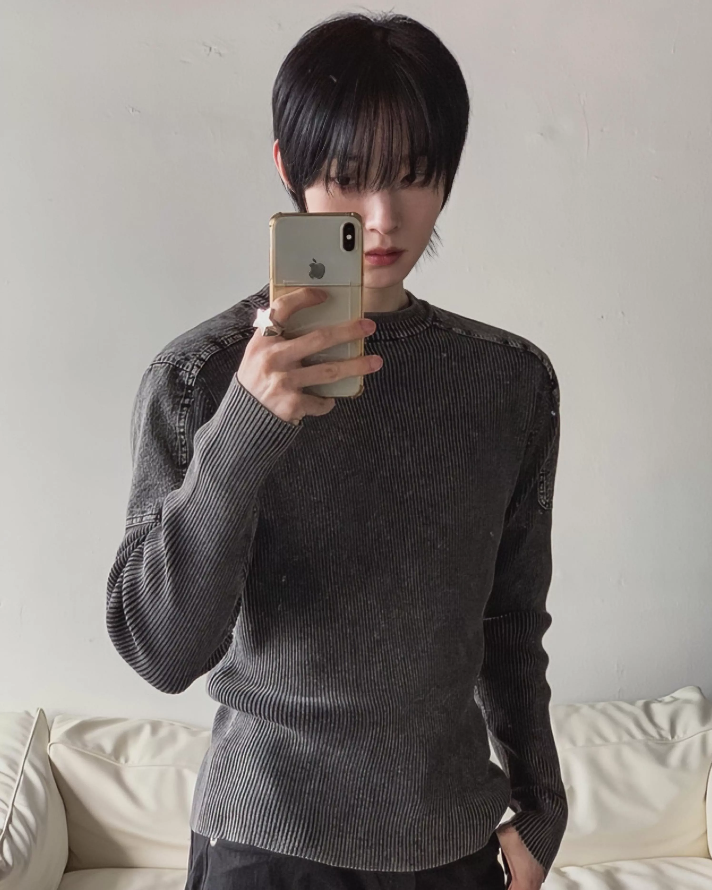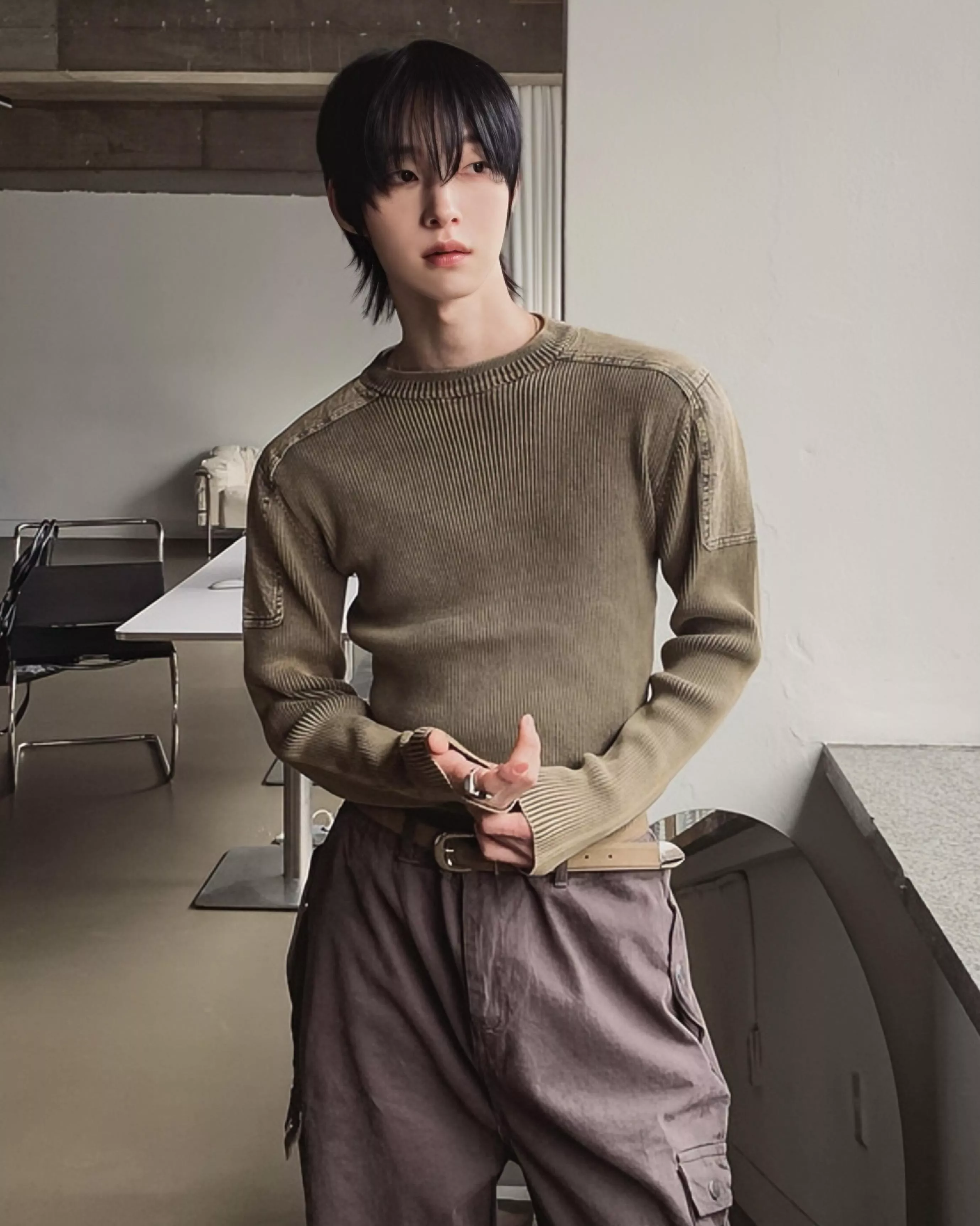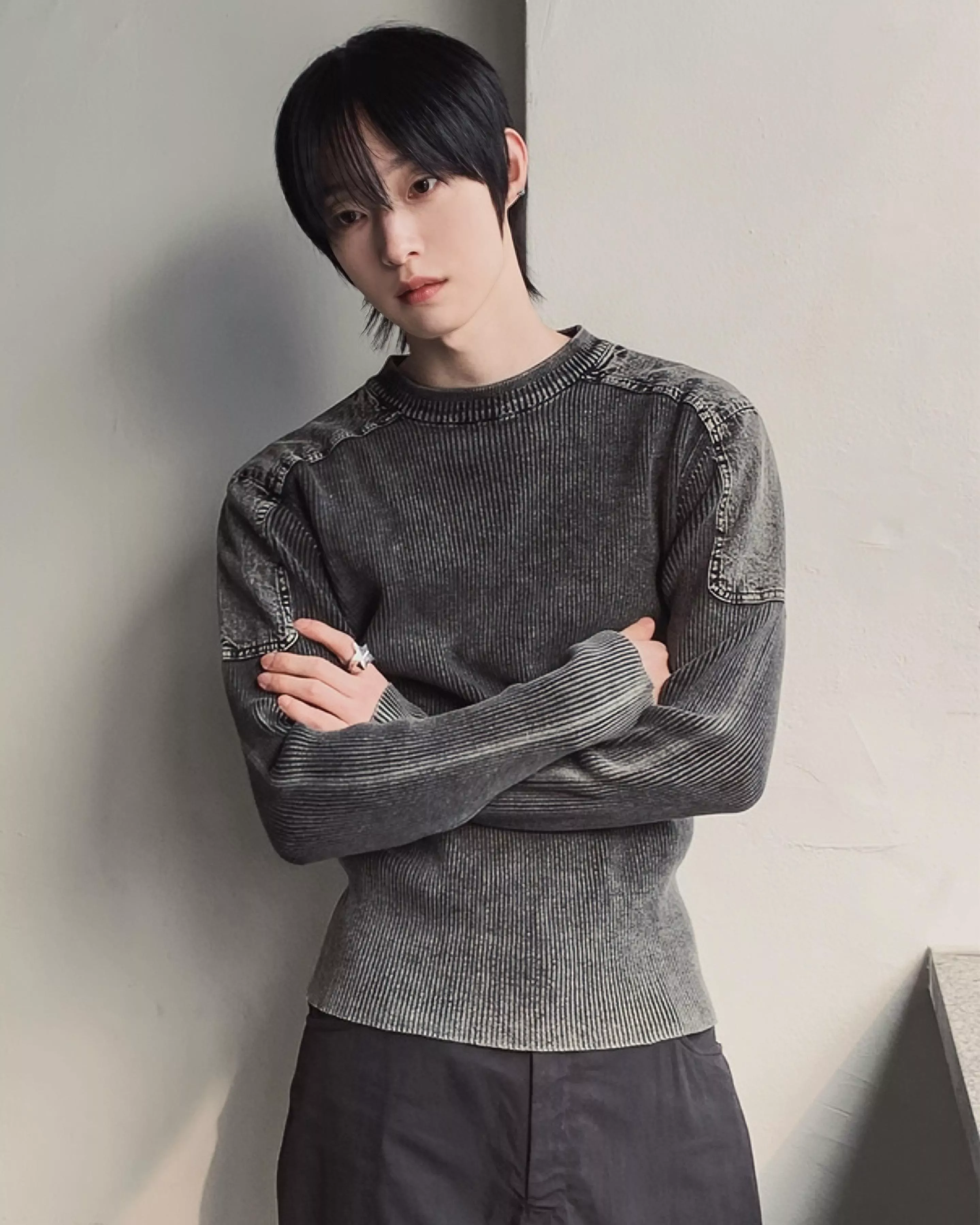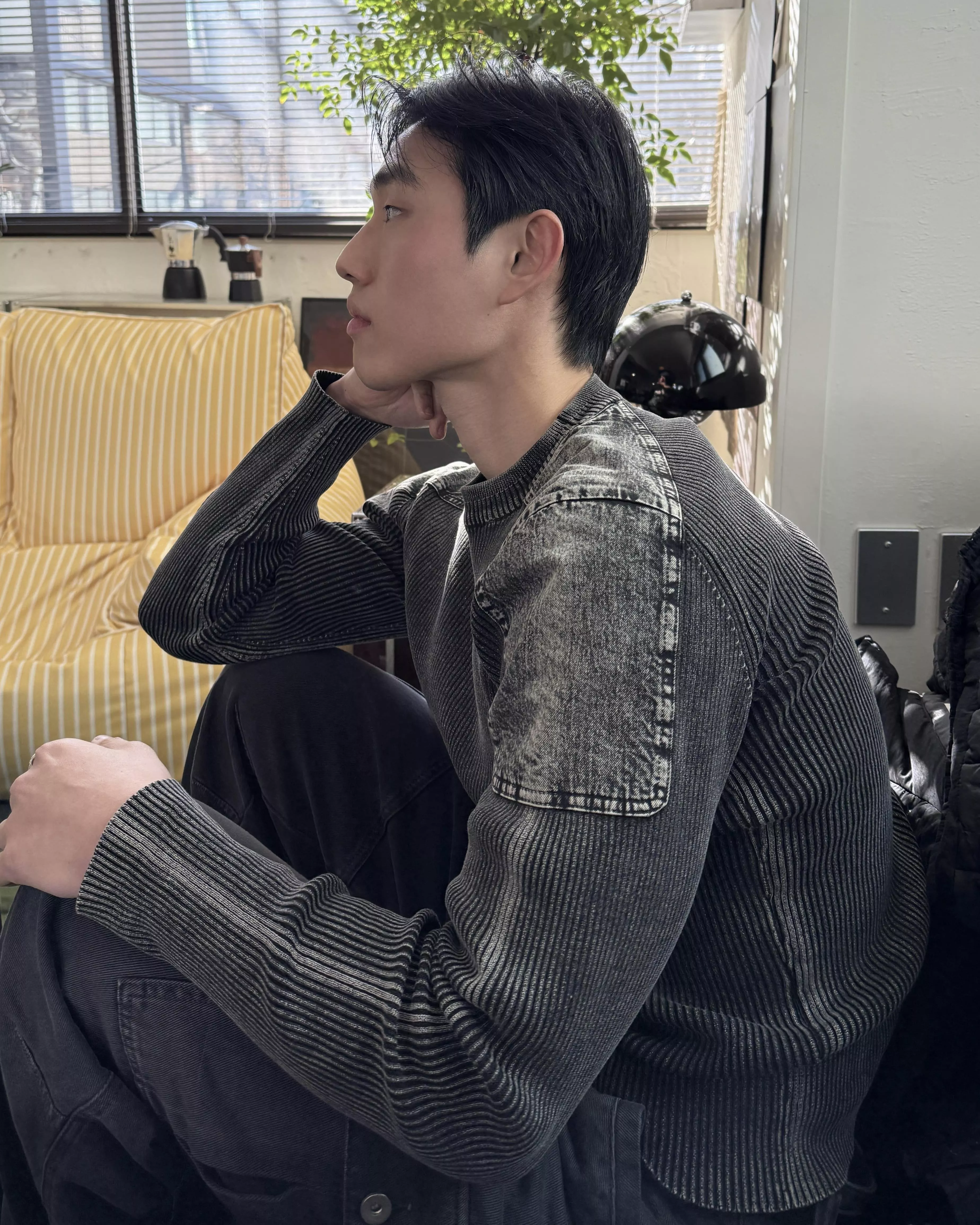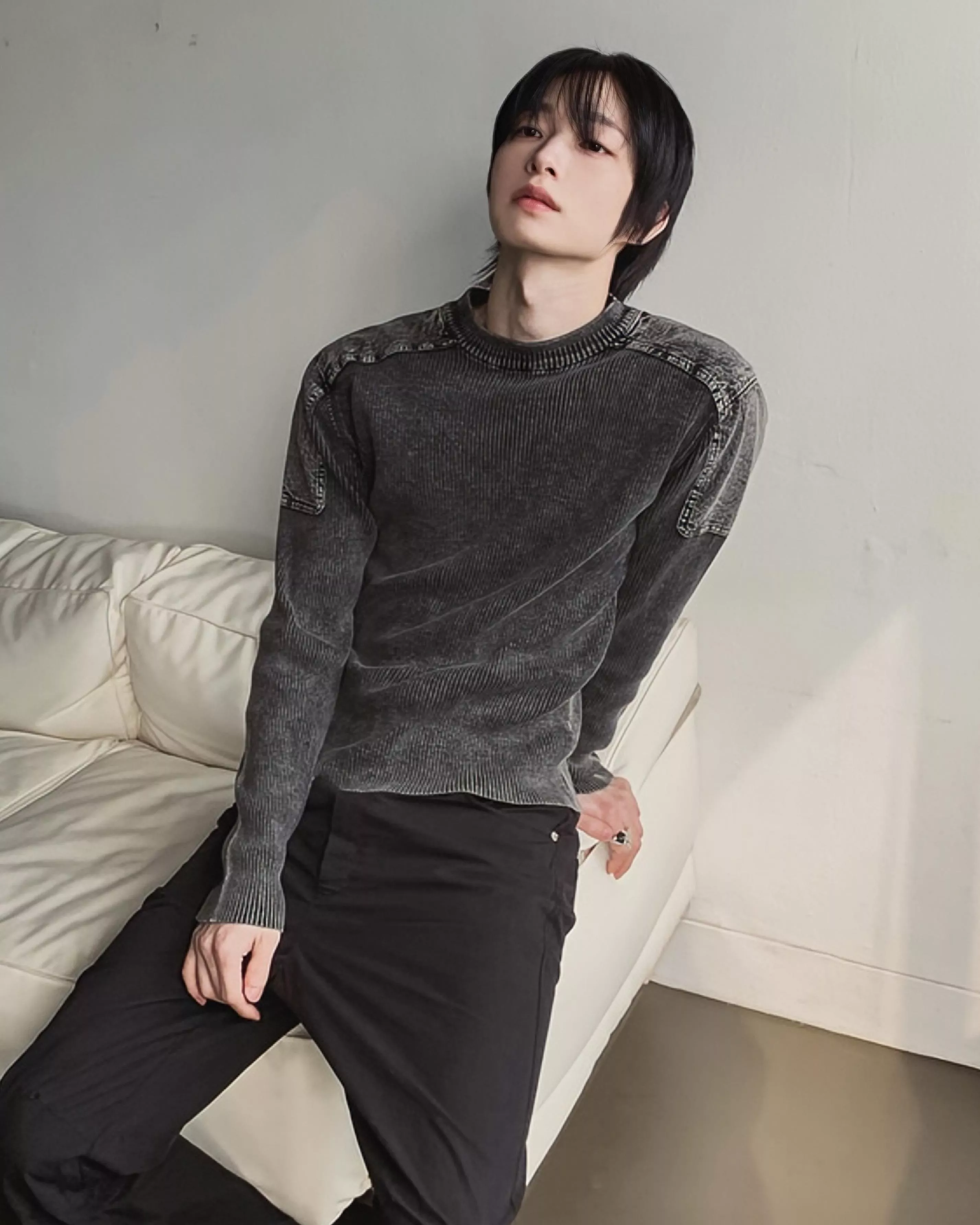 帶有復古感的水洗染色魅力的厚磅修身針織款