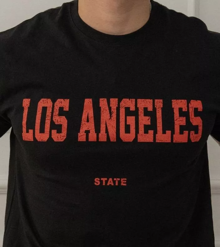 正面以帥氣硬派的破損字體印花為設計