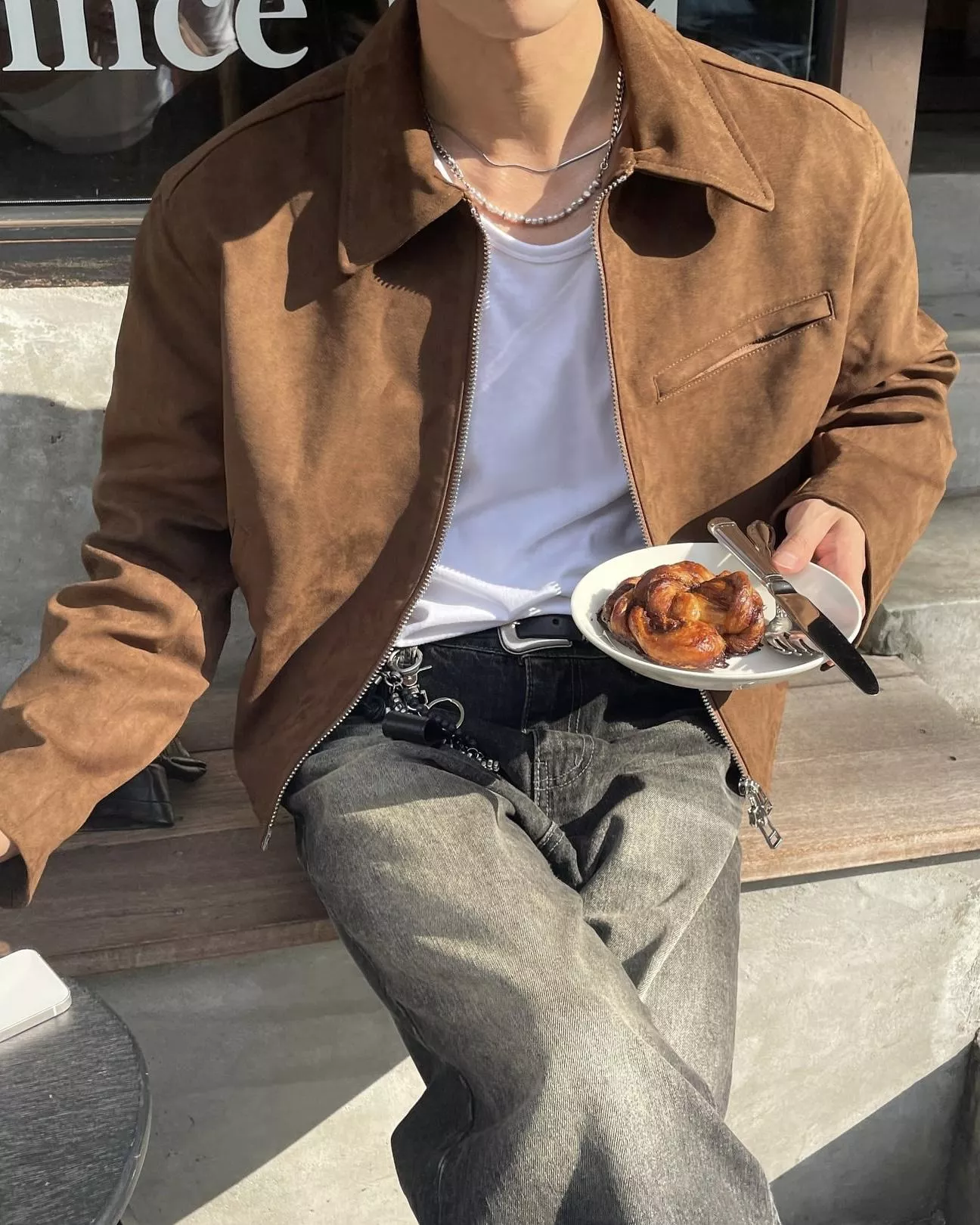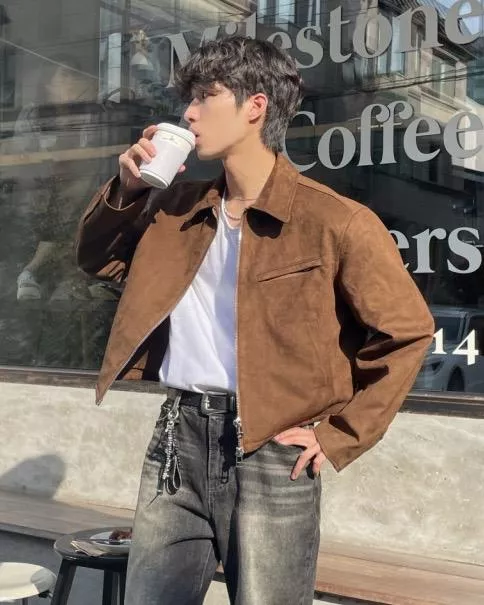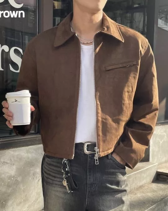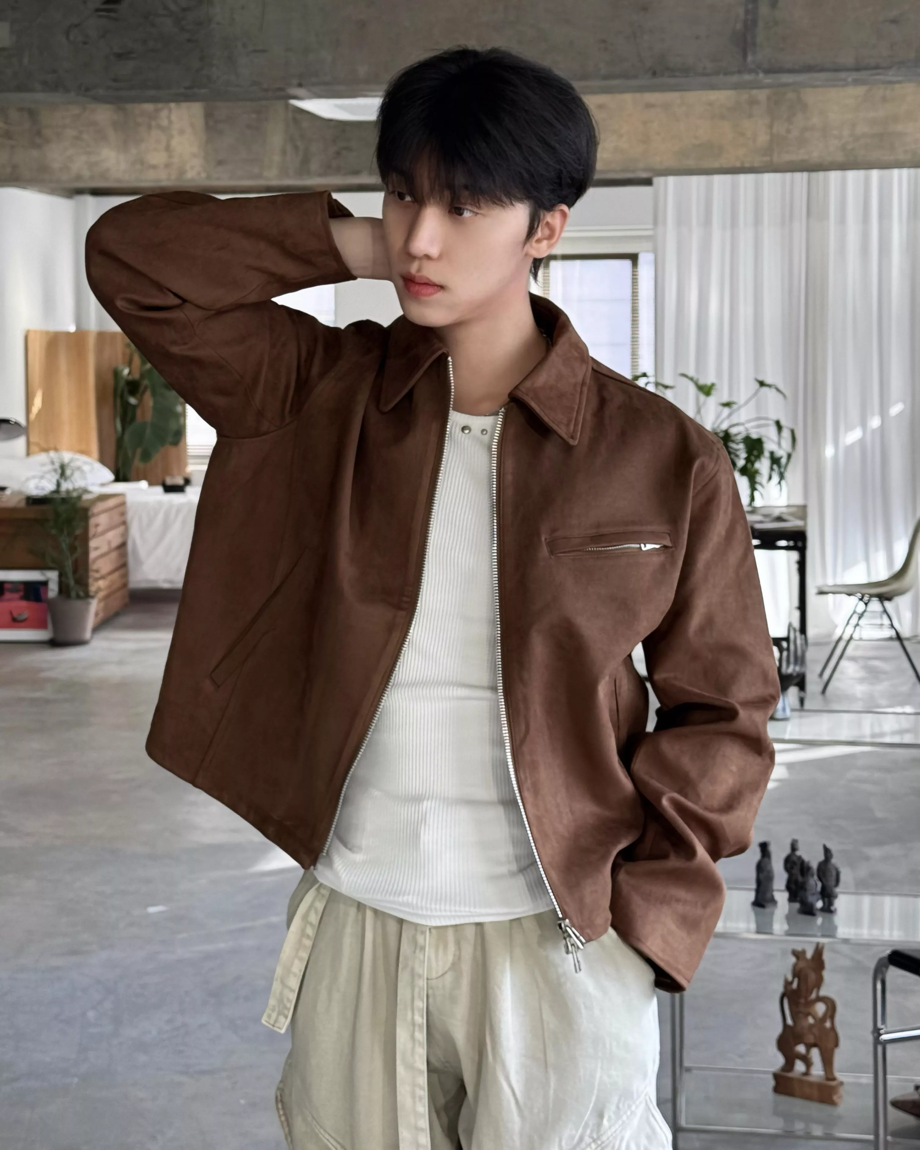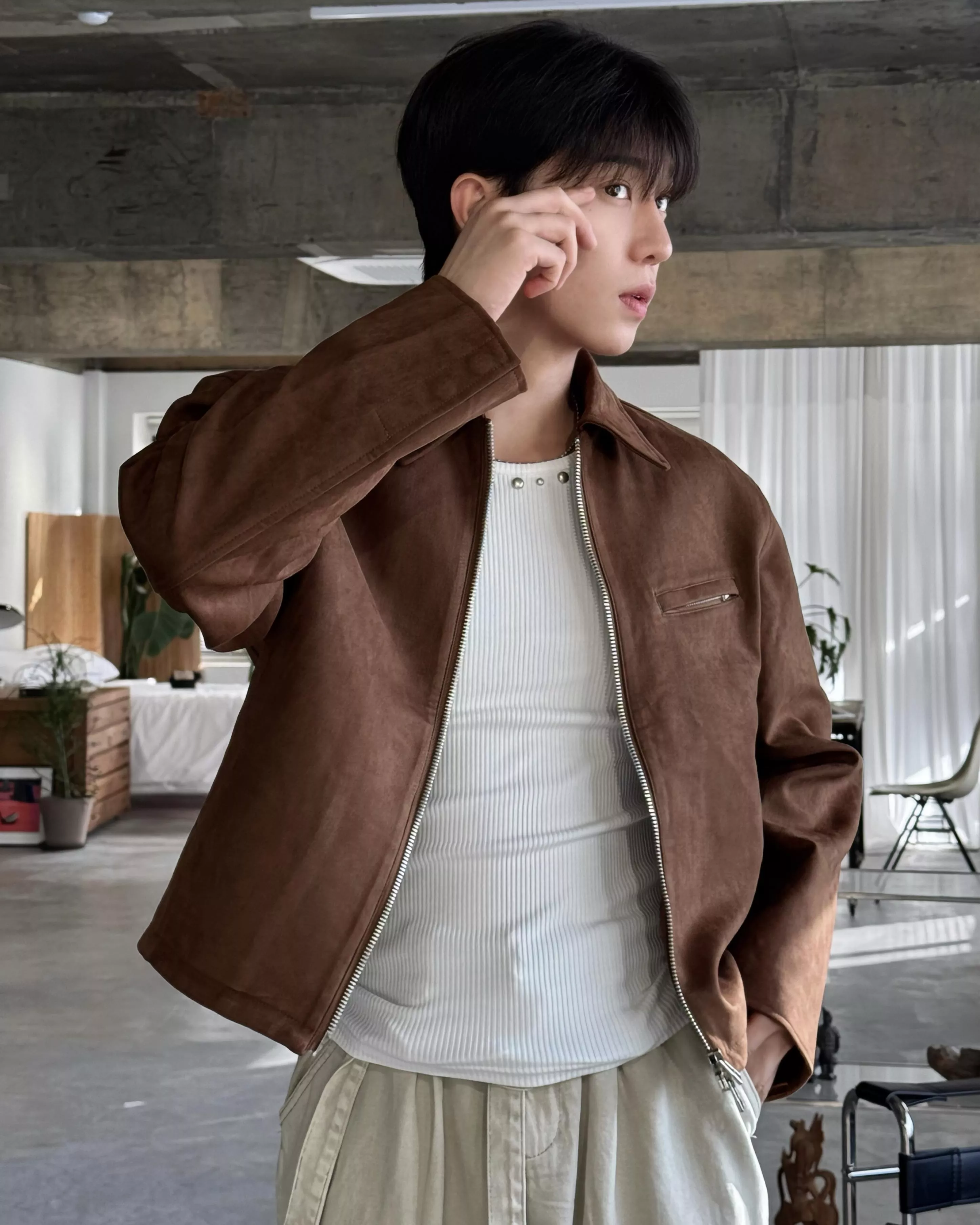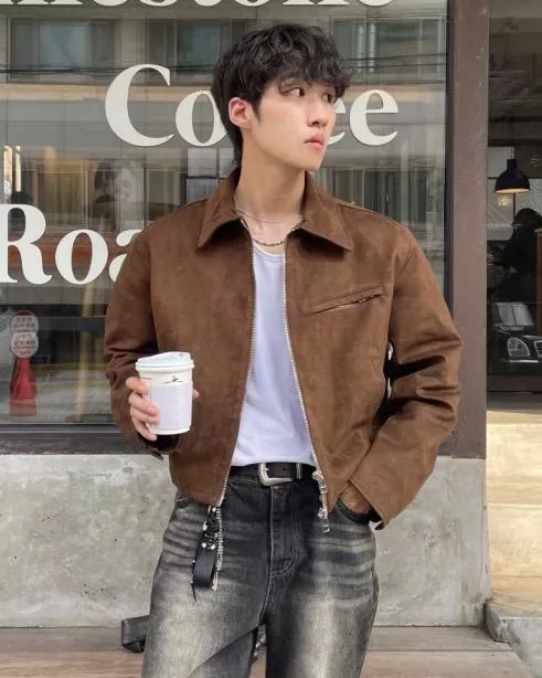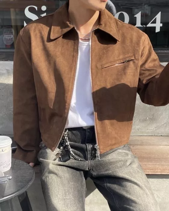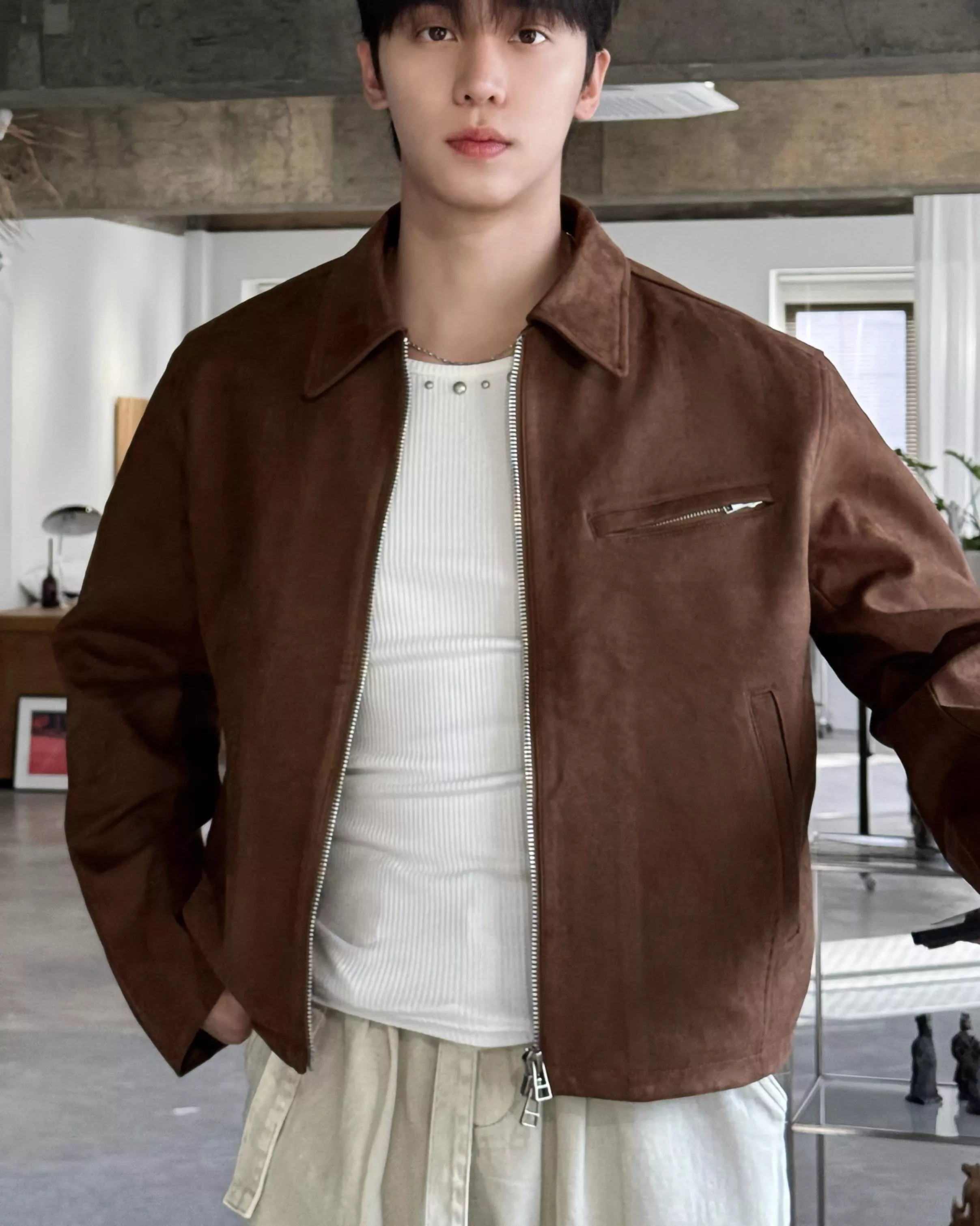 挺感十足的麂皮穿上身 整個肩線看起來更立體