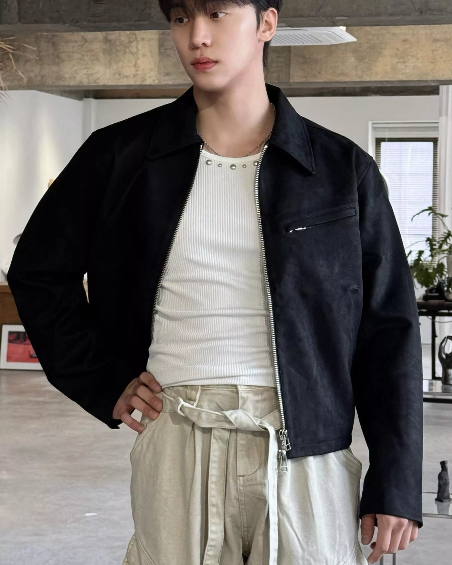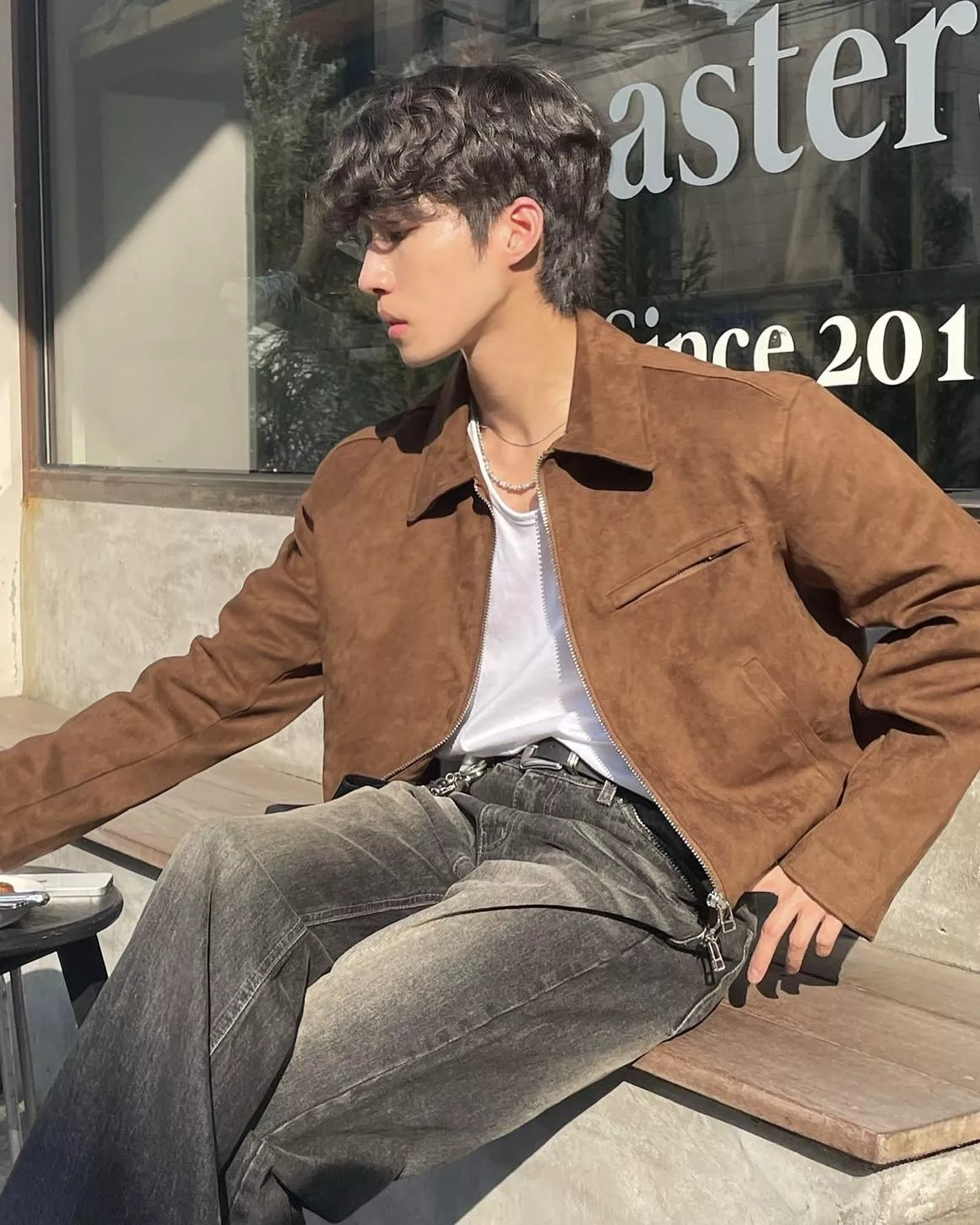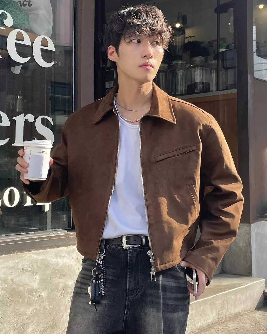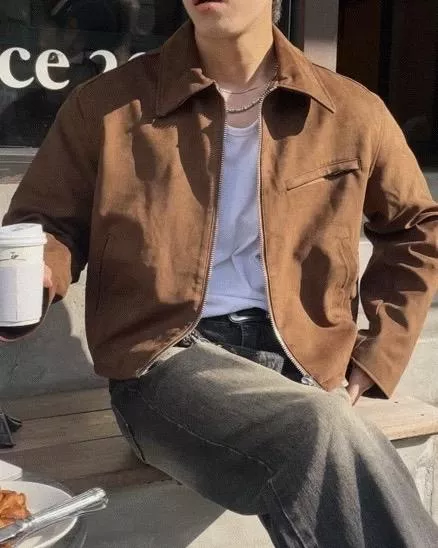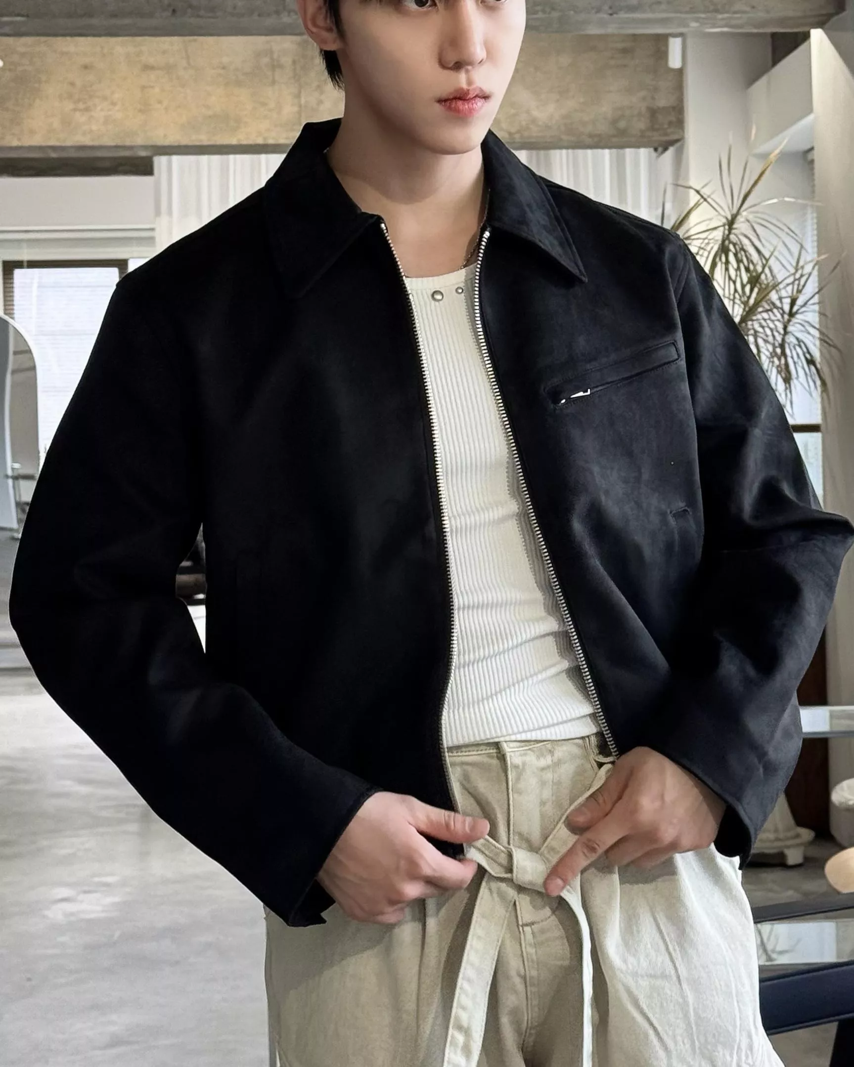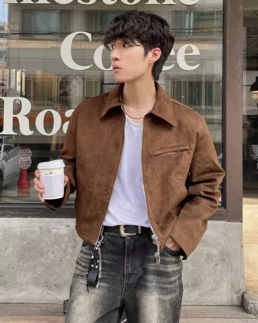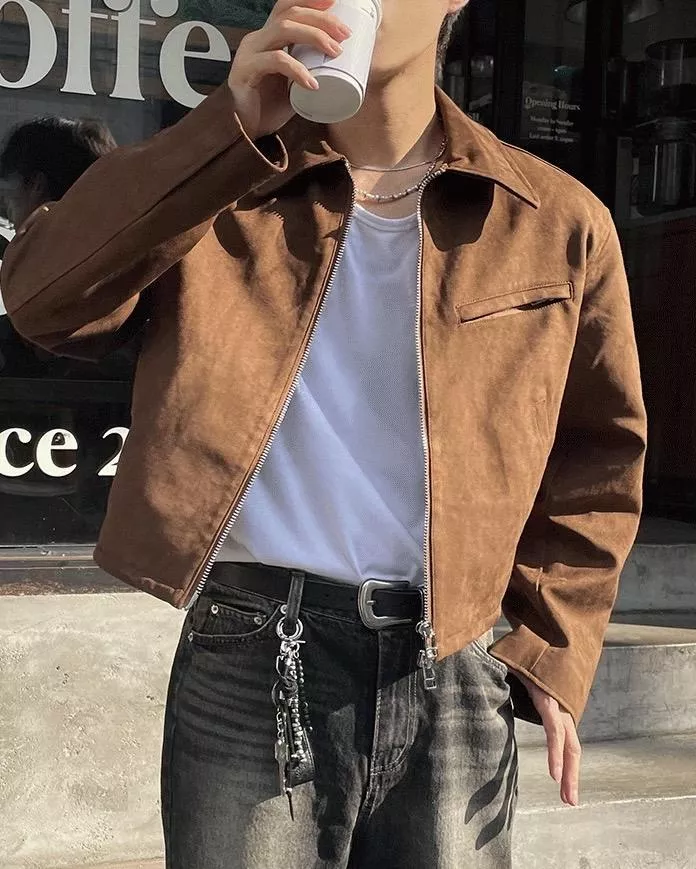 挺感十足的麂皮穿上身 整個肩線看起來更立體