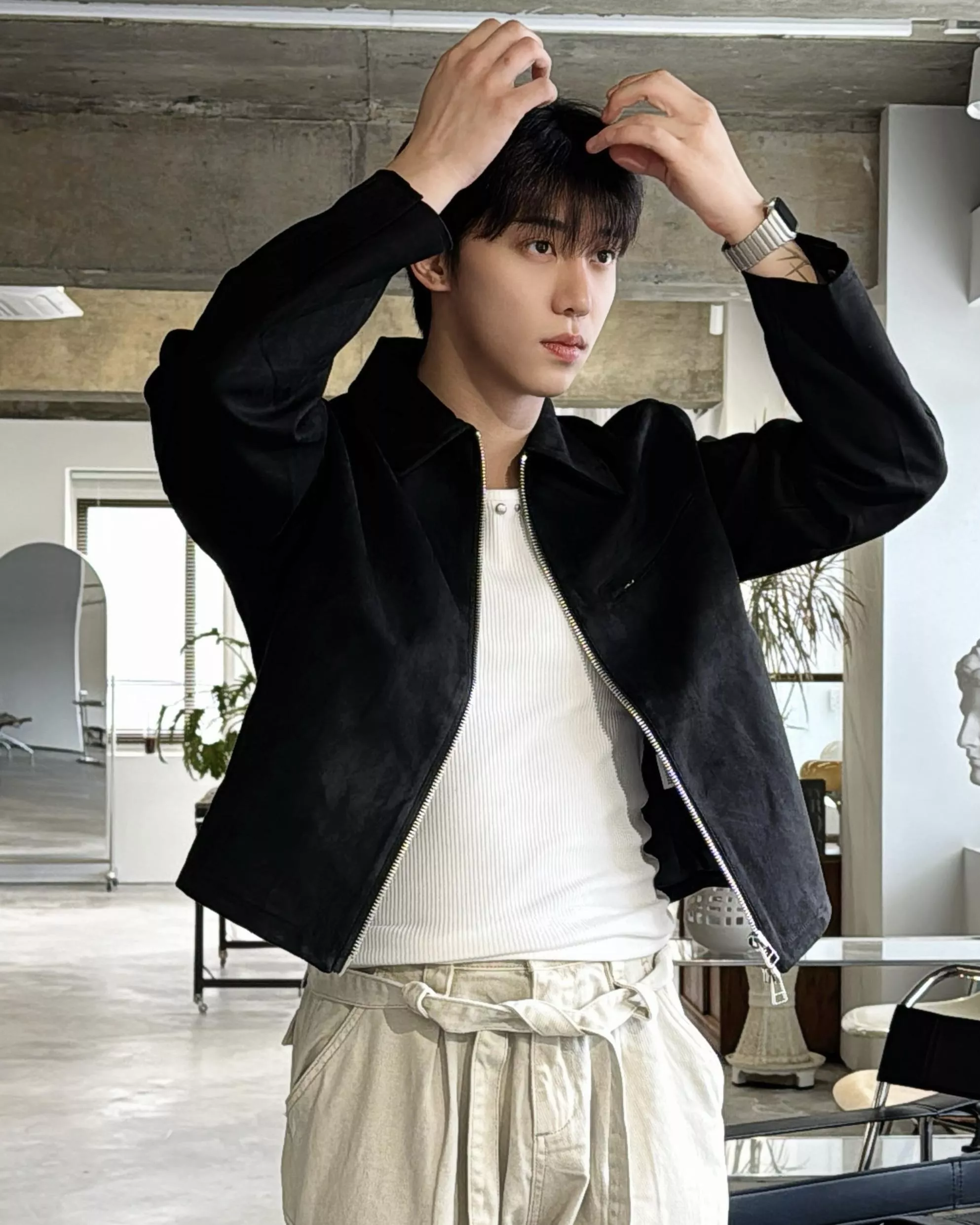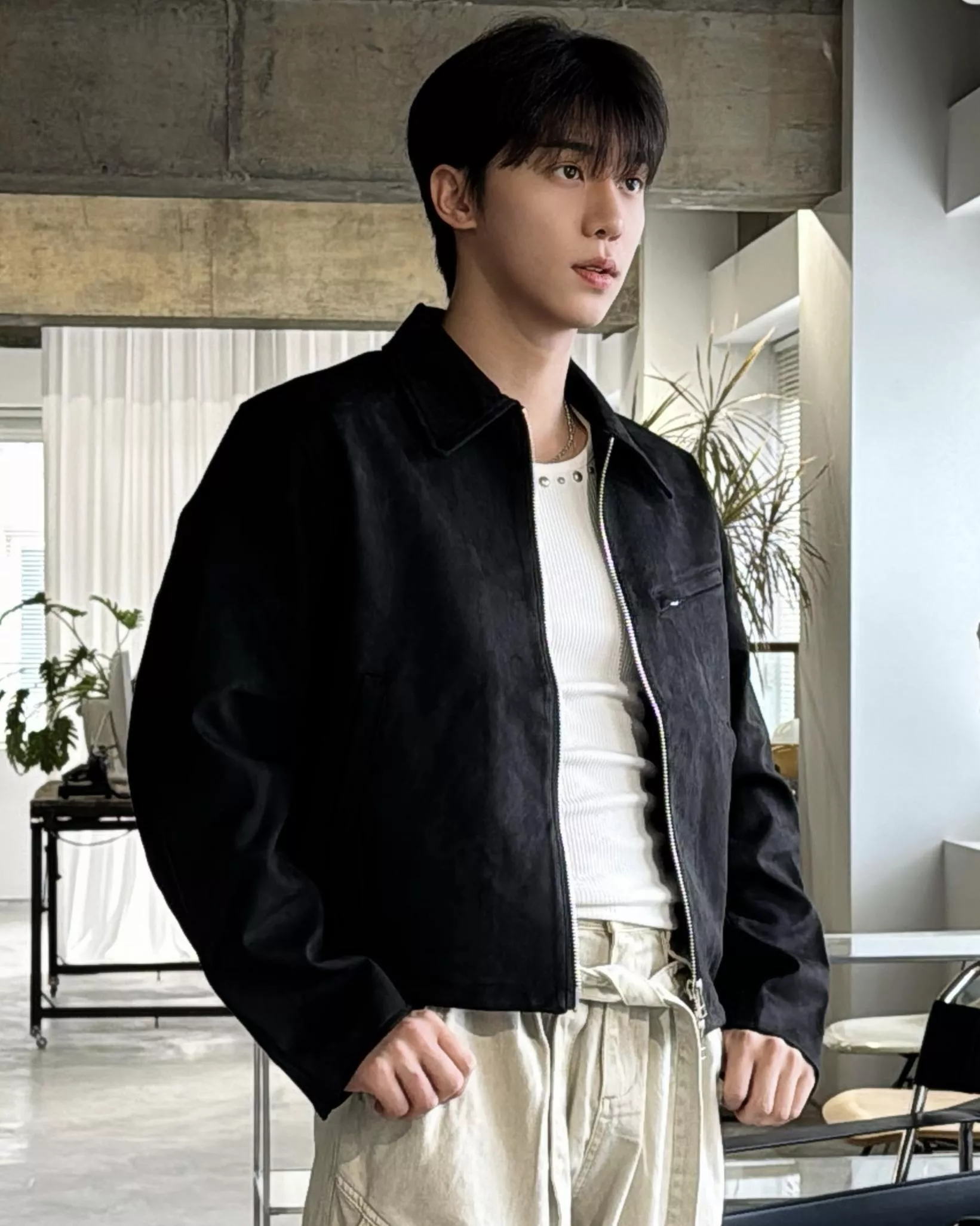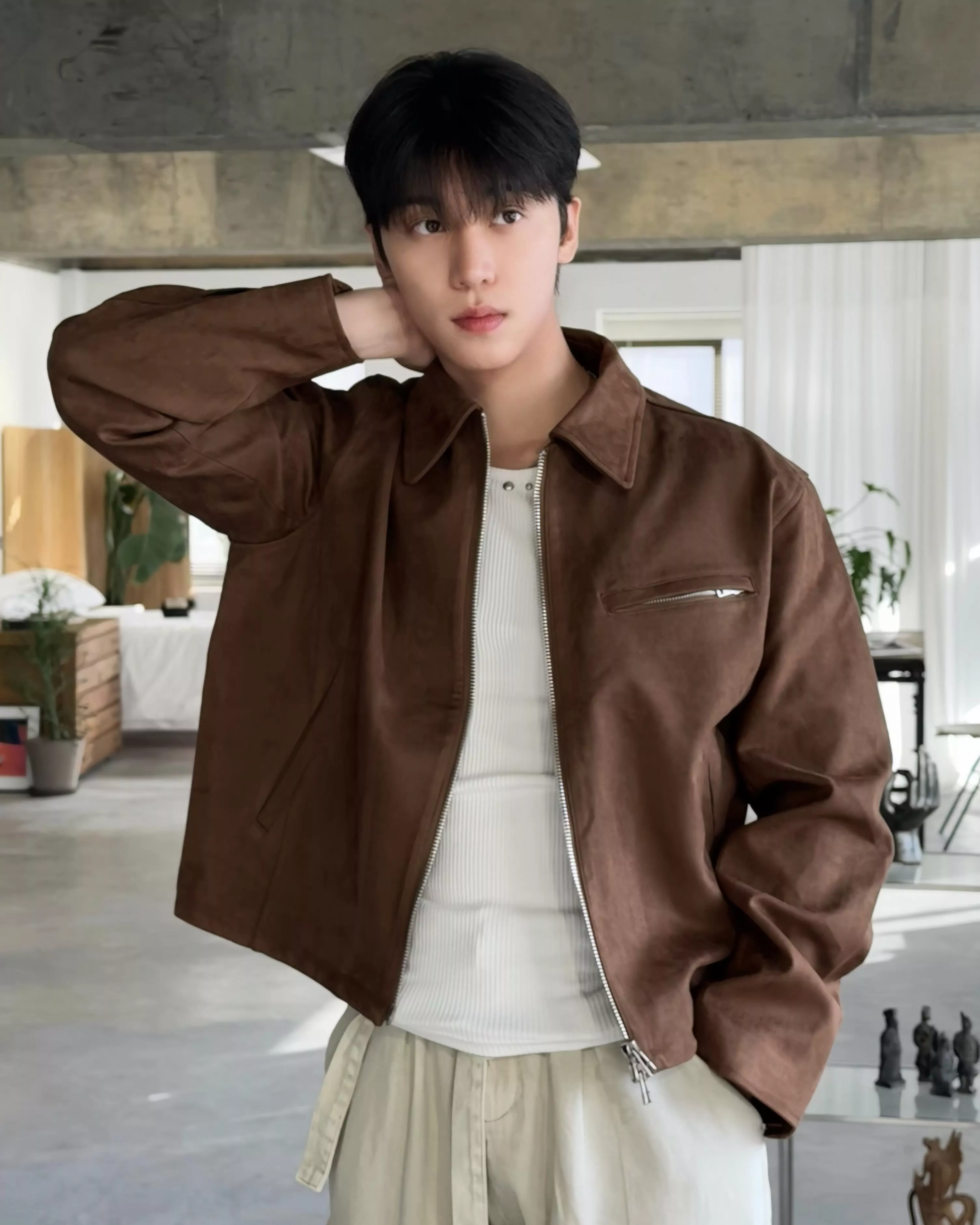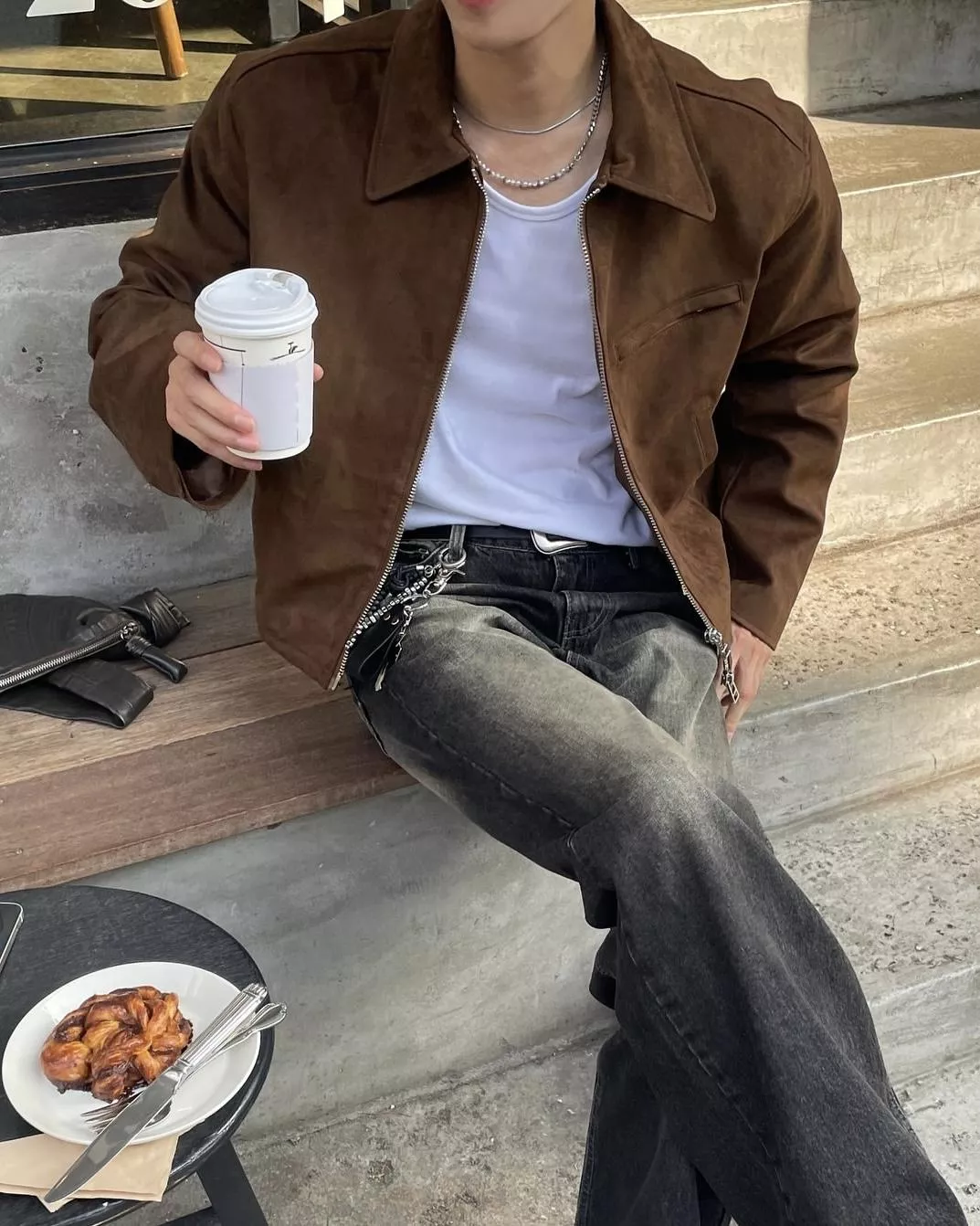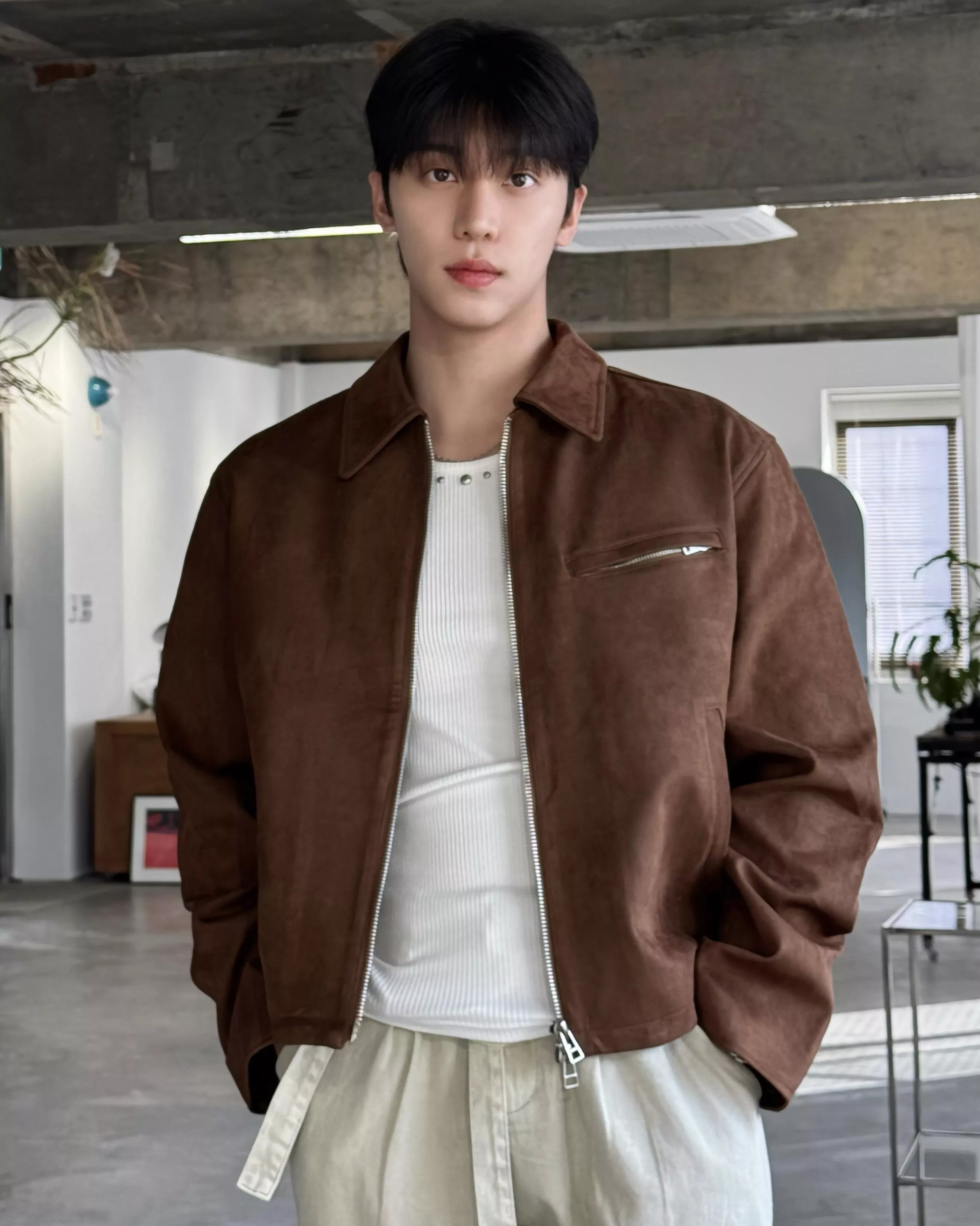 挺感十足的麂皮穿上身 整個肩線看起來更立體
