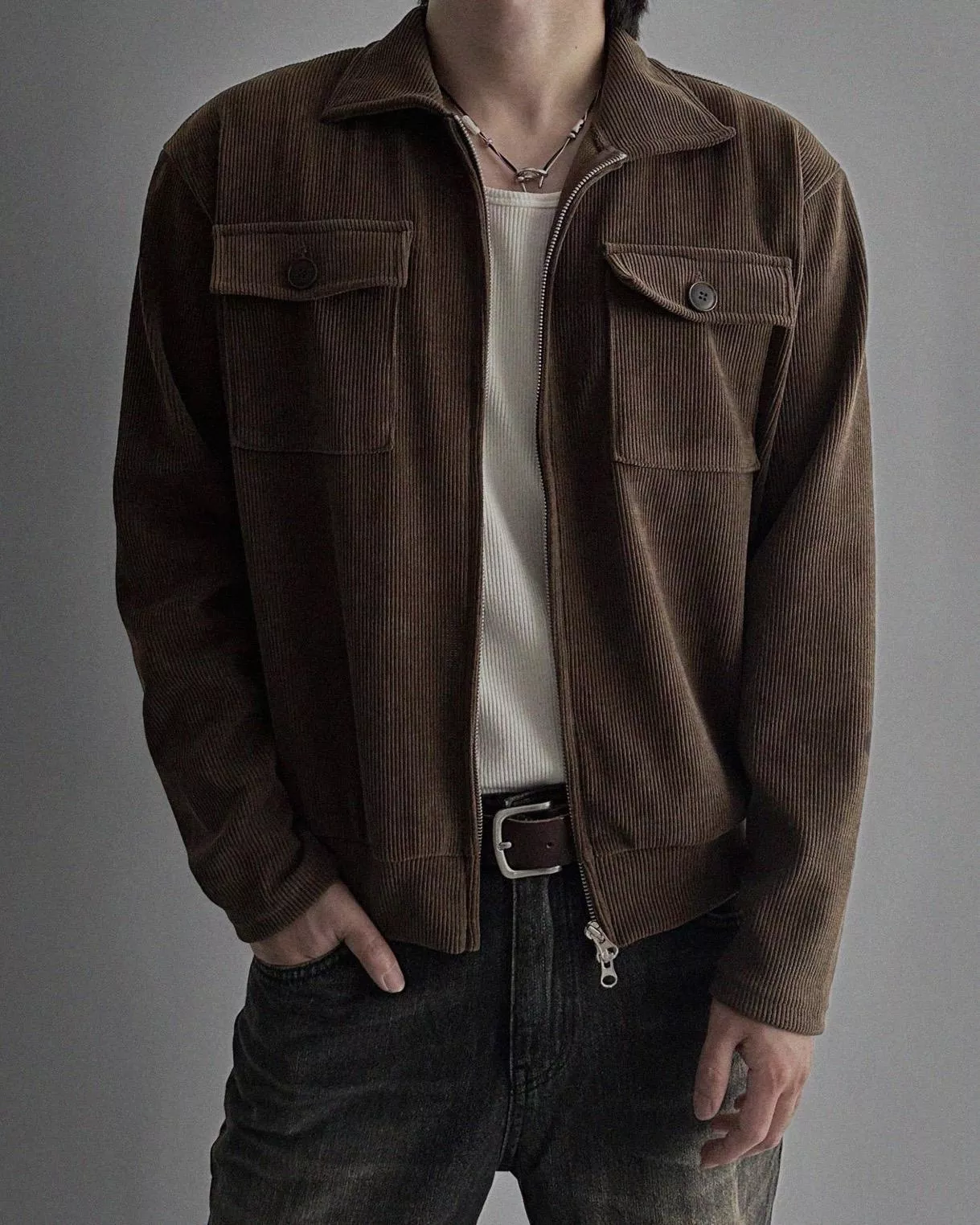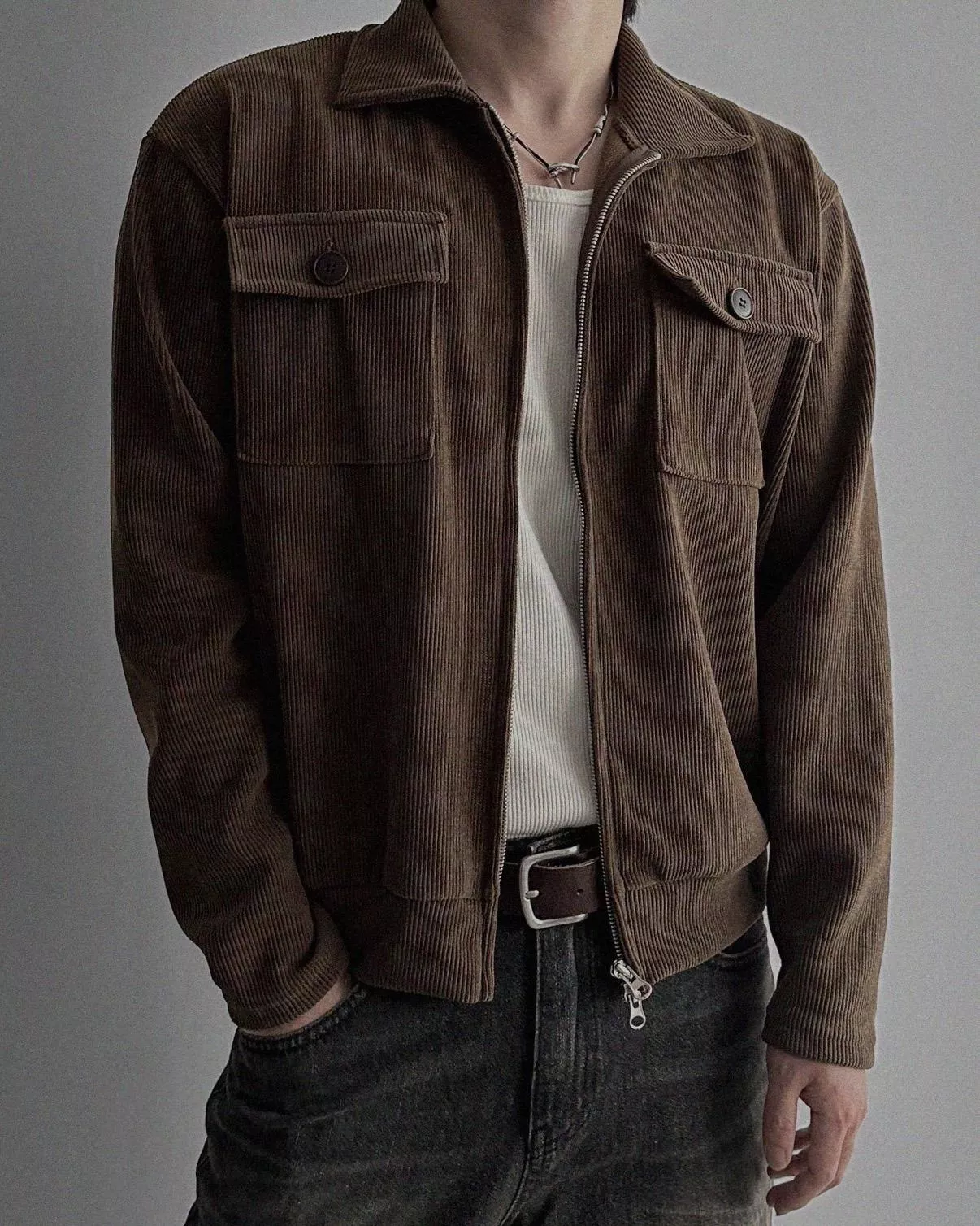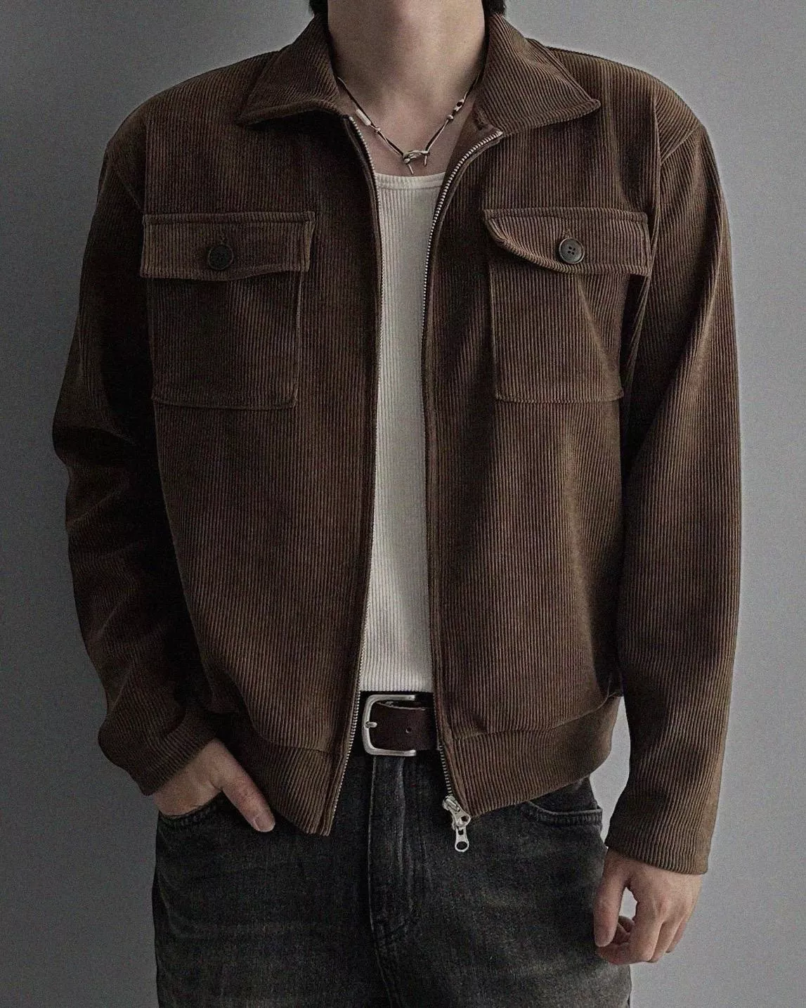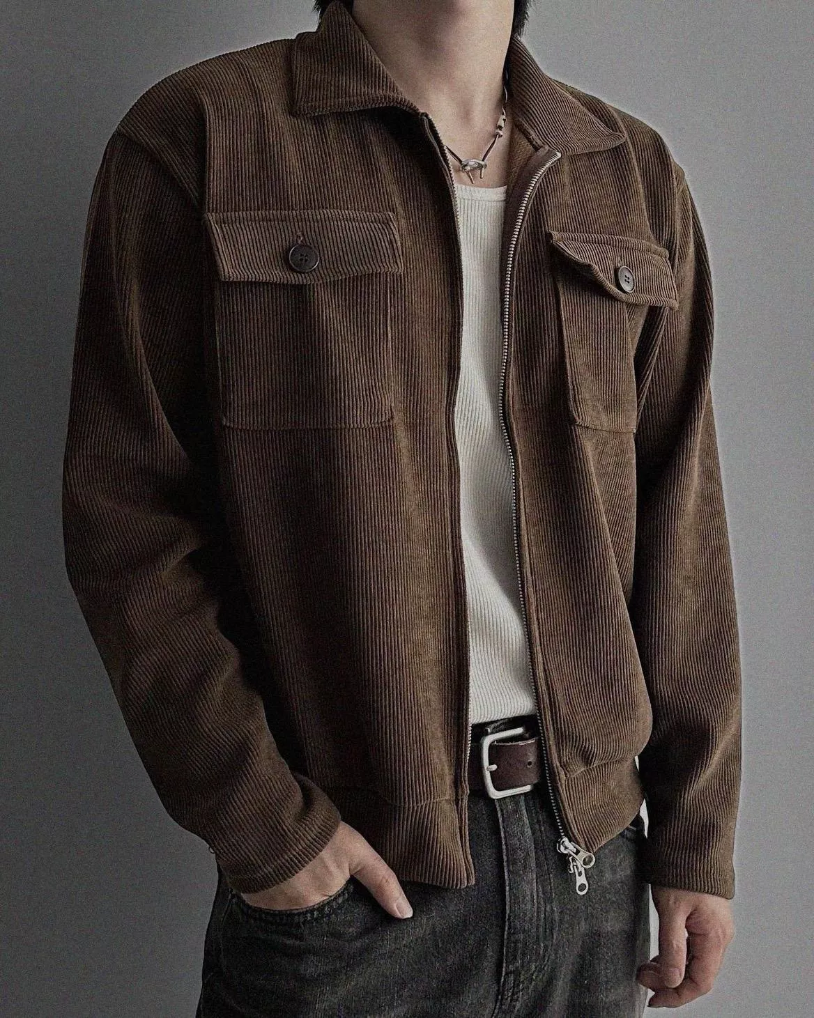 燈芯絨質地+雙側口袋細節 超適合外搭穿