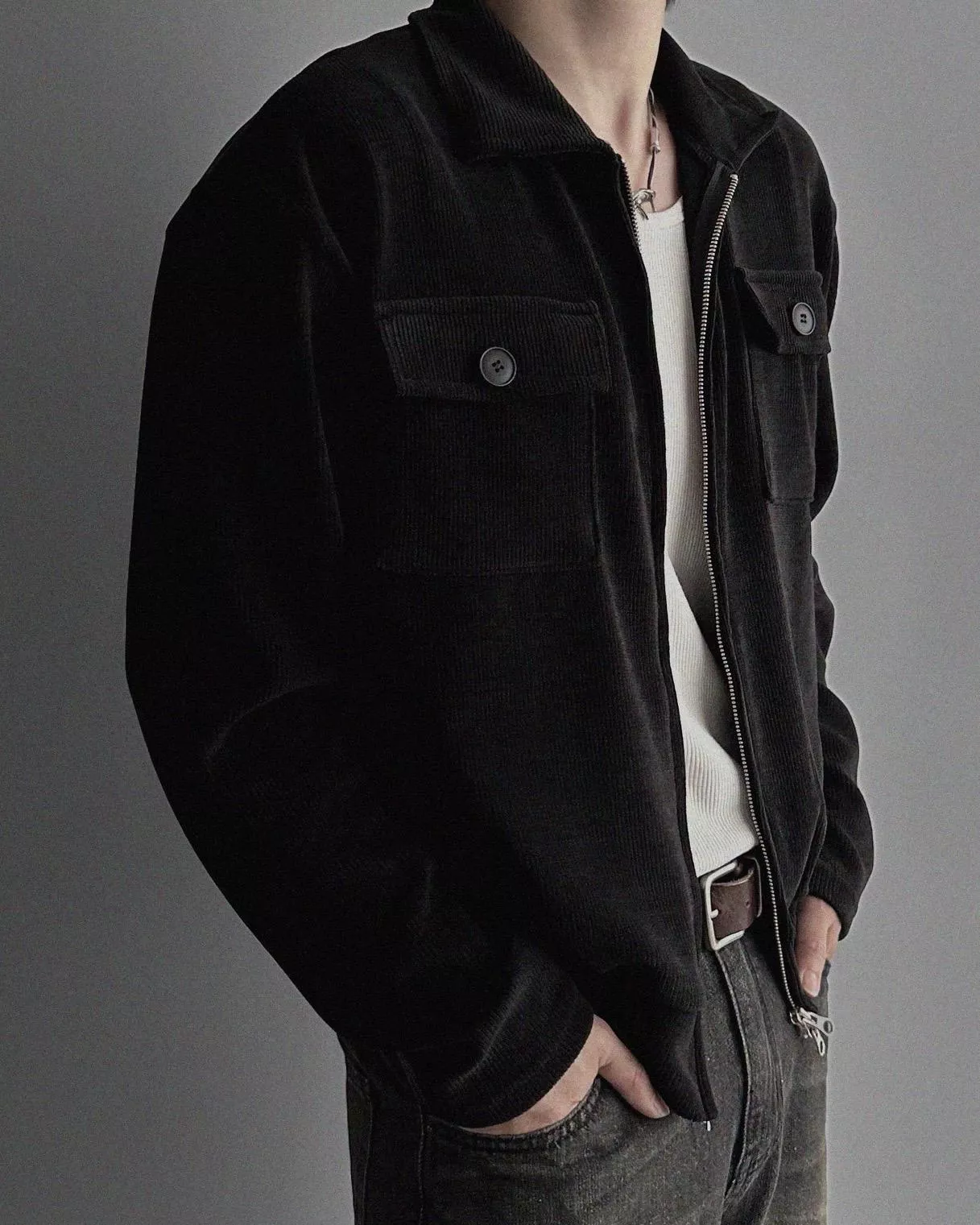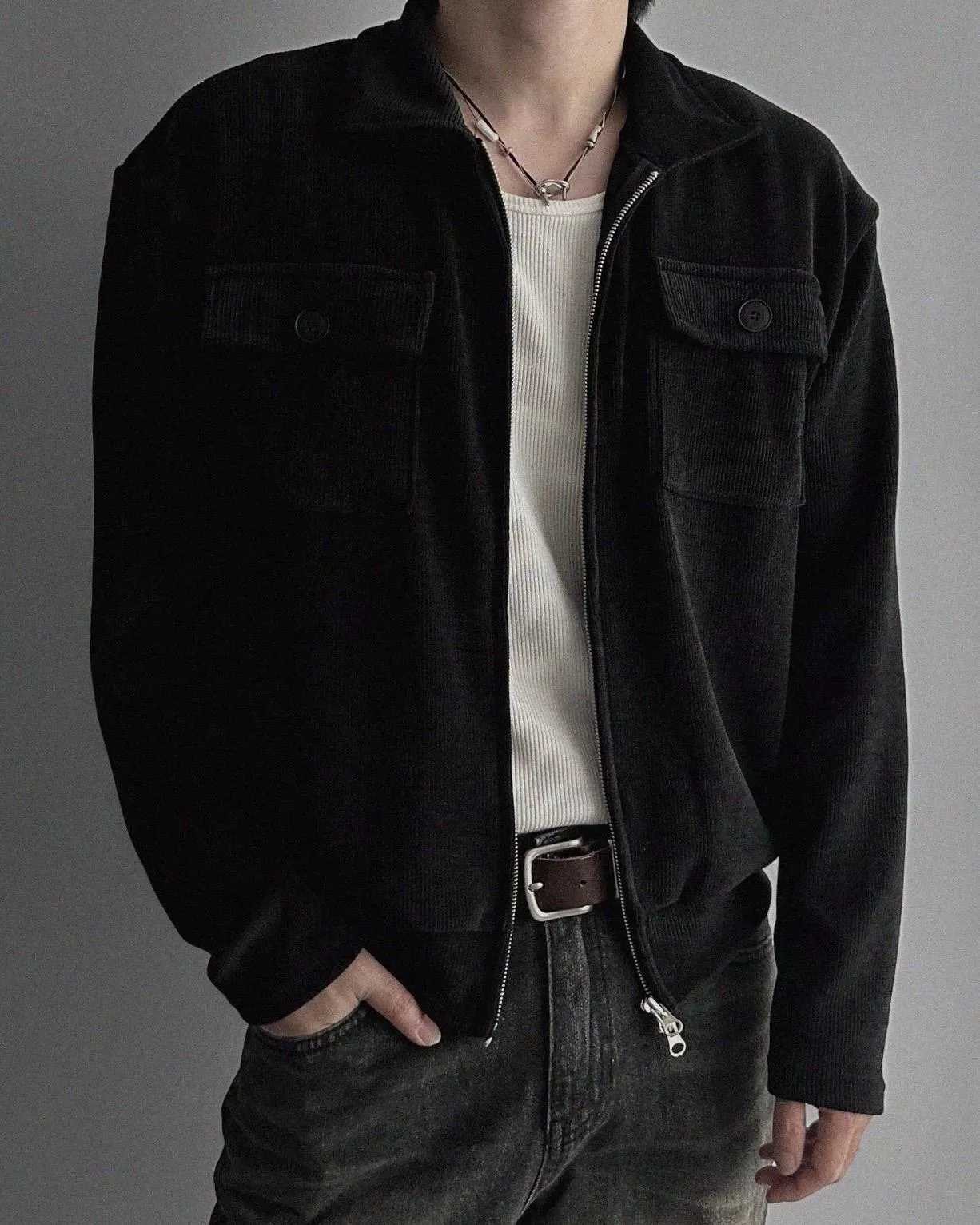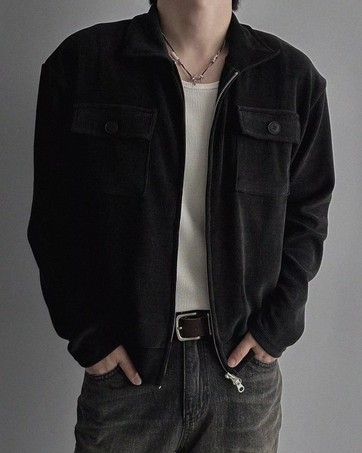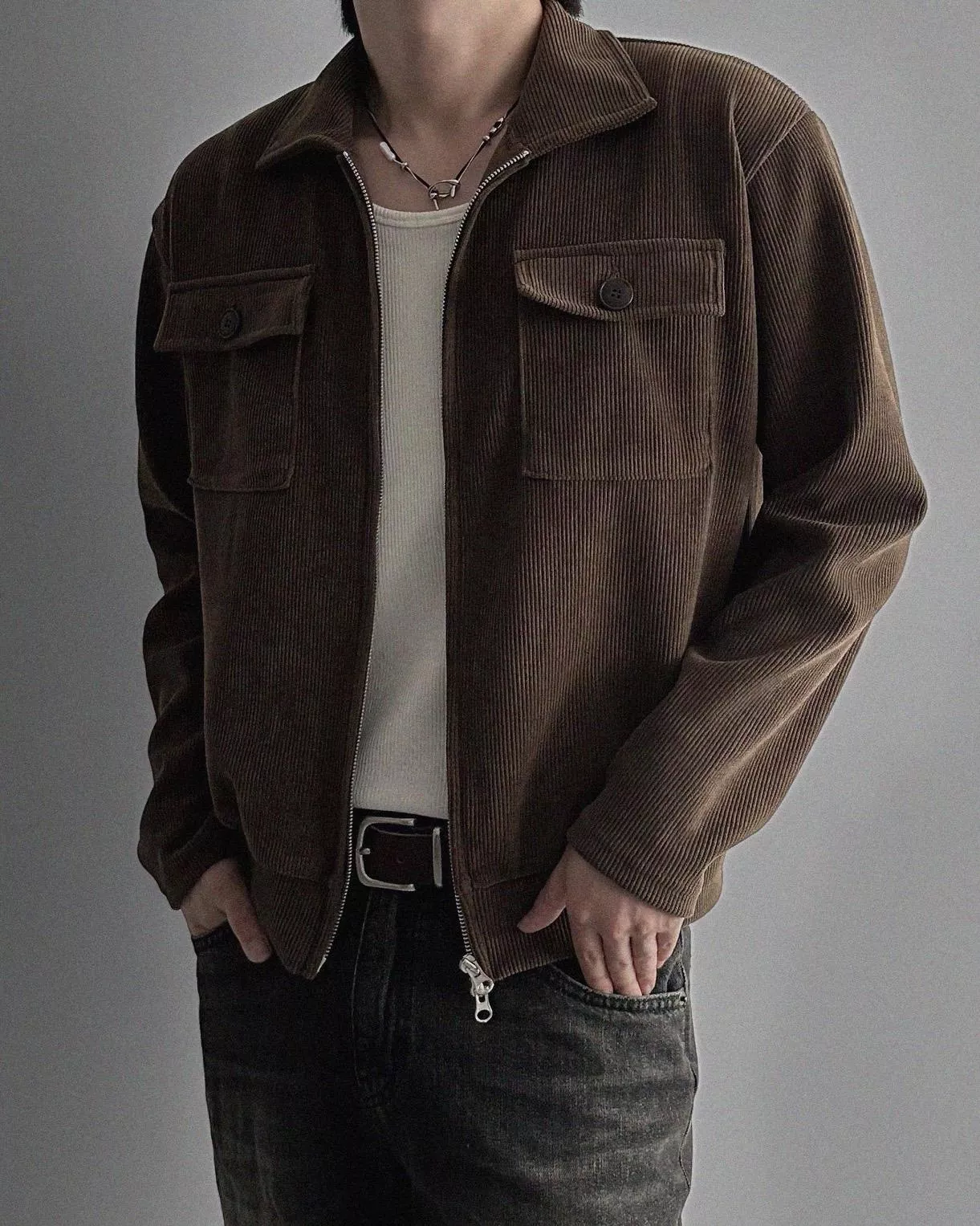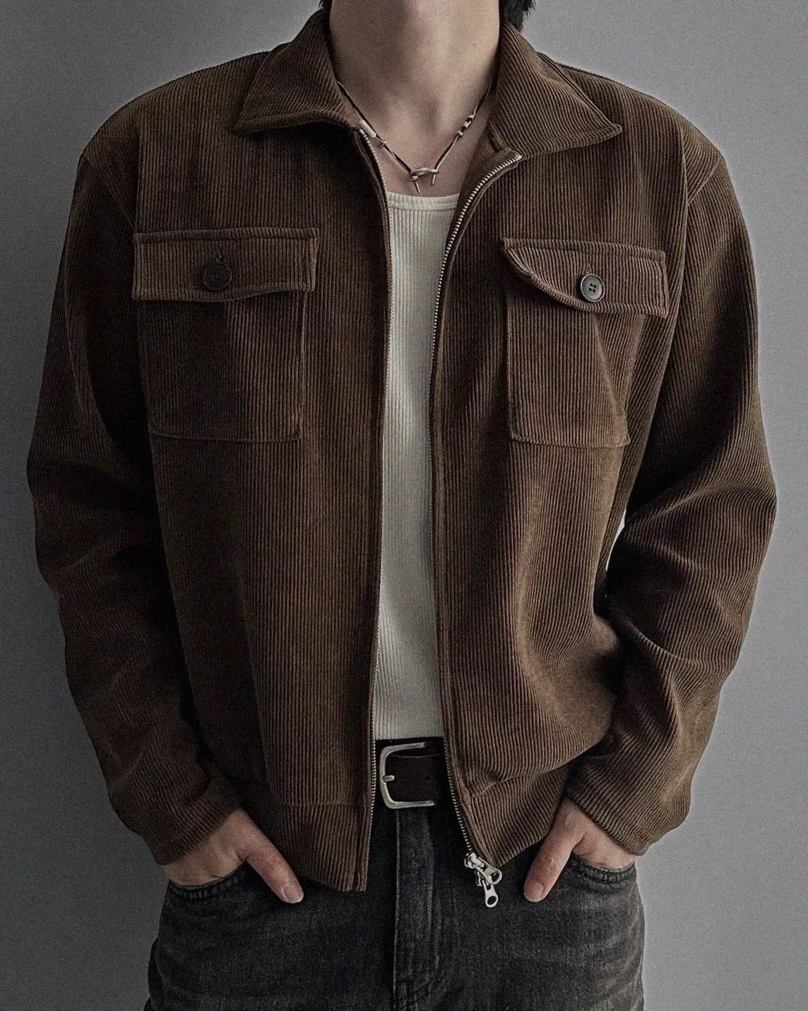 燈芯絨質地+雙側口袋細節 超適合外搭穿