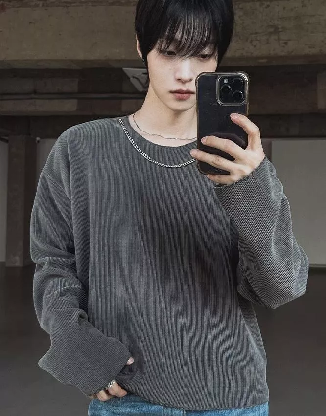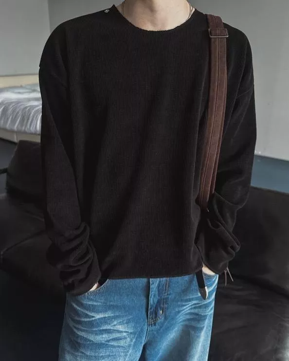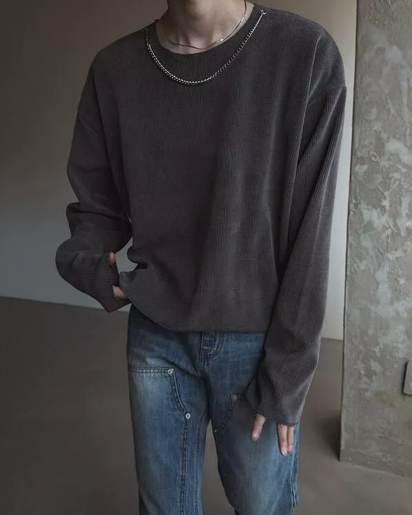 可拆式鎖鏈 羅紋針織薄長袖