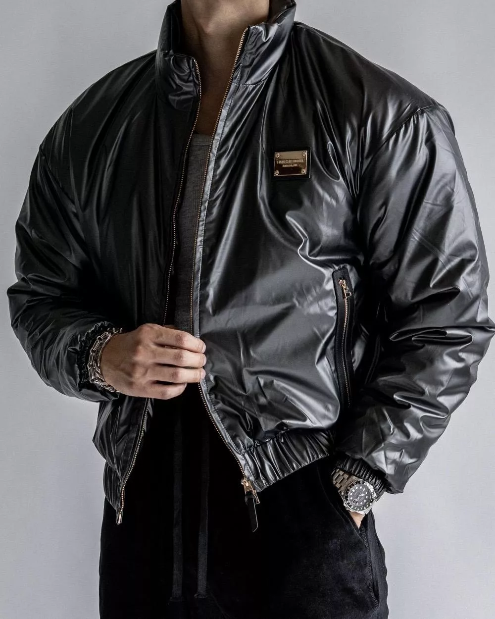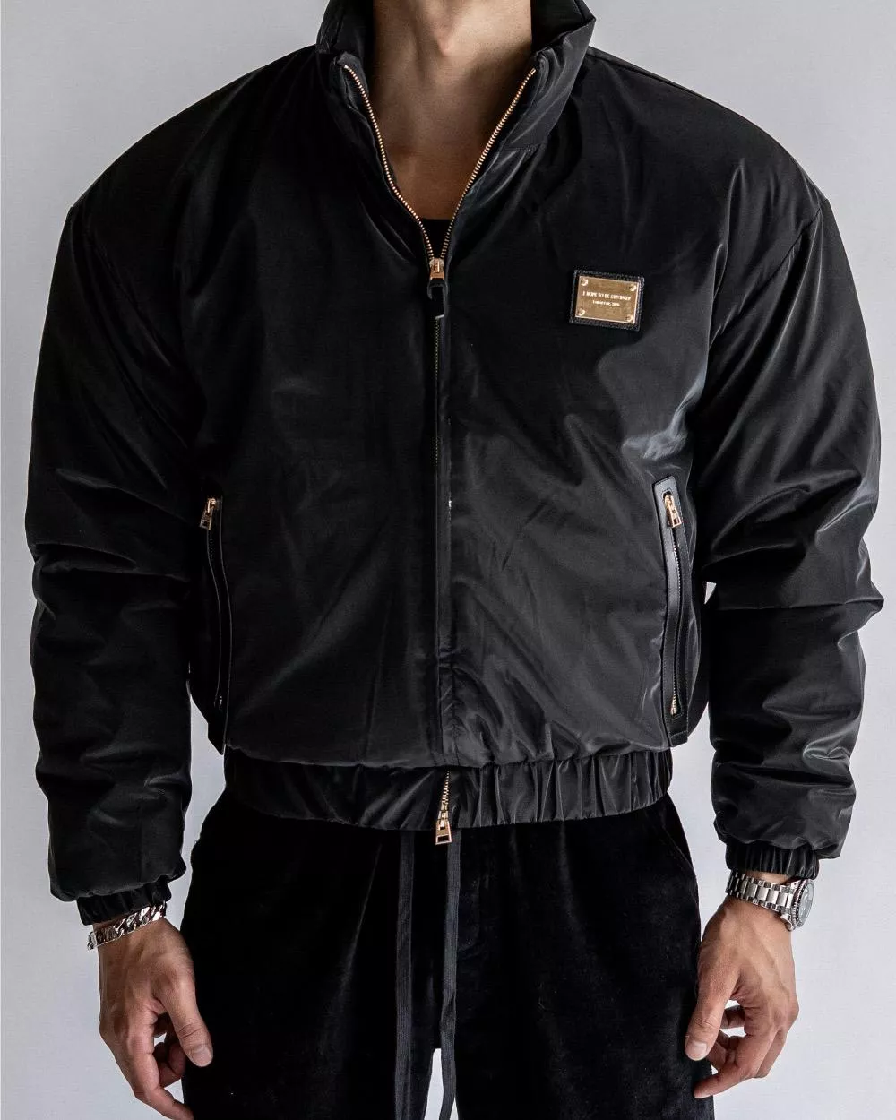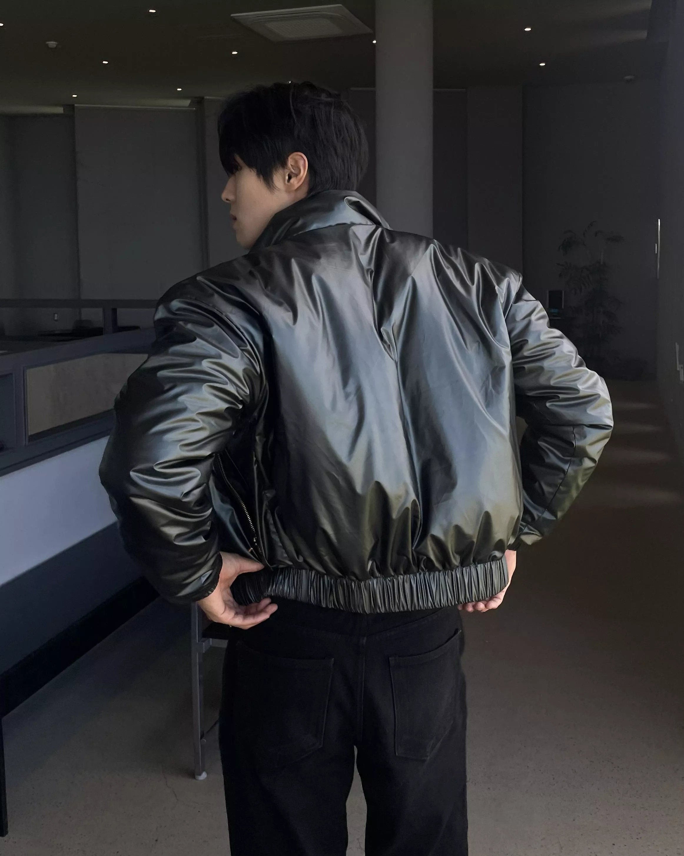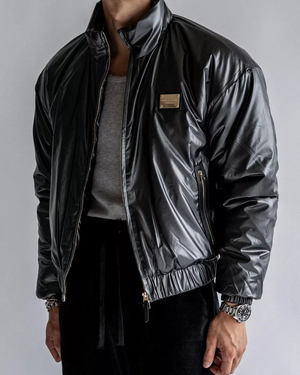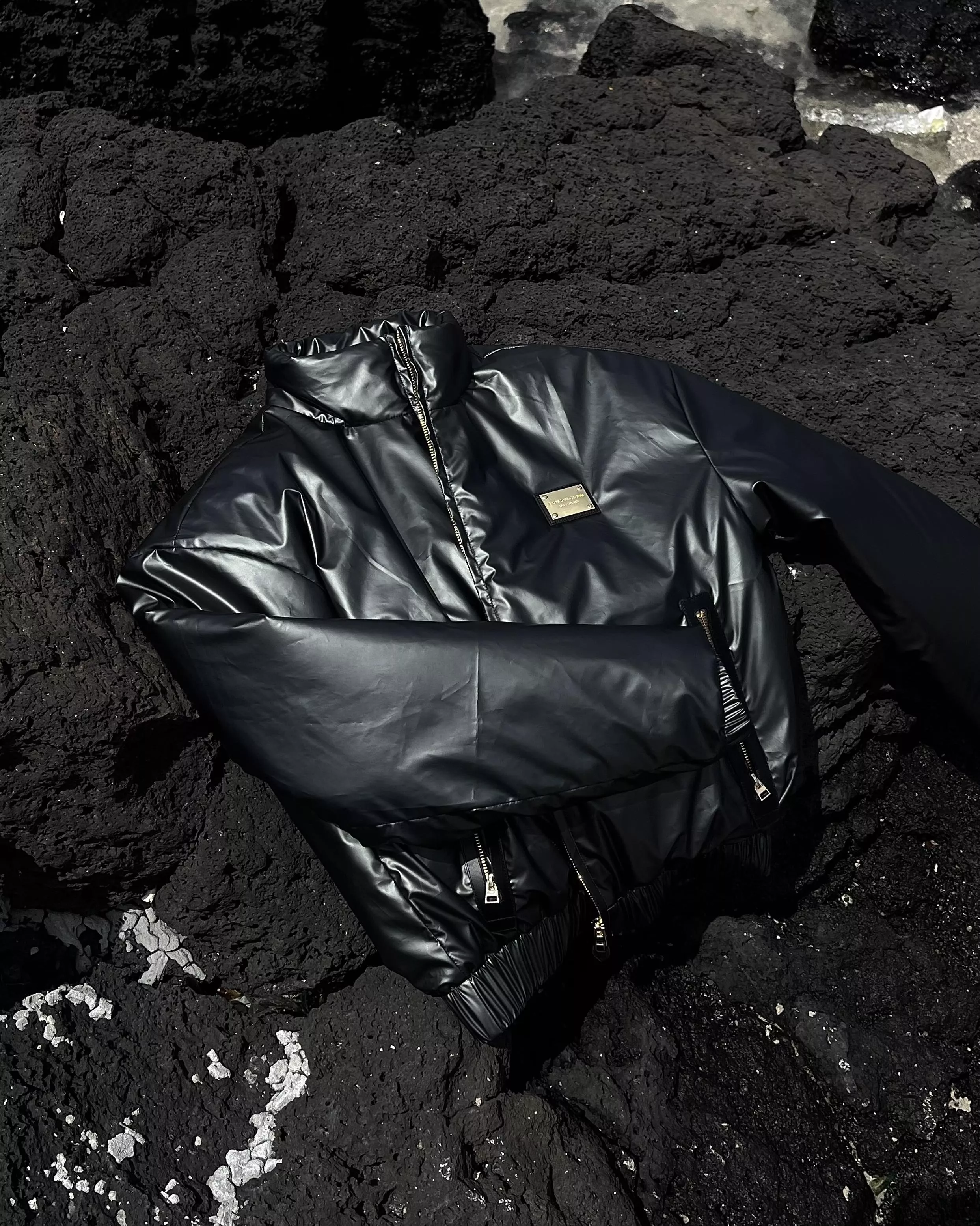 短版萊尼爾 小金牌亮面光澤羽絨外套