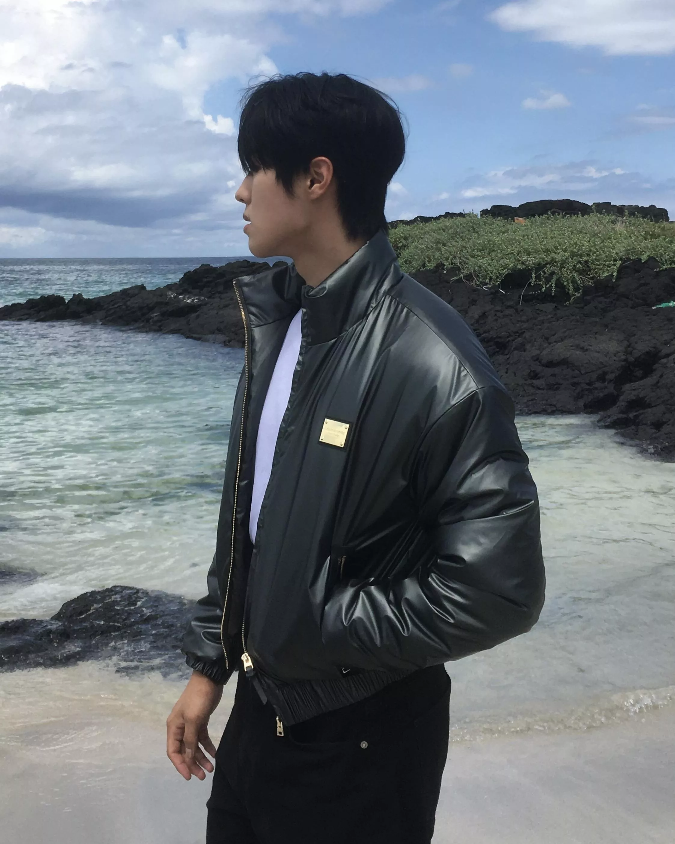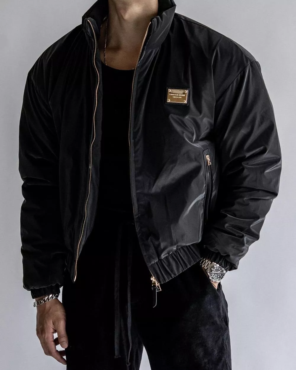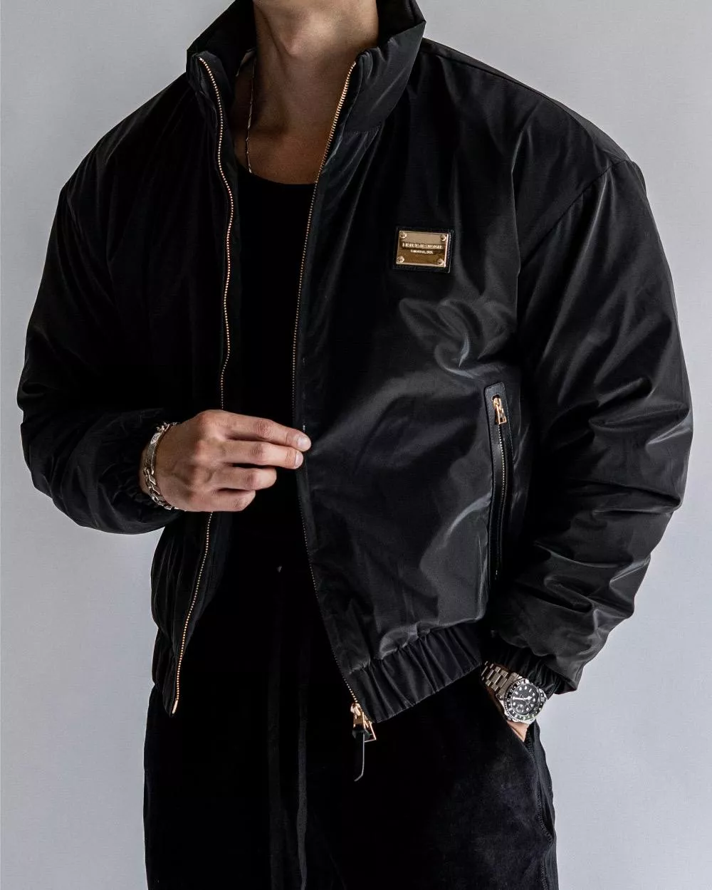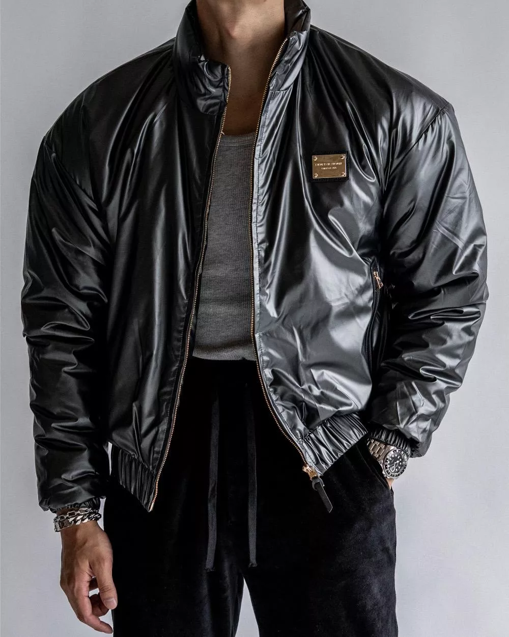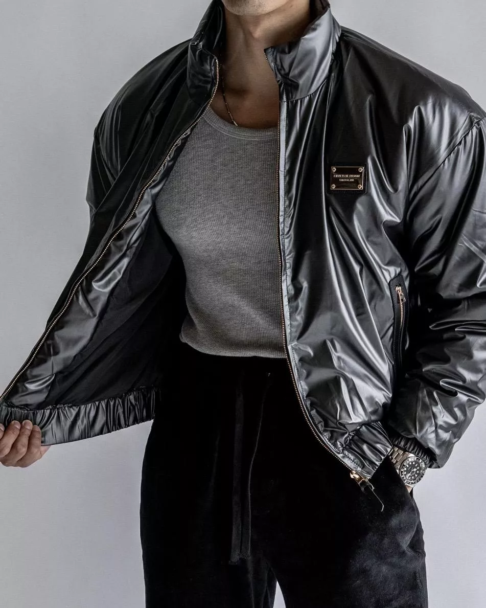 短版萊尼爾 小金牌亮面光澤羽絨外套