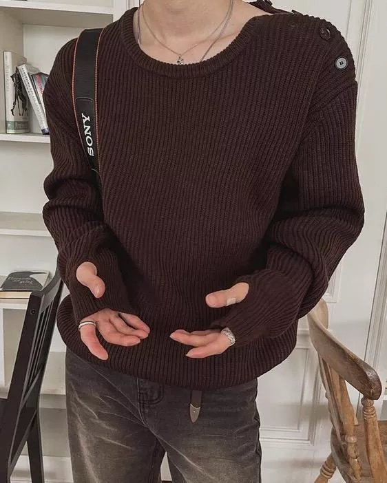 暖心袖口 香肩 斜肩開寬領羅紋針織