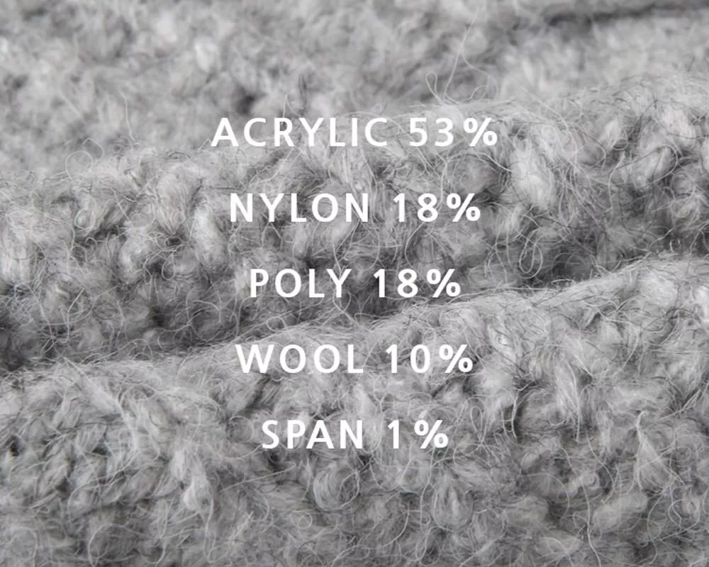 壓克力纖維53%+尼龍18%+羊毛10%+