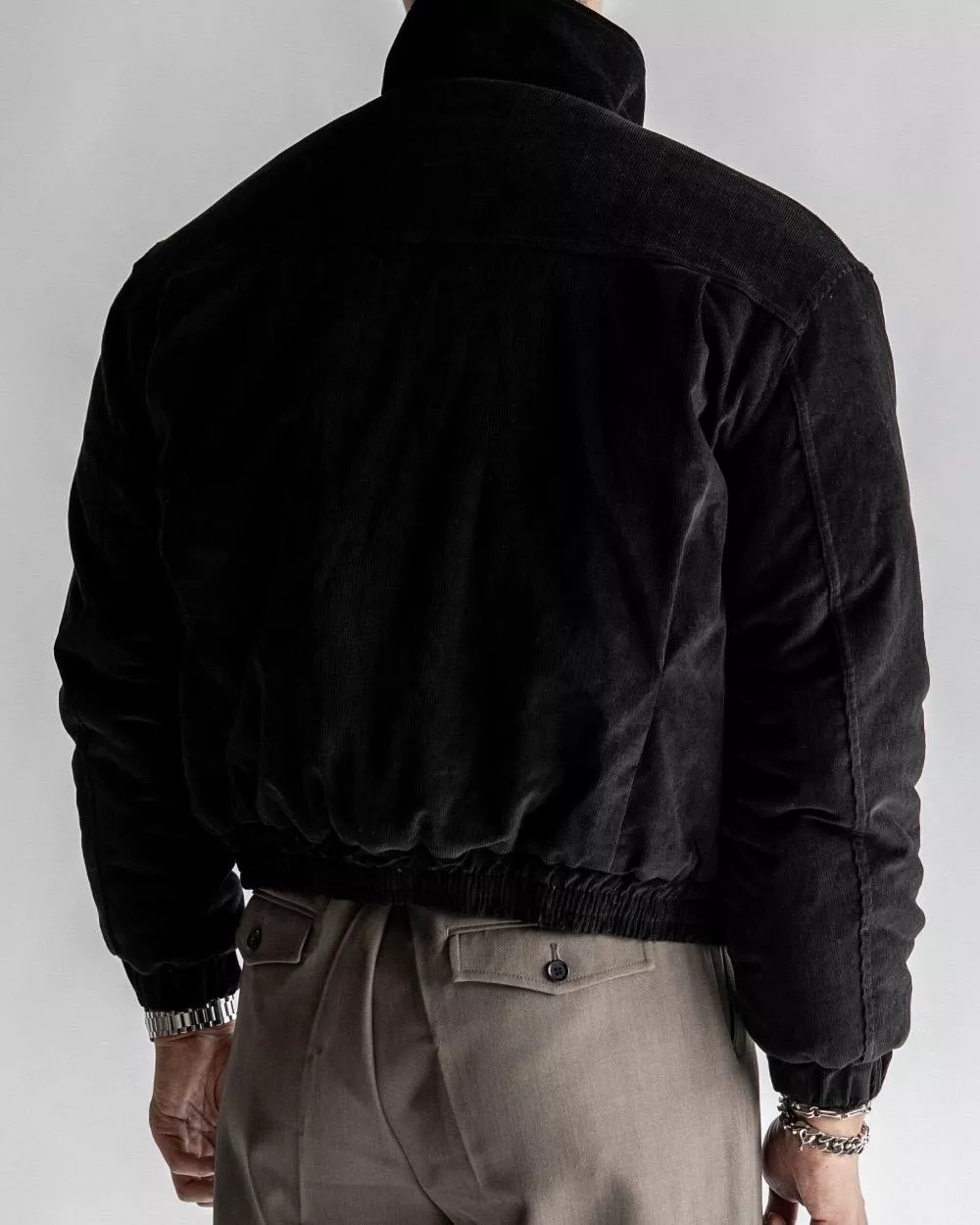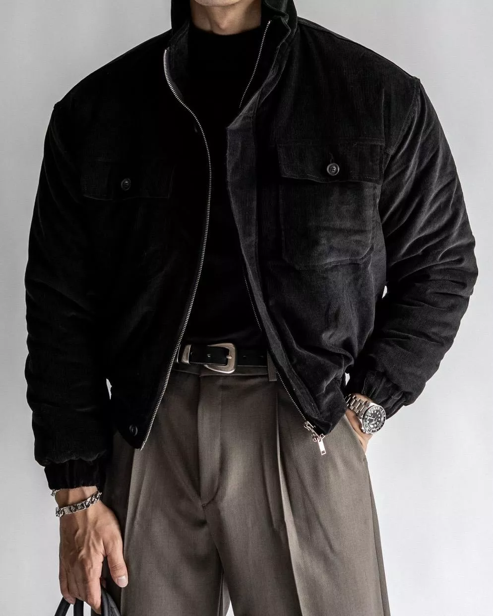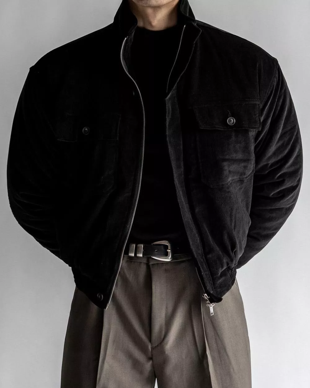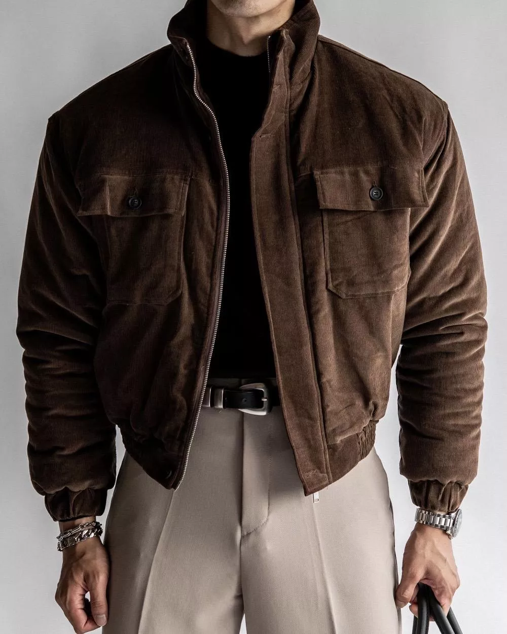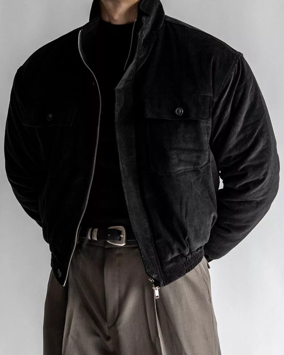 短版剪裁設計的工裝感卡車司機燈芯絨外套