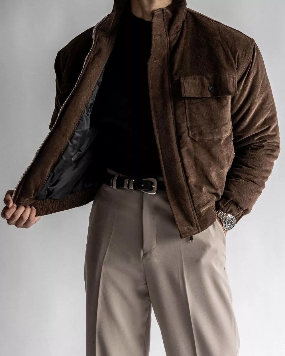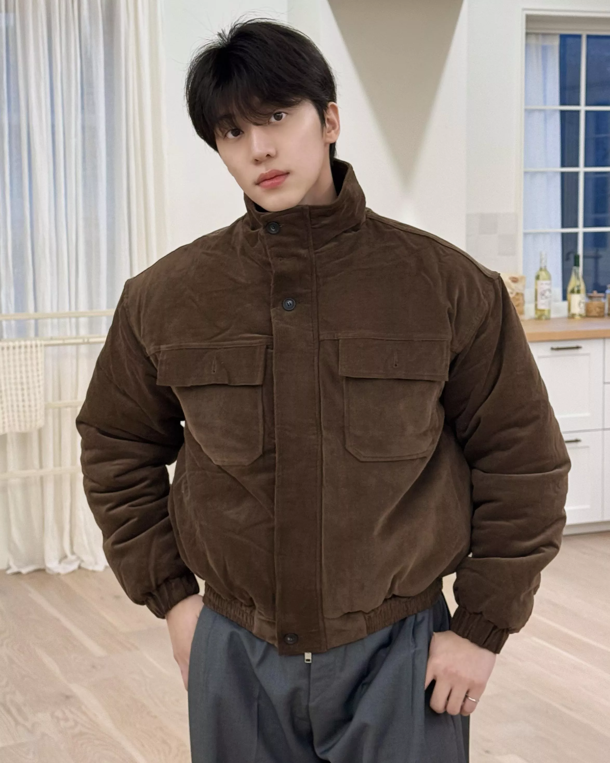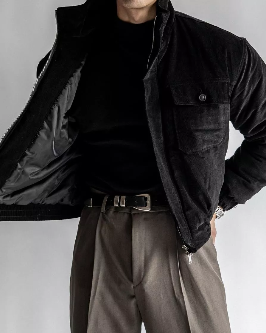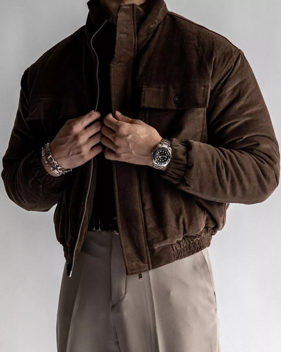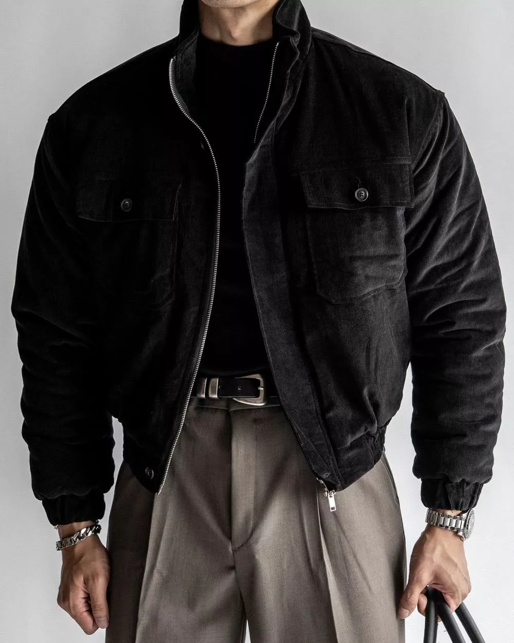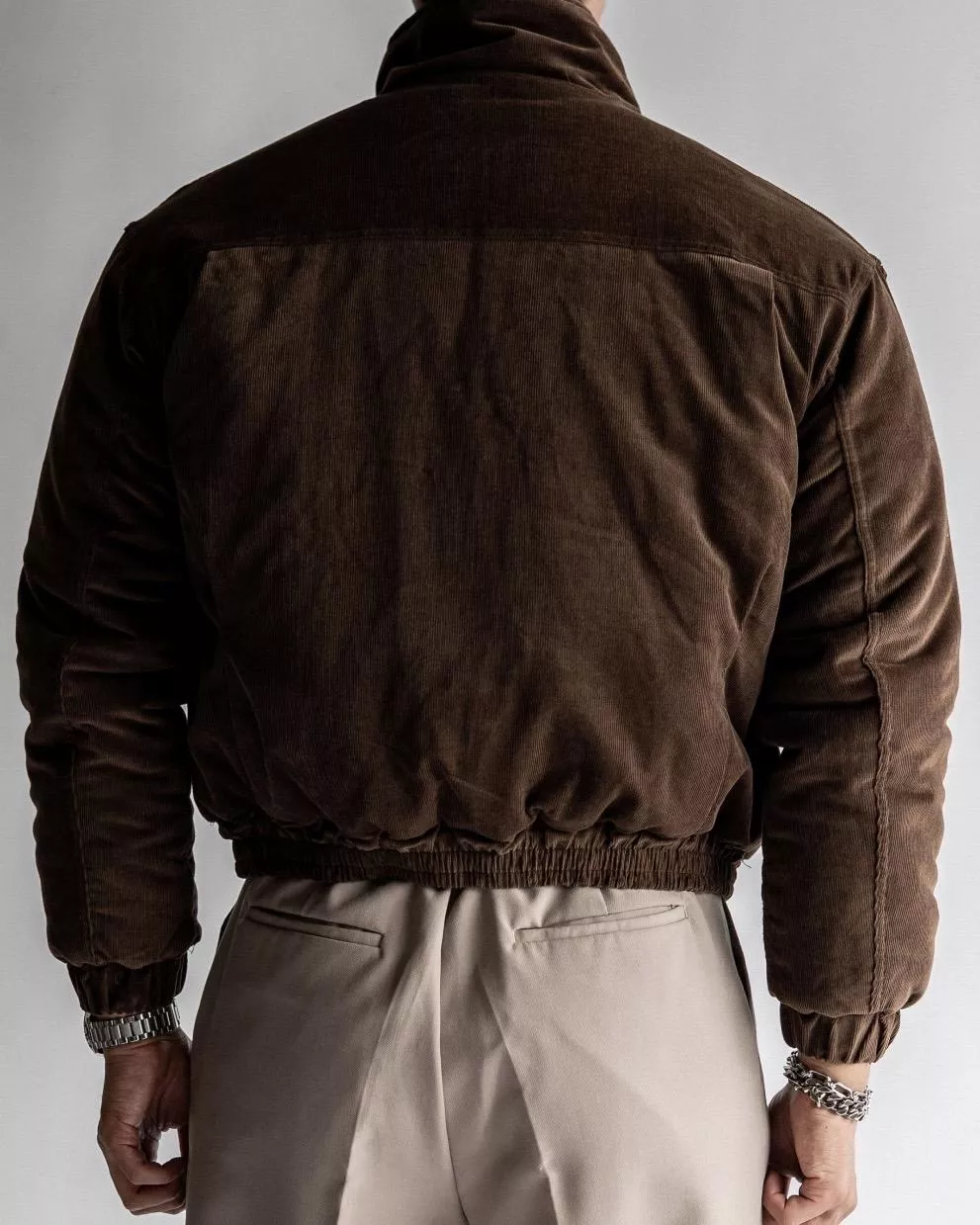 短版剪裁設計的工裝感卡車司機燈芯絨外套