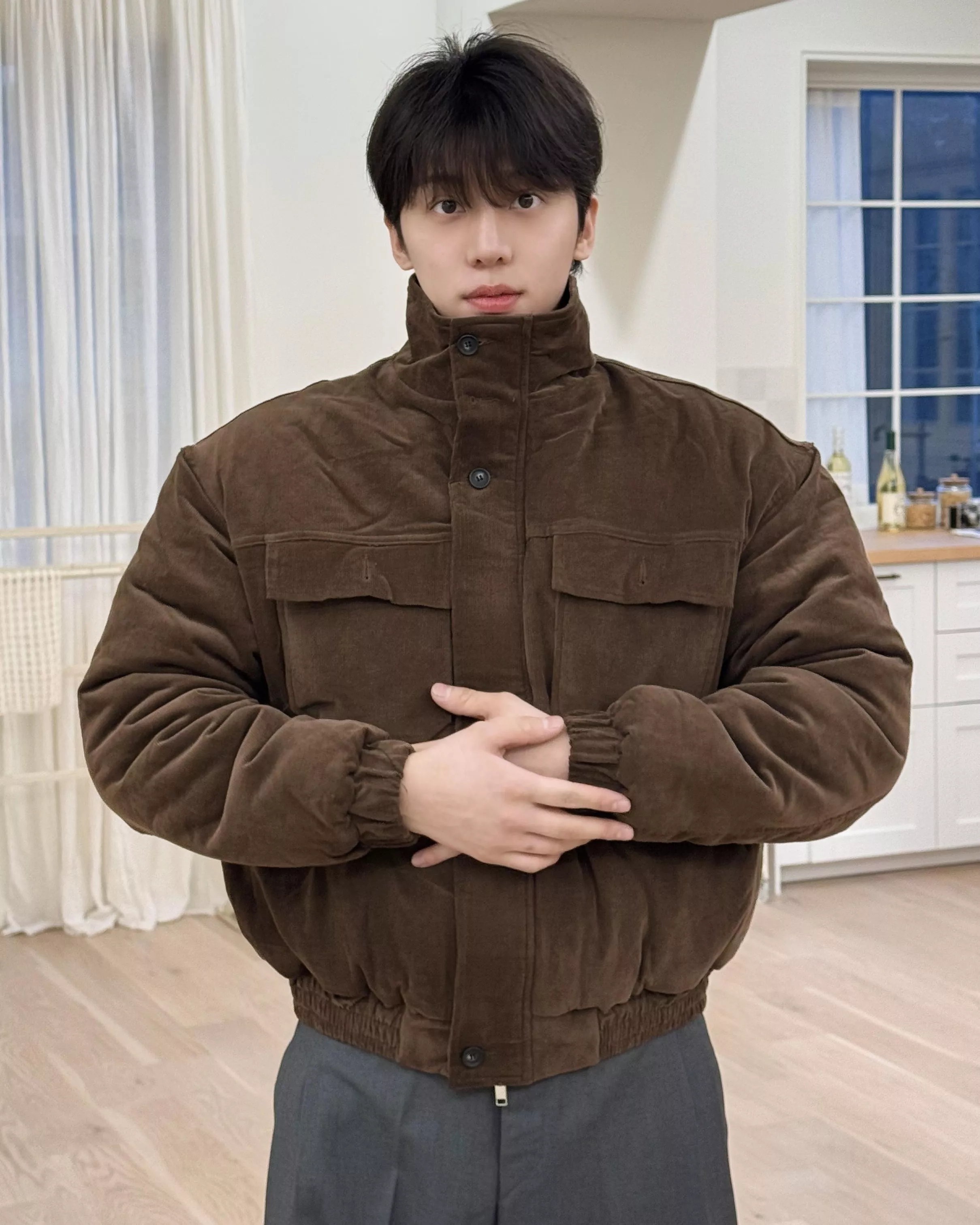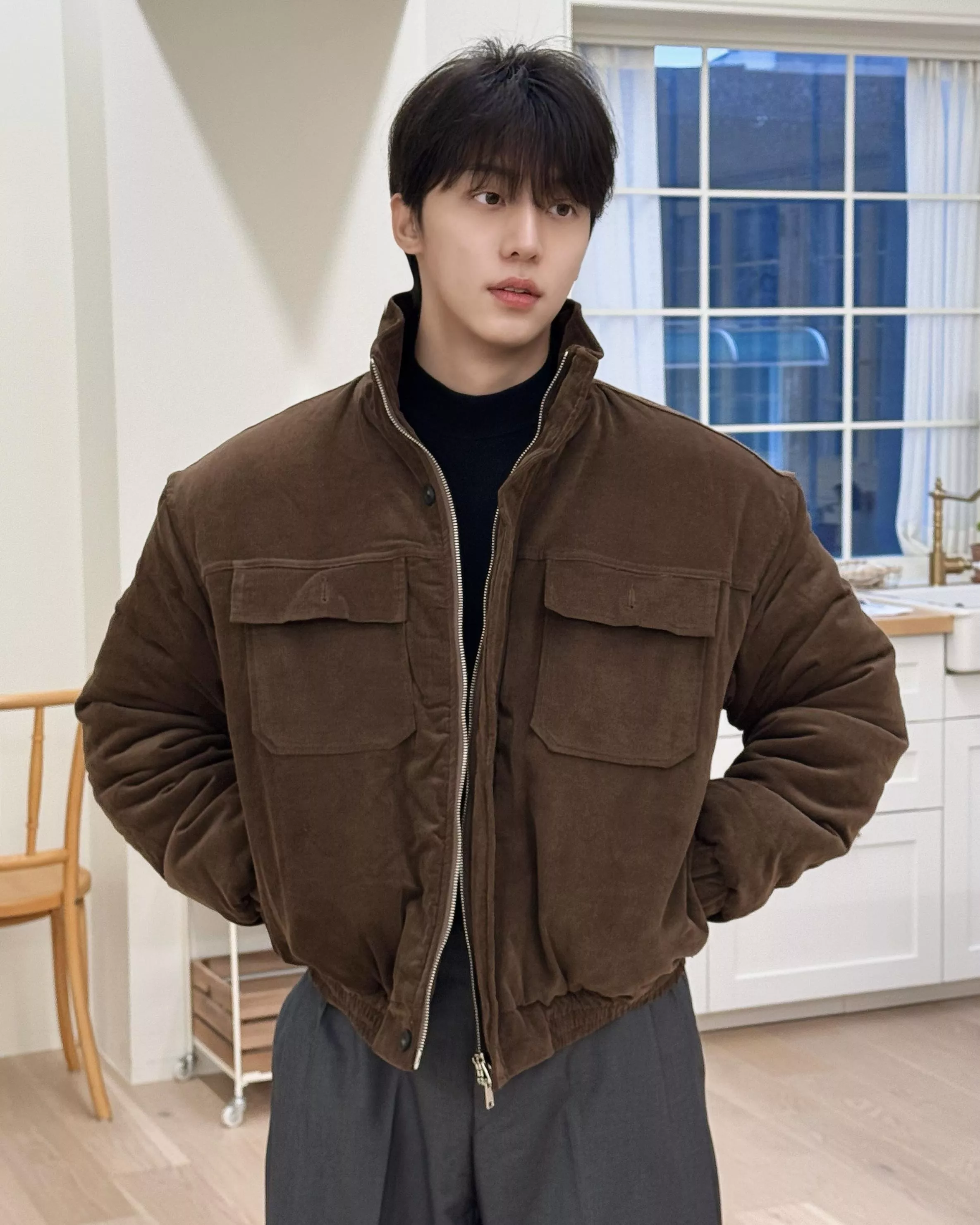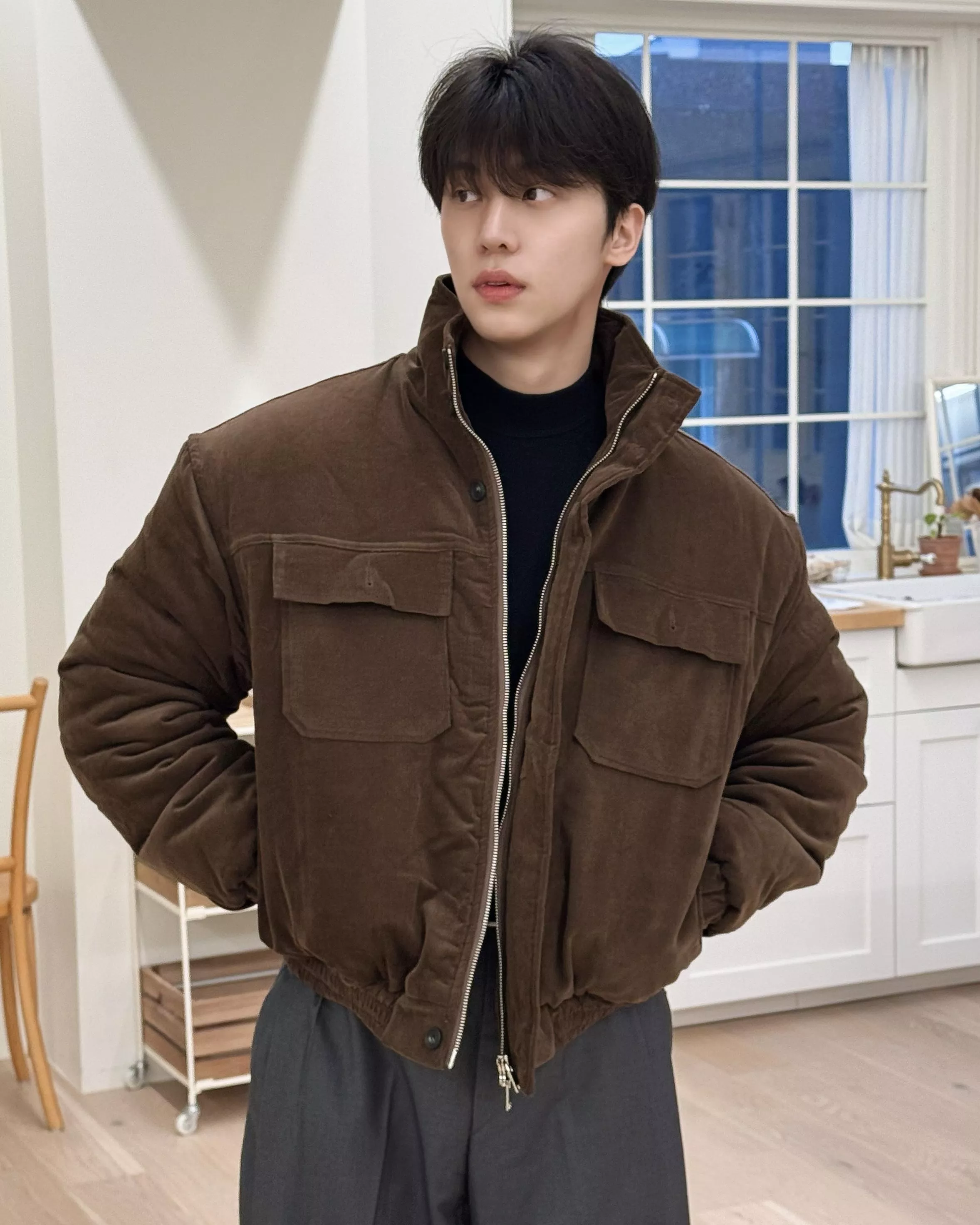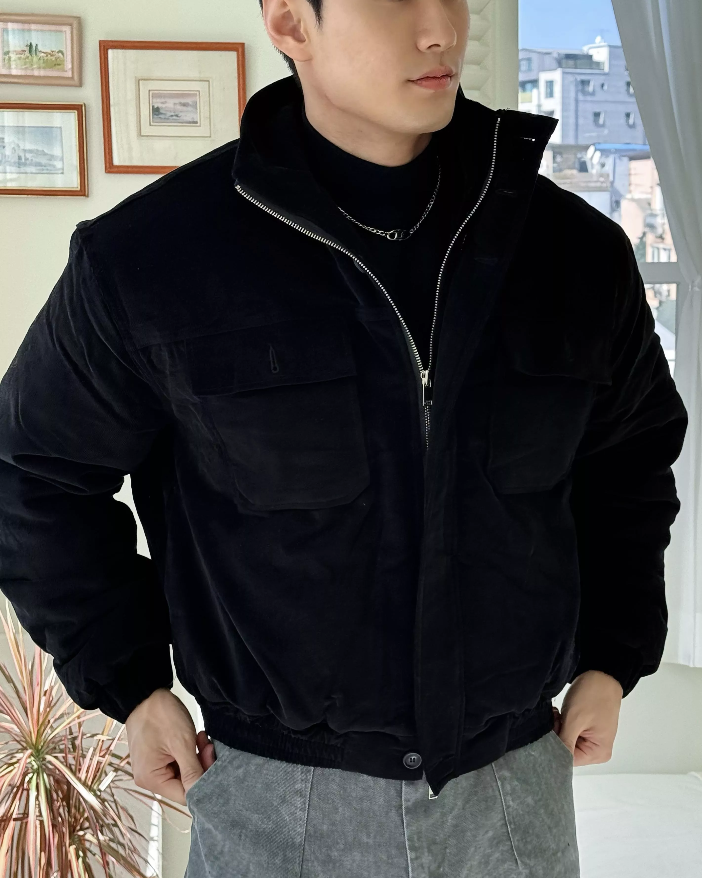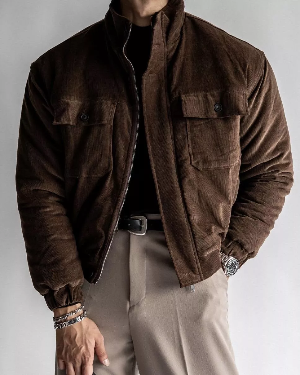 短版剪裁設計的工裝感卡車司機燈芯絨外套