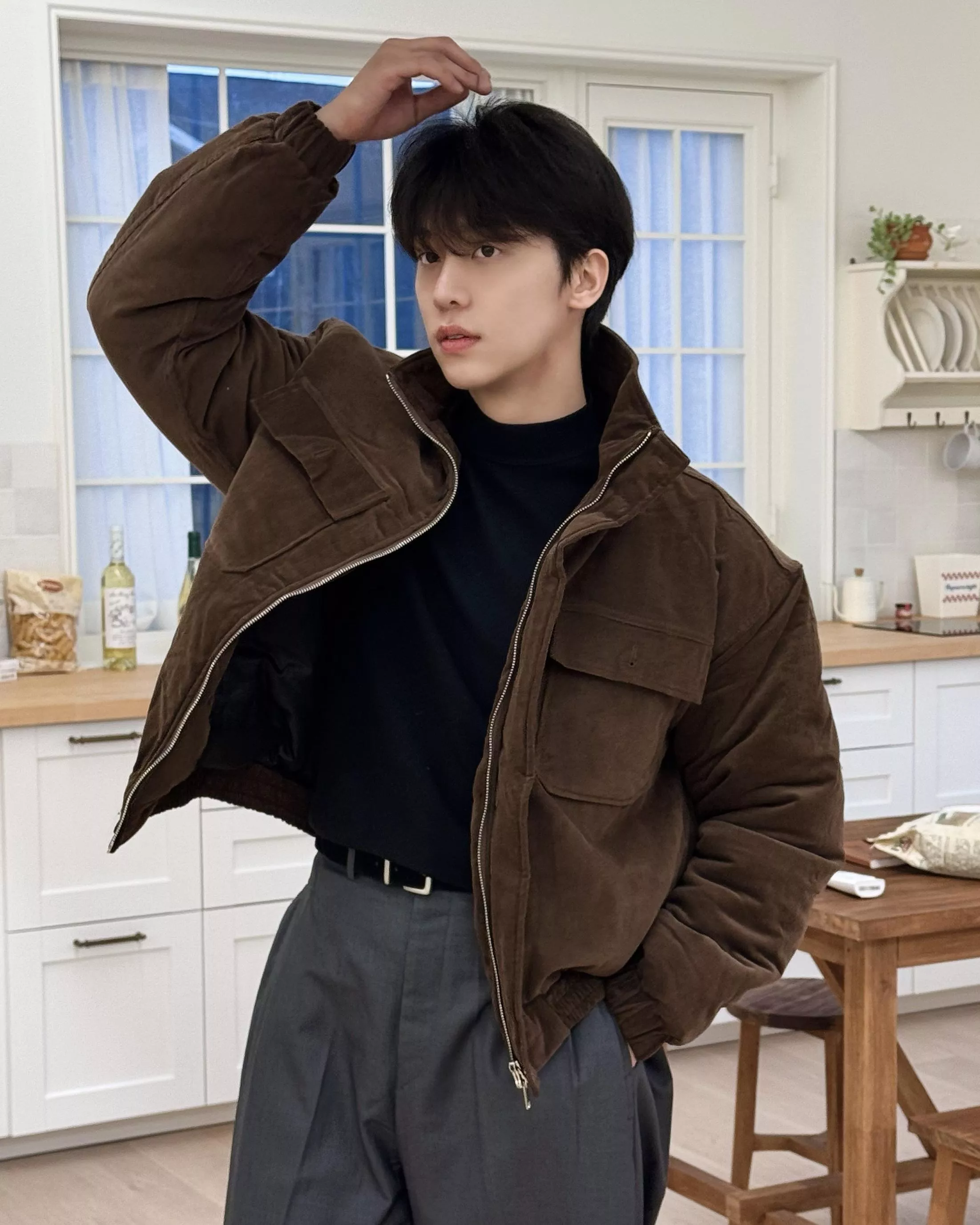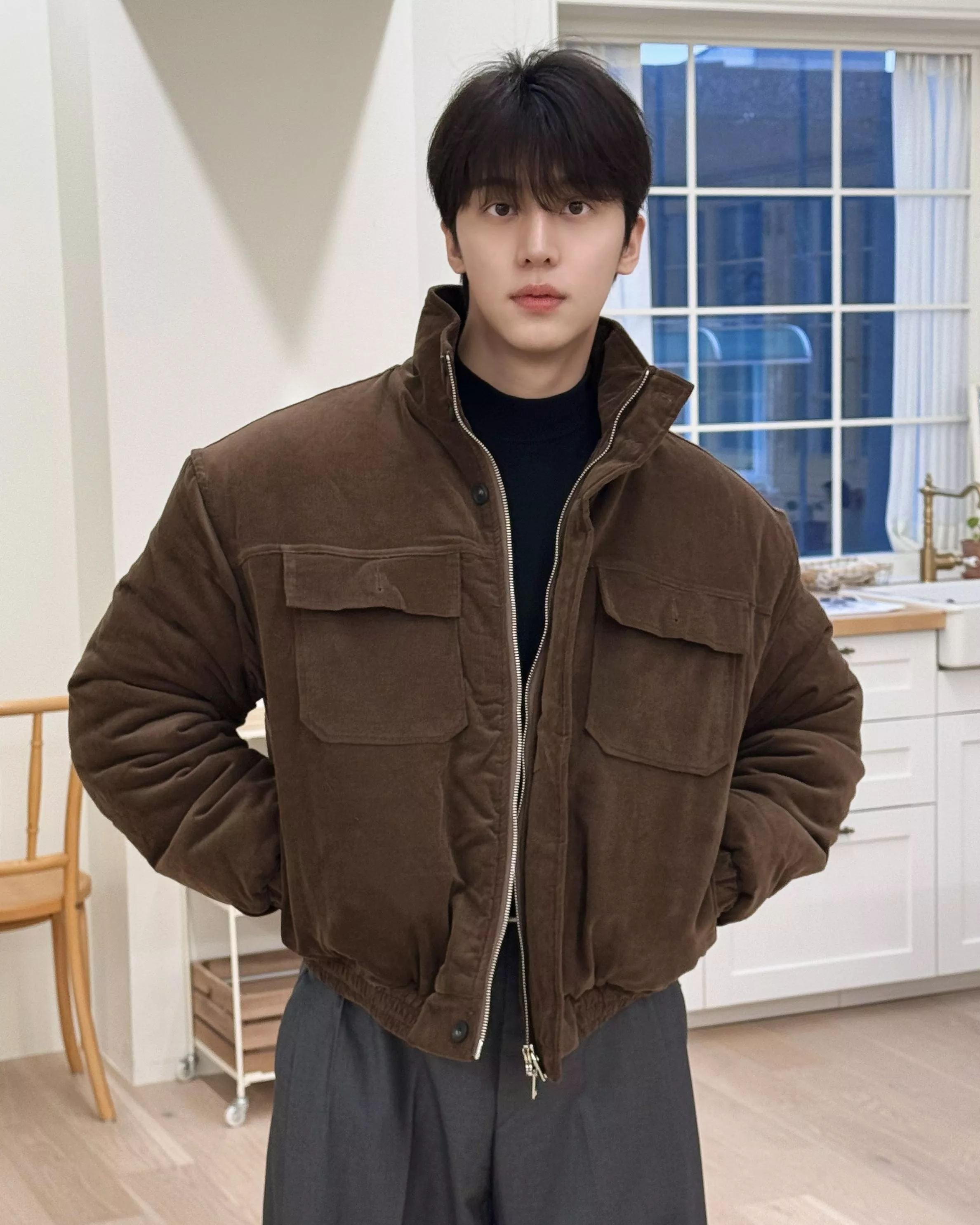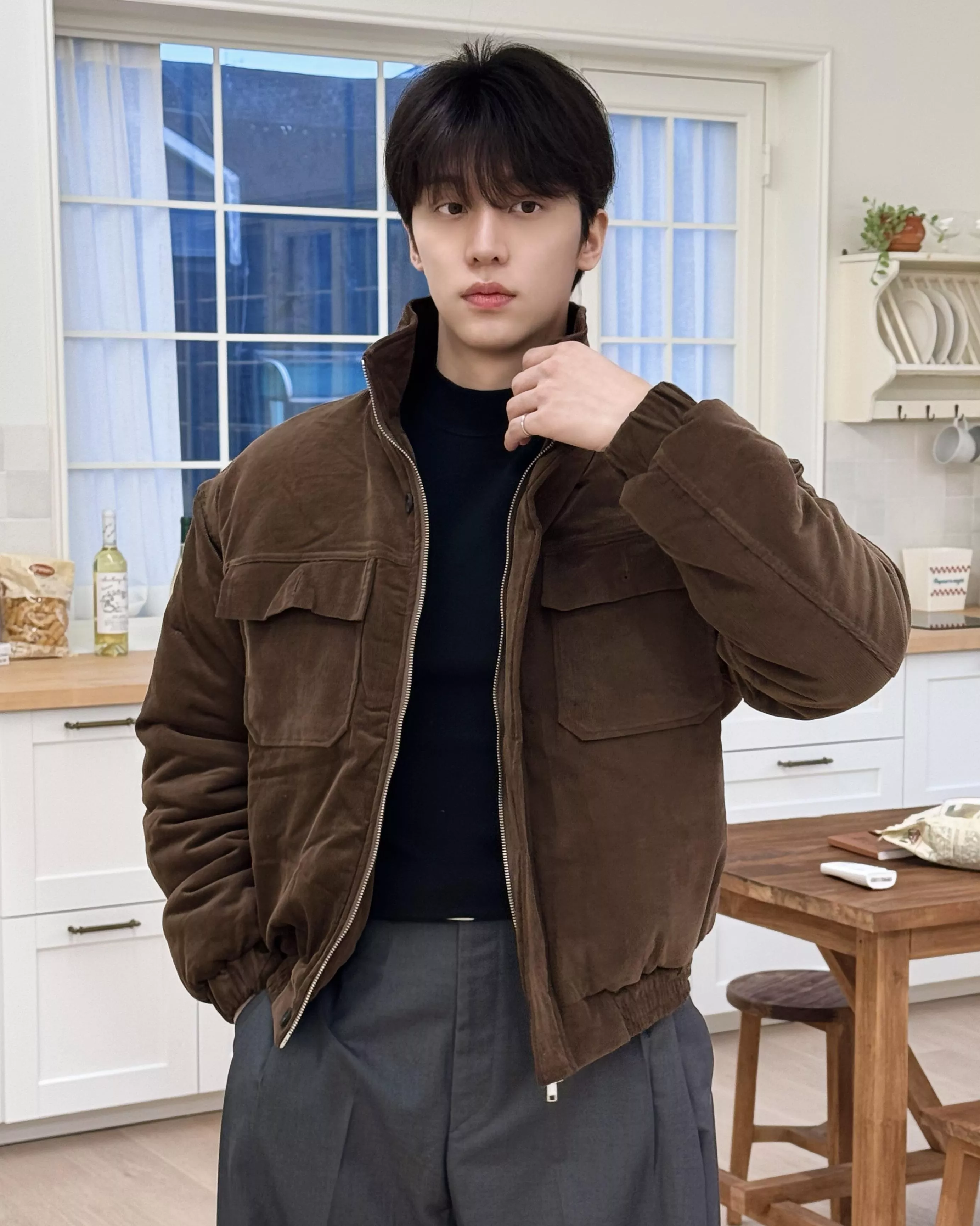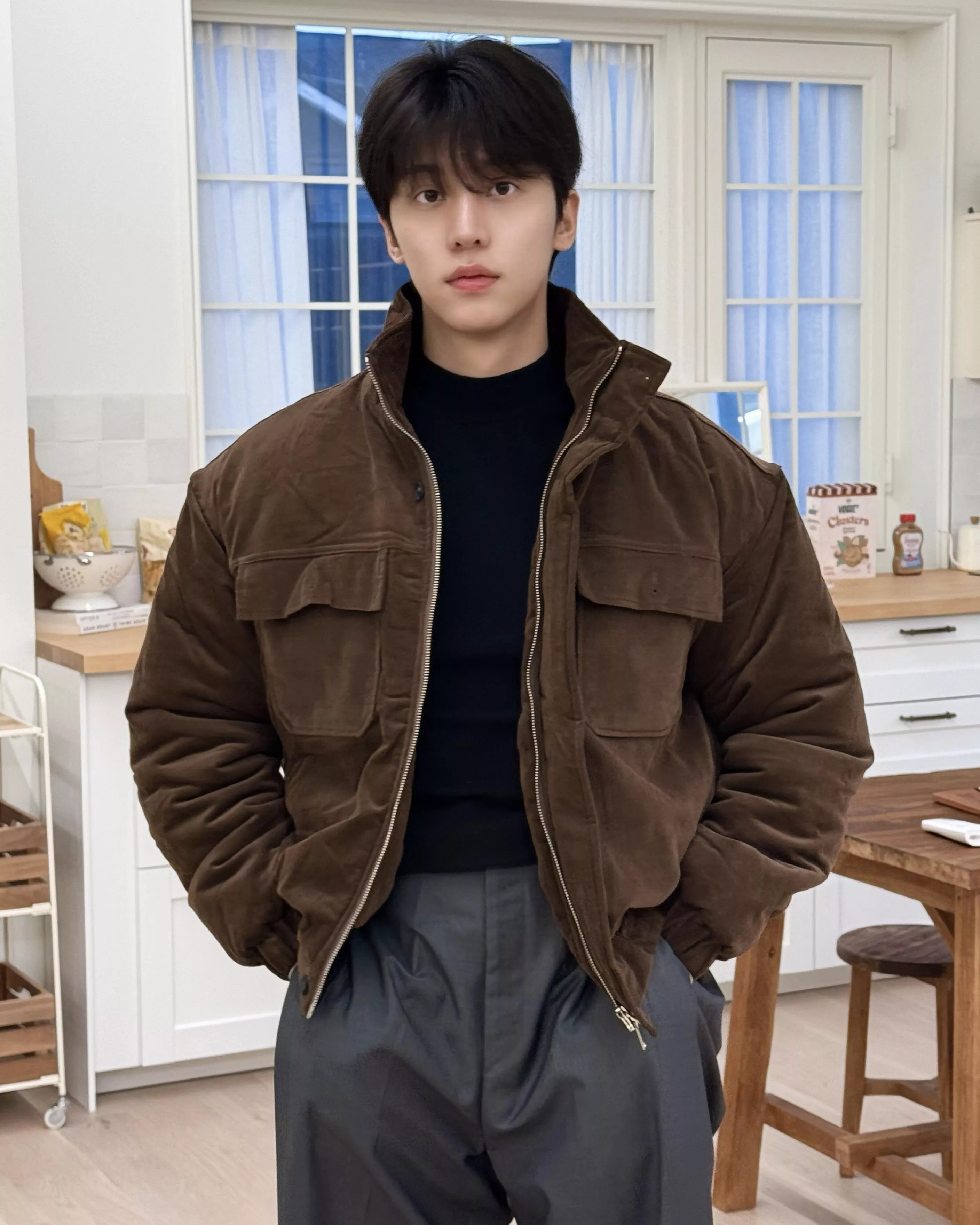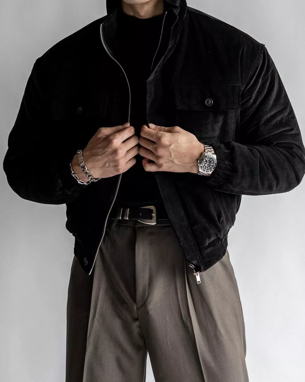 短版剪裁設計的工裝感卡車司機燈芯絨外套