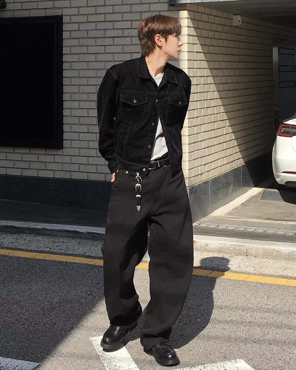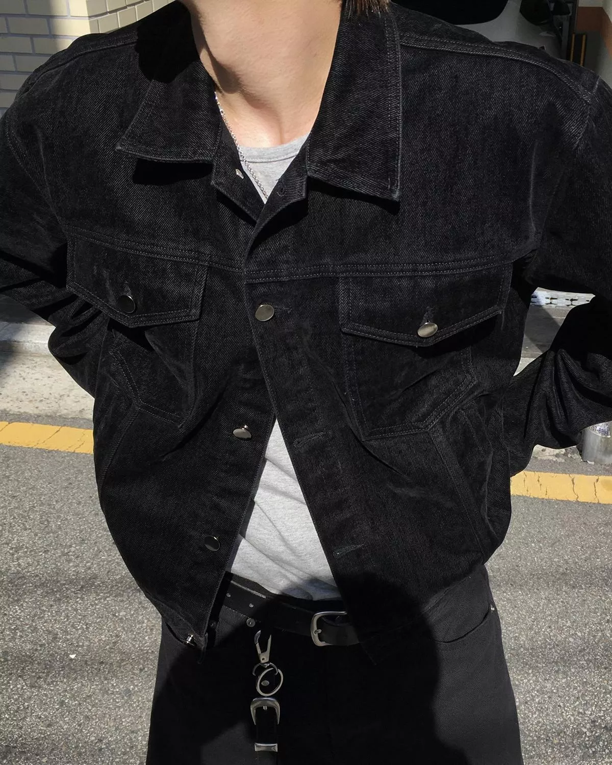 以天鵝絨光澤結合丹寧結構的高質感外套