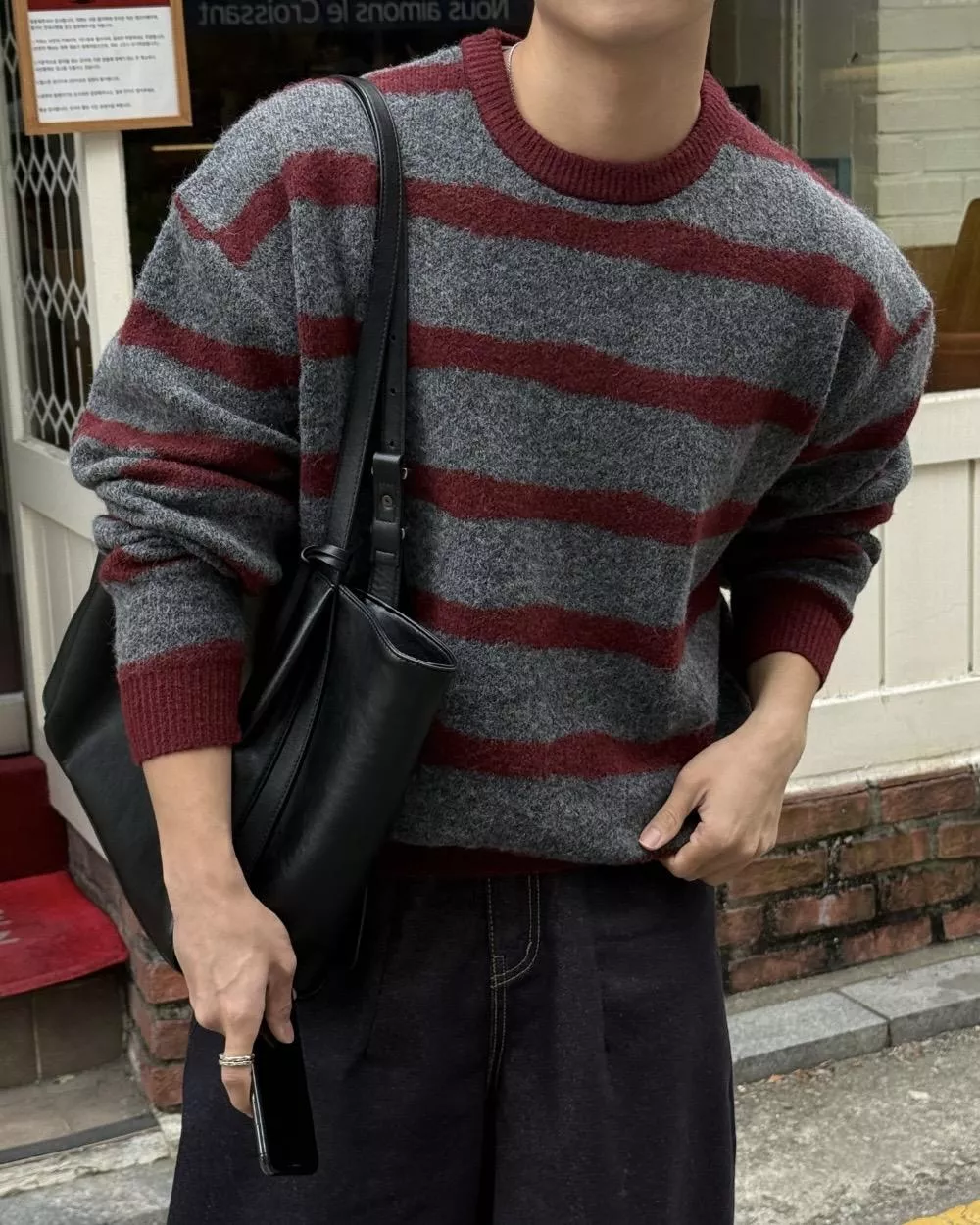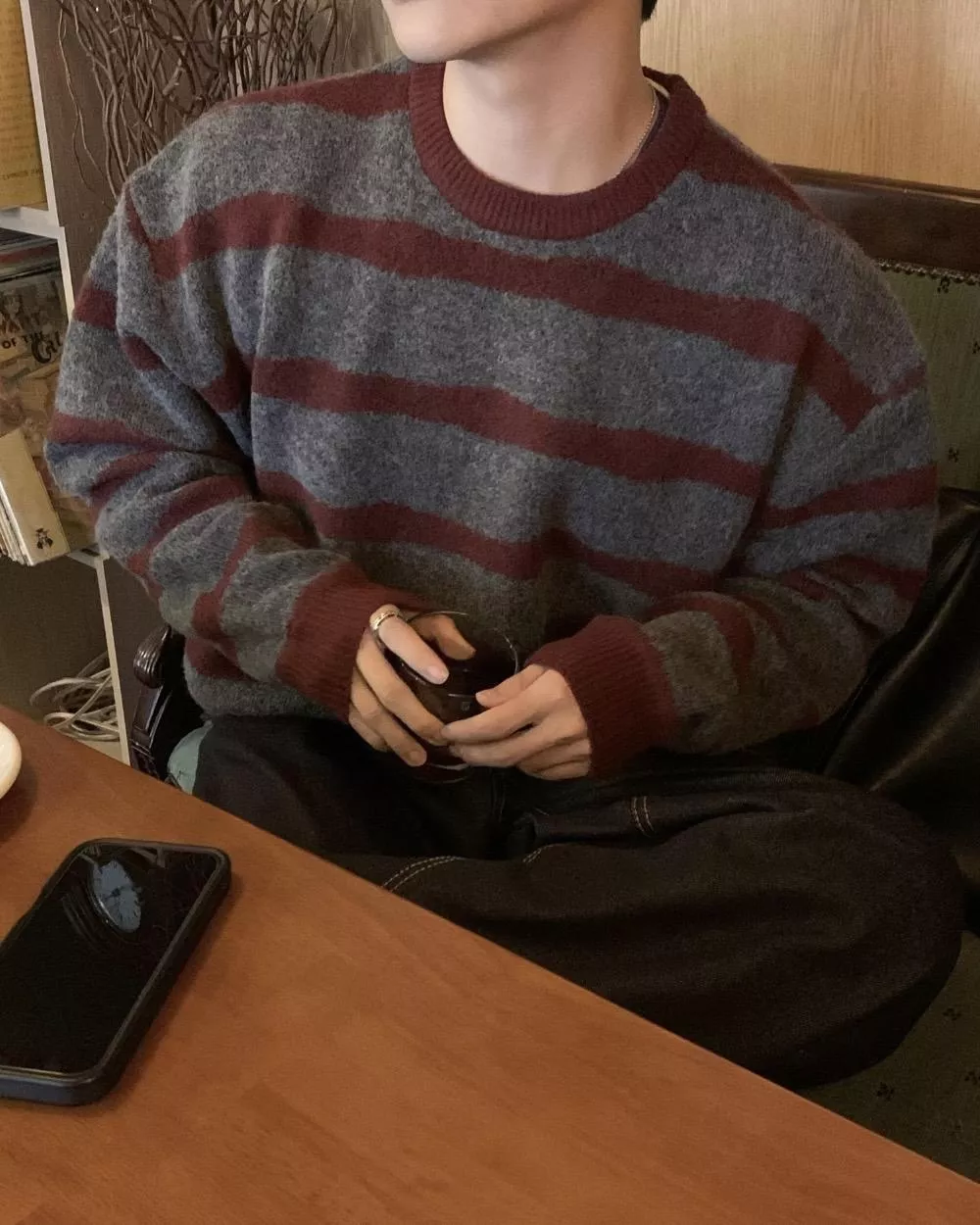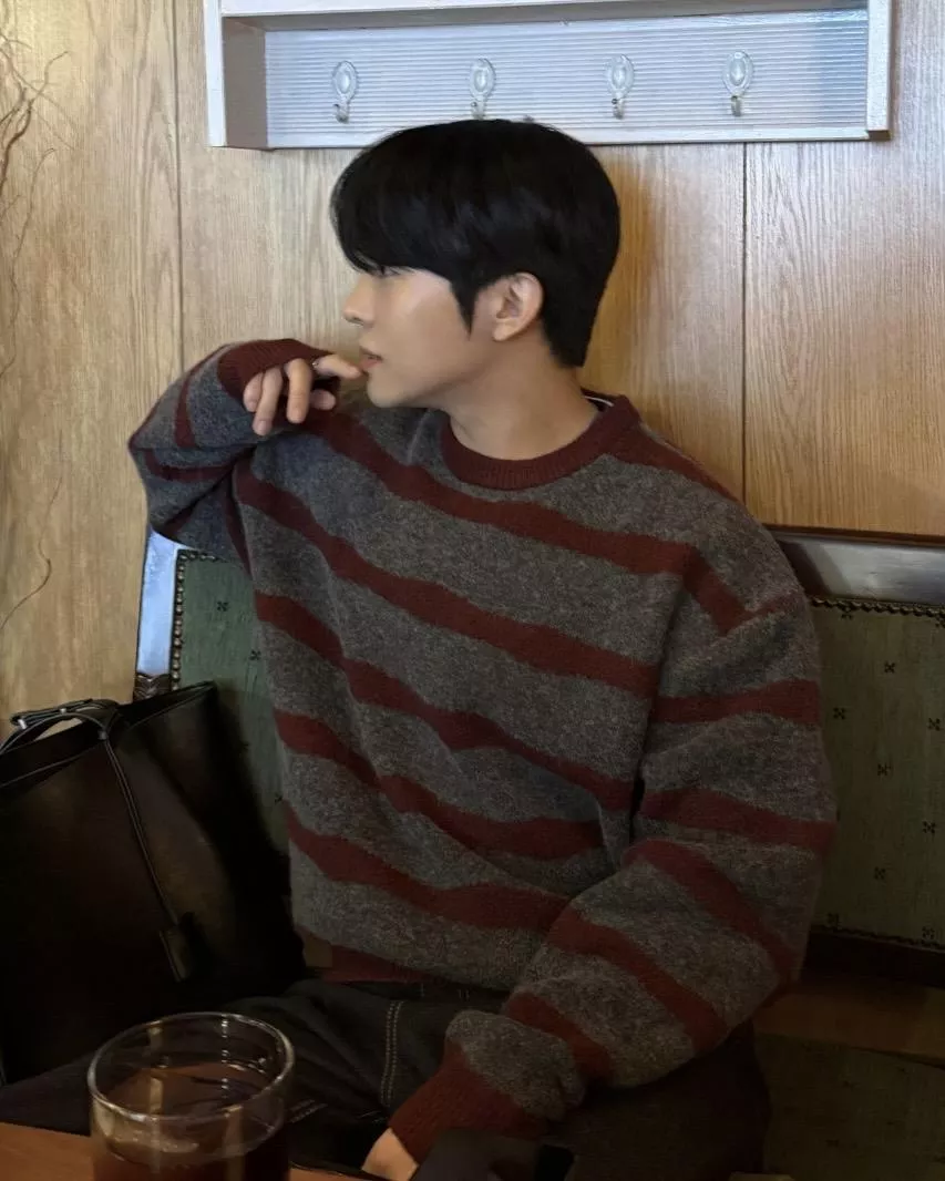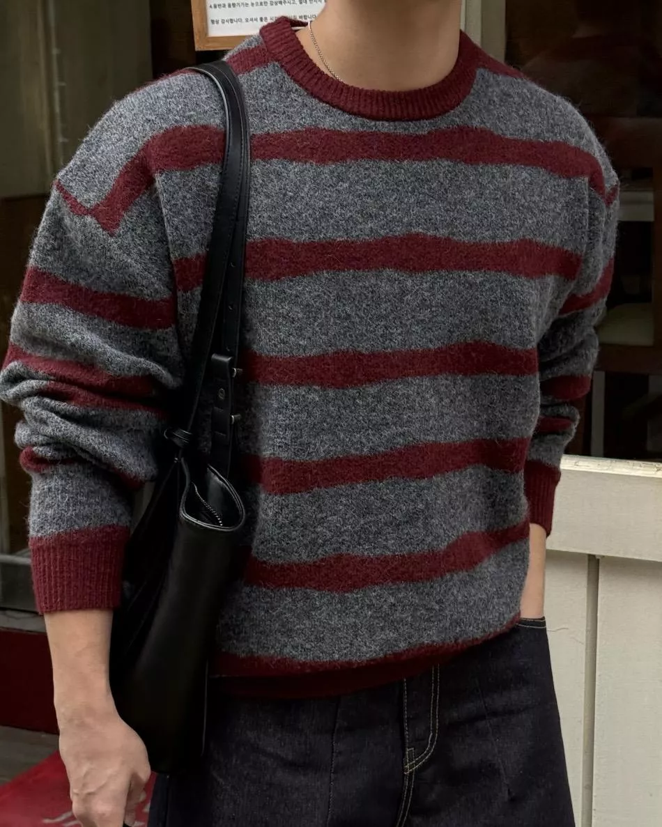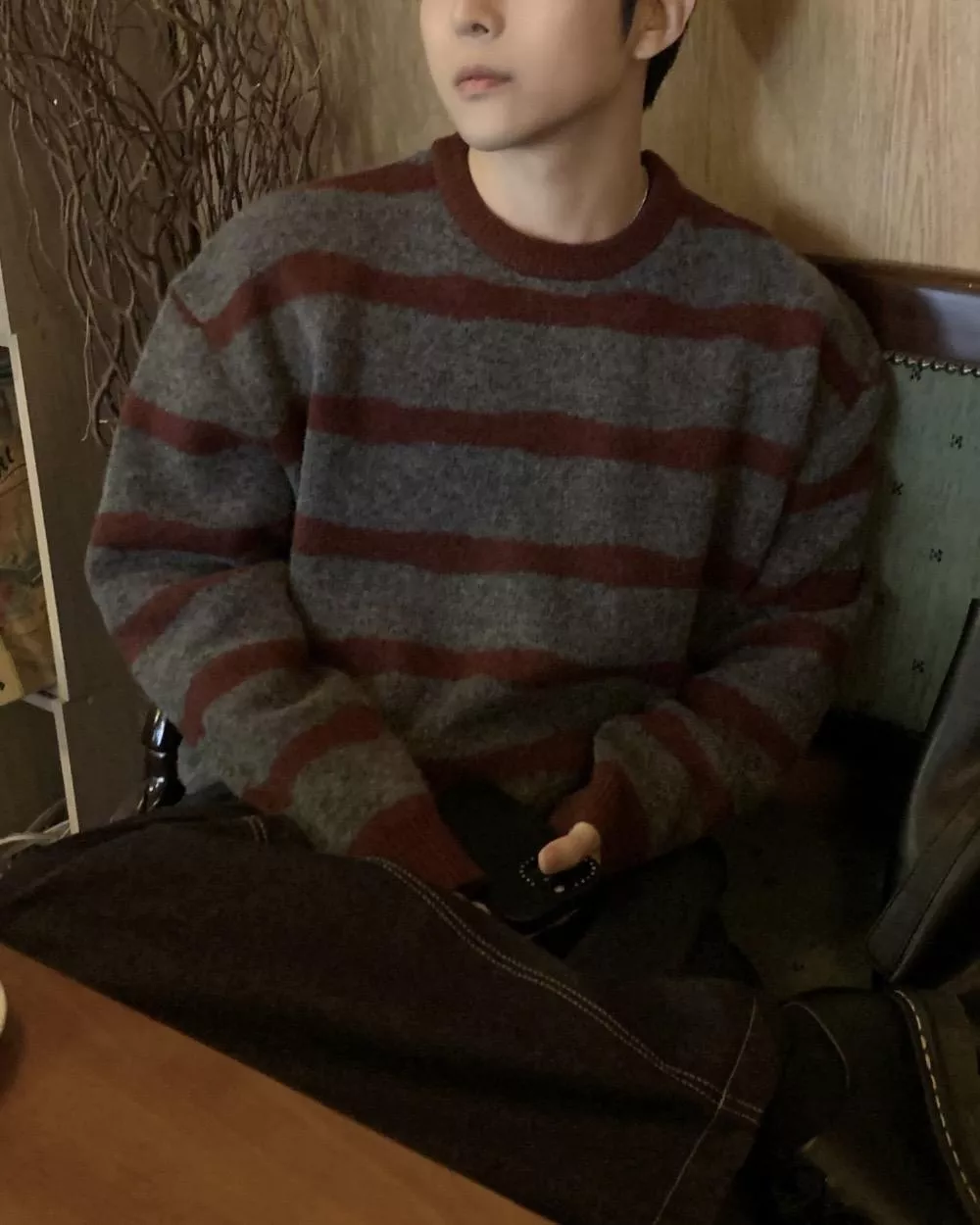 以柔軟的毛絨觸感打造的條紋針織🧶