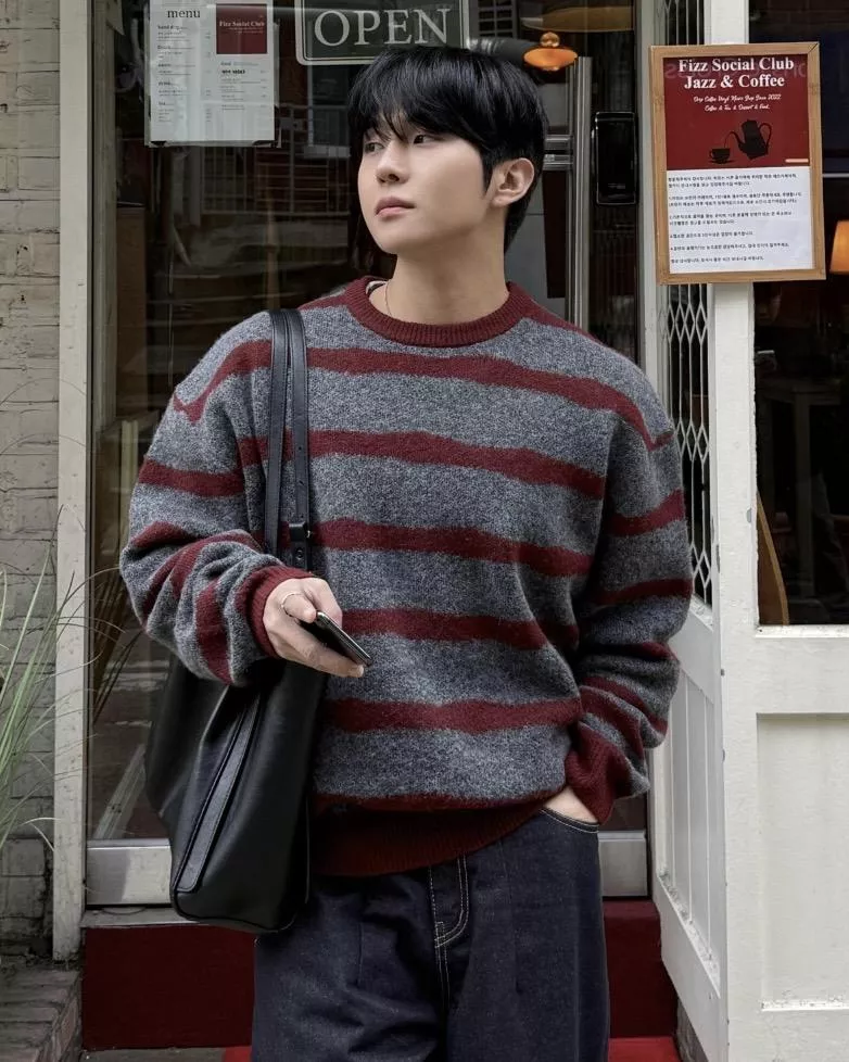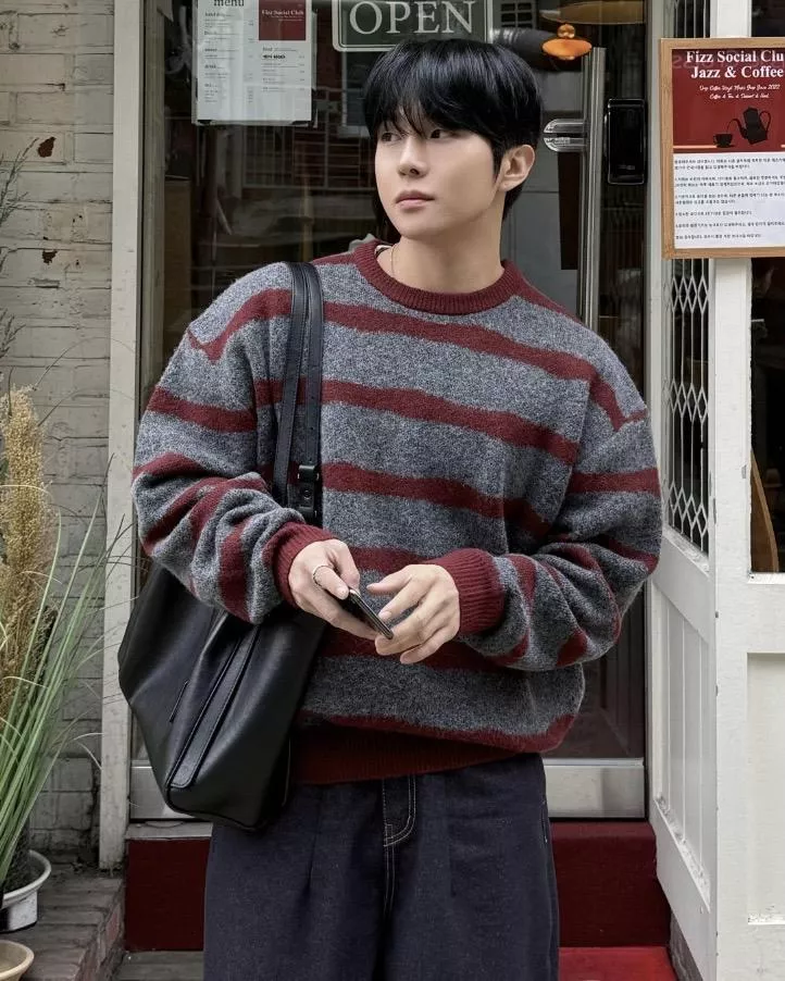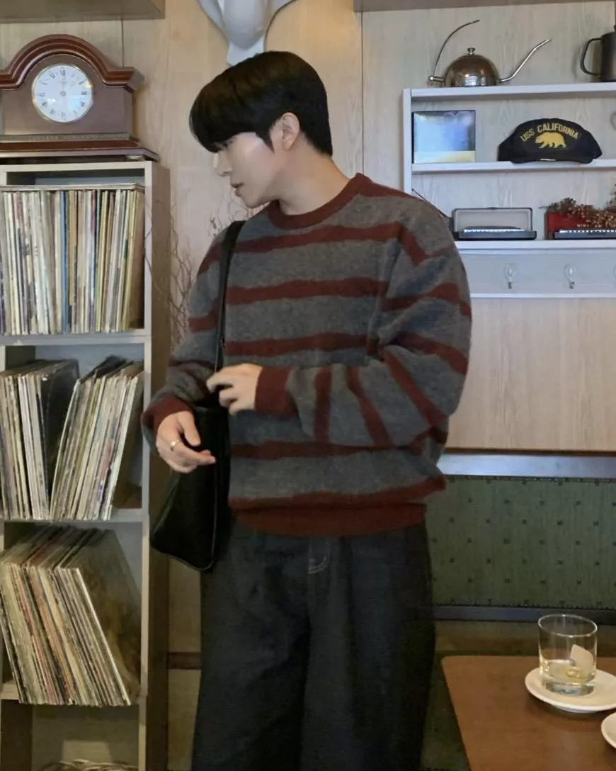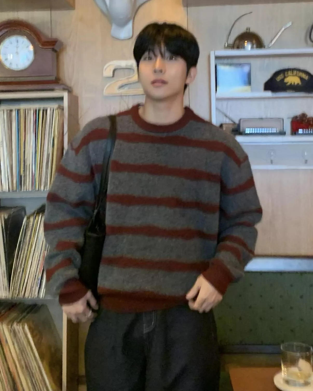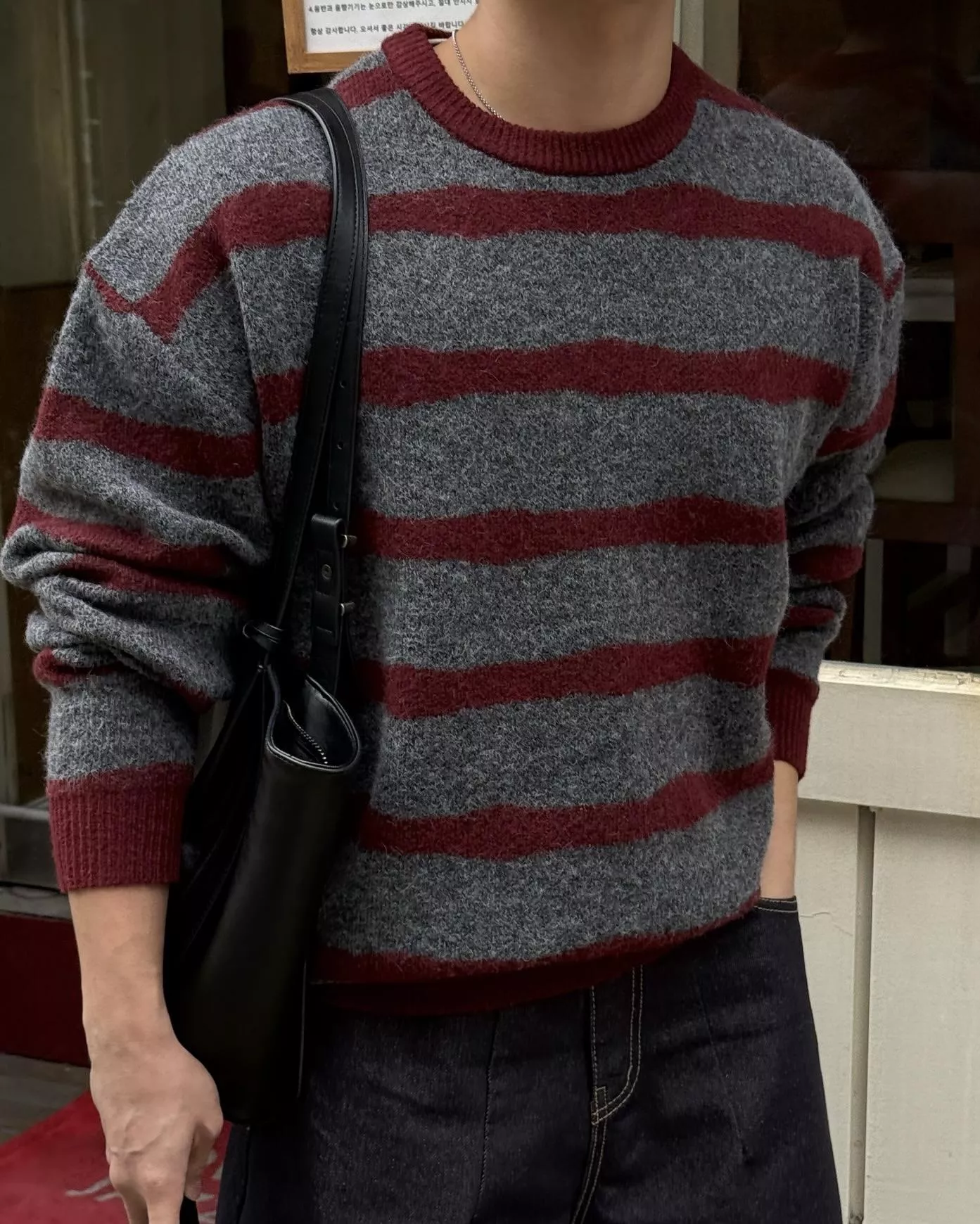 以柔軟的毛絨觸感打造的條紋針織🧶