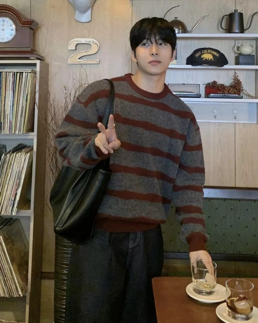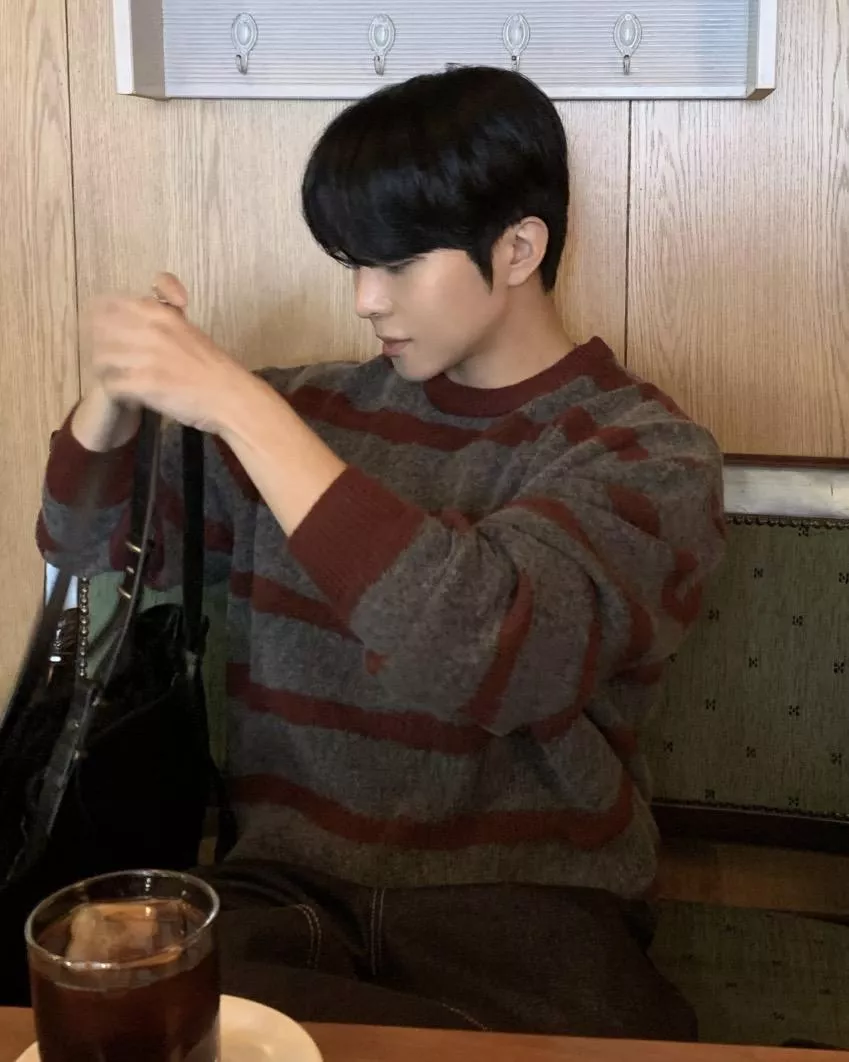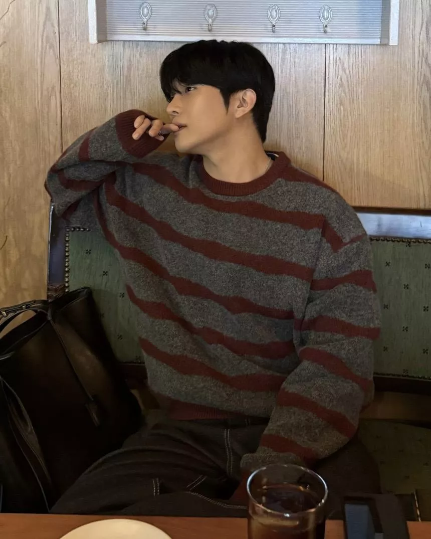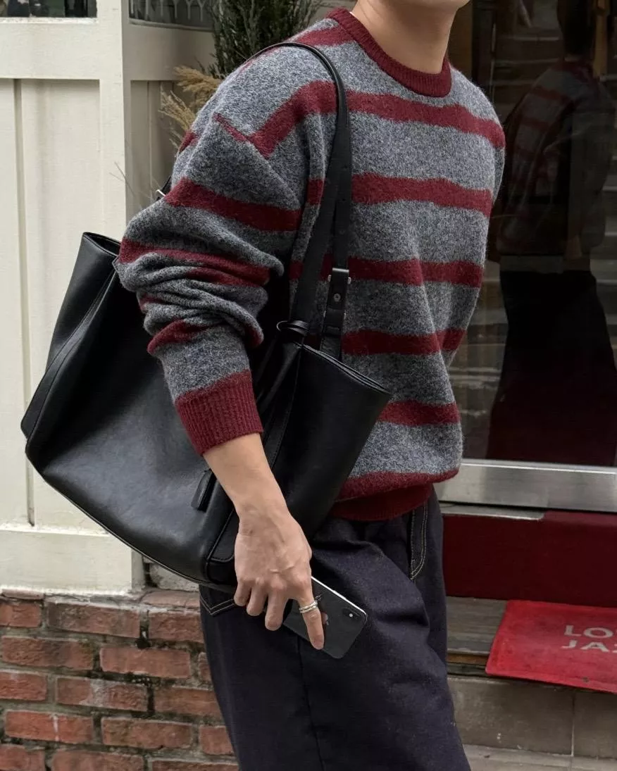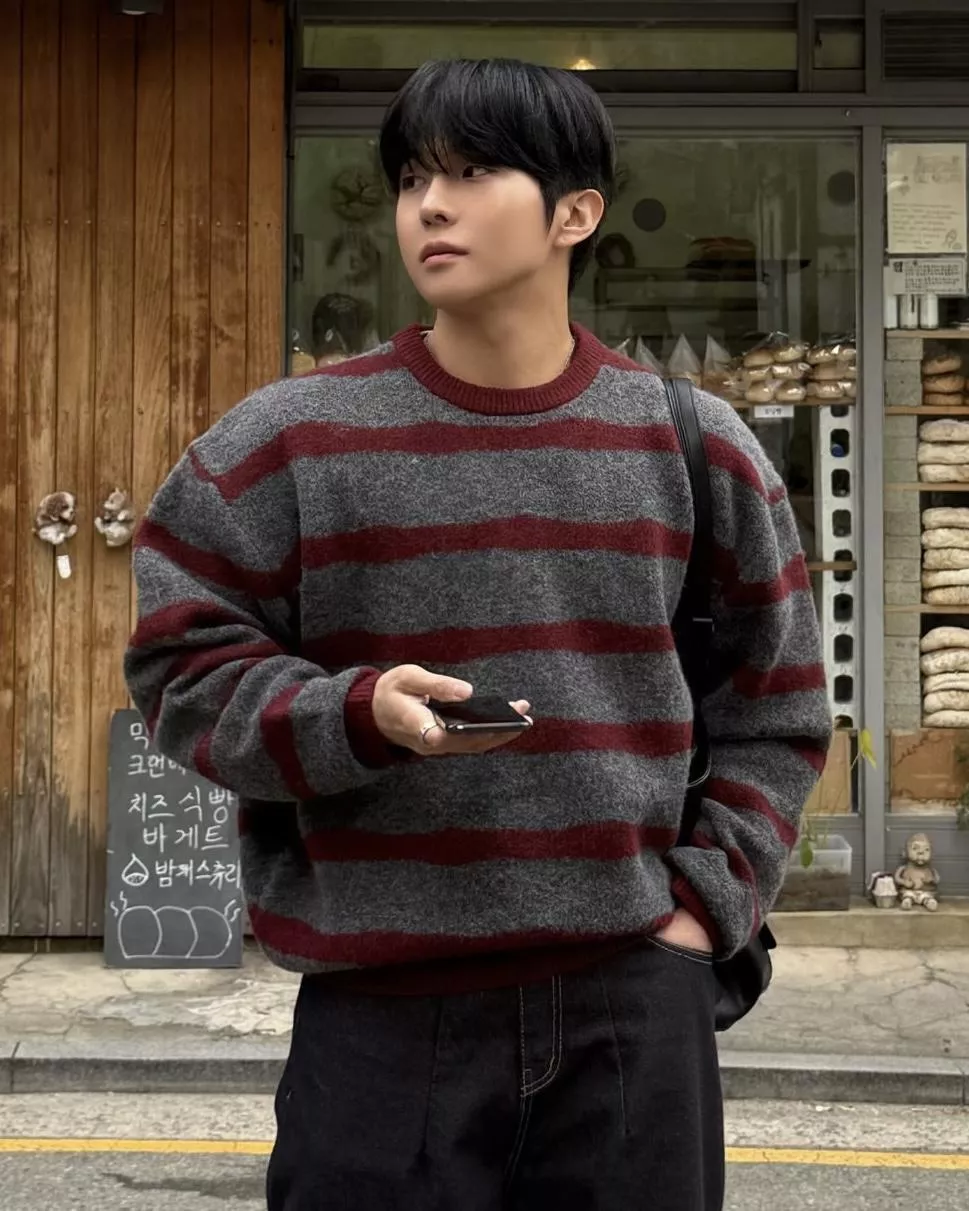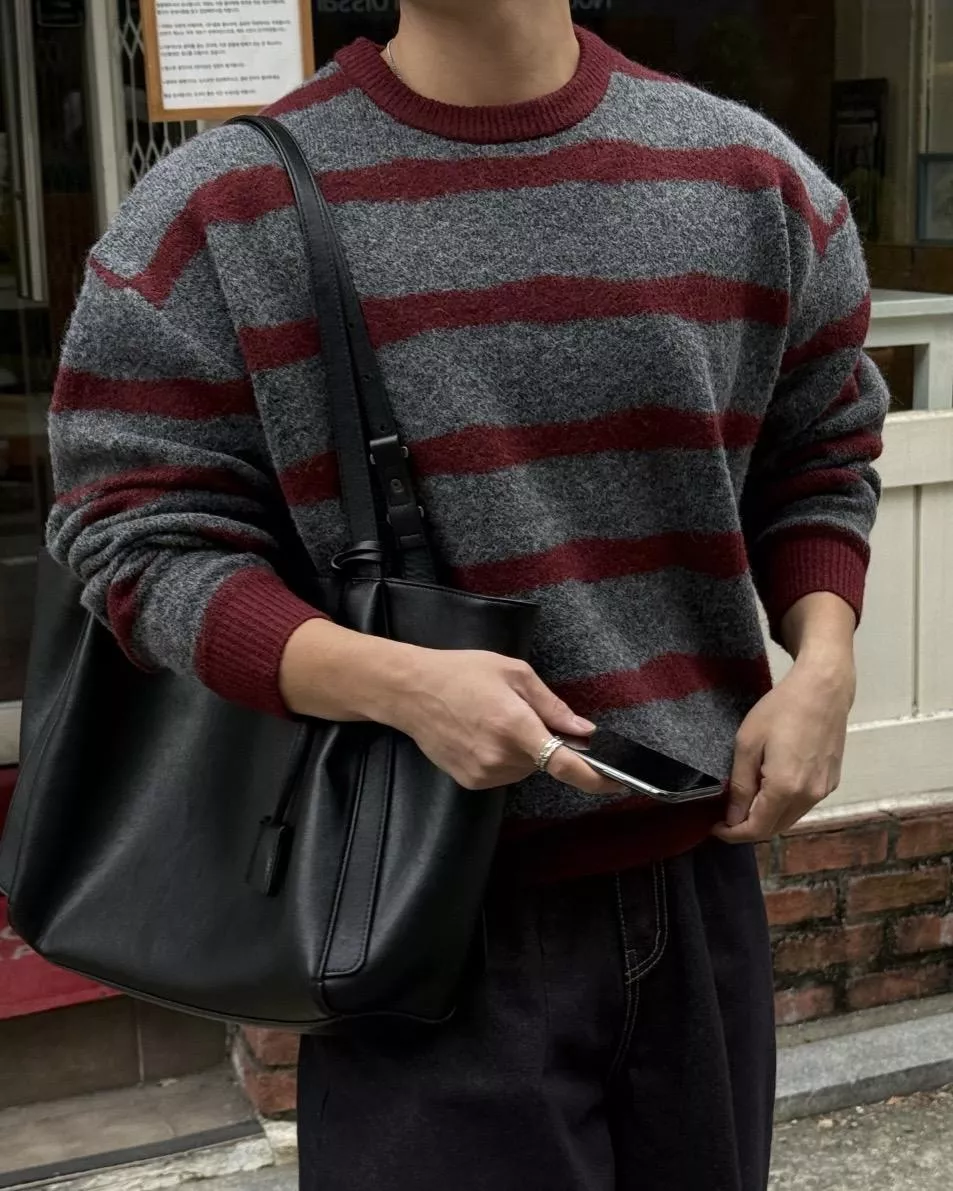 以柔軟的毛絨觸感打造的條紋針織🧶
