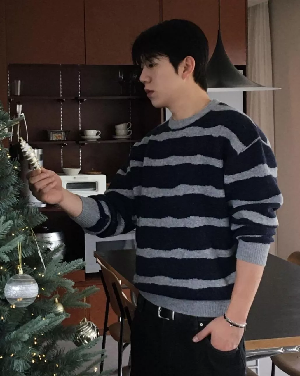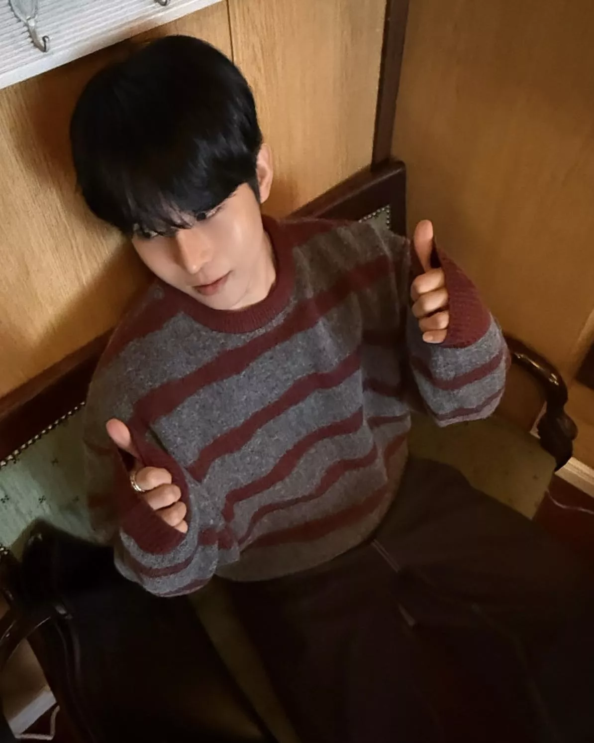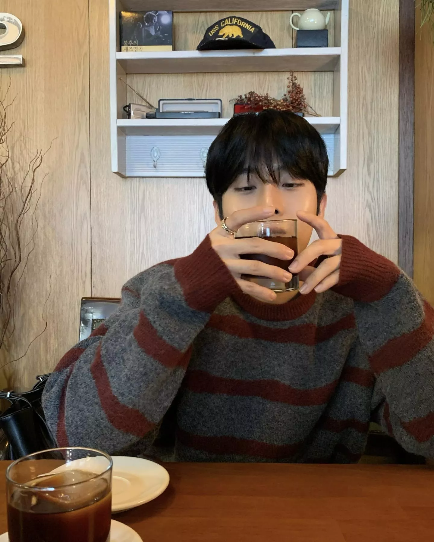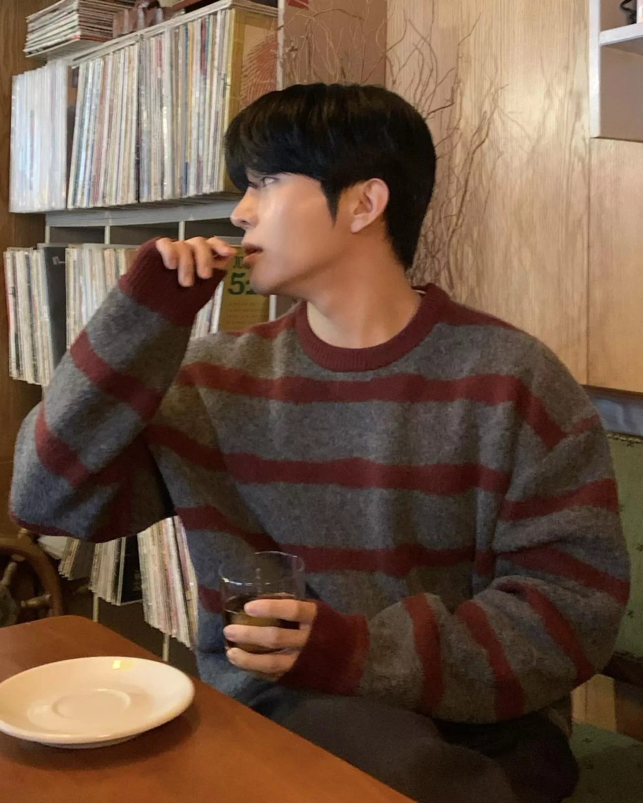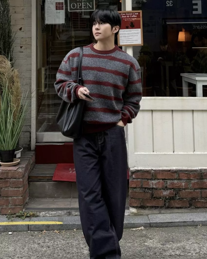 以柔軟的毛絨觸感打造的條紋針織🧶