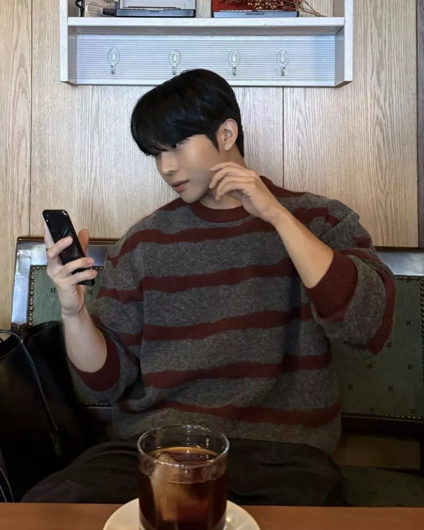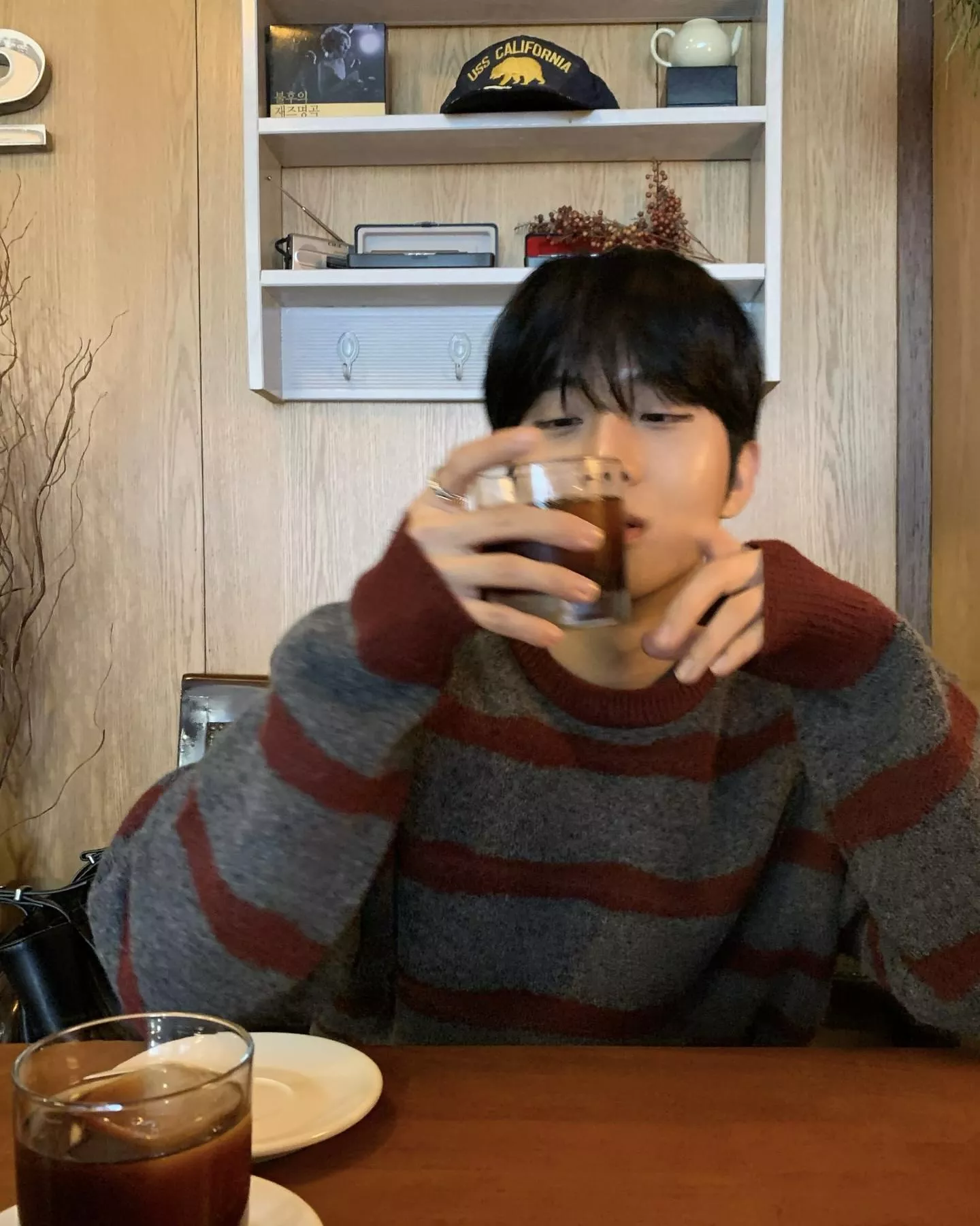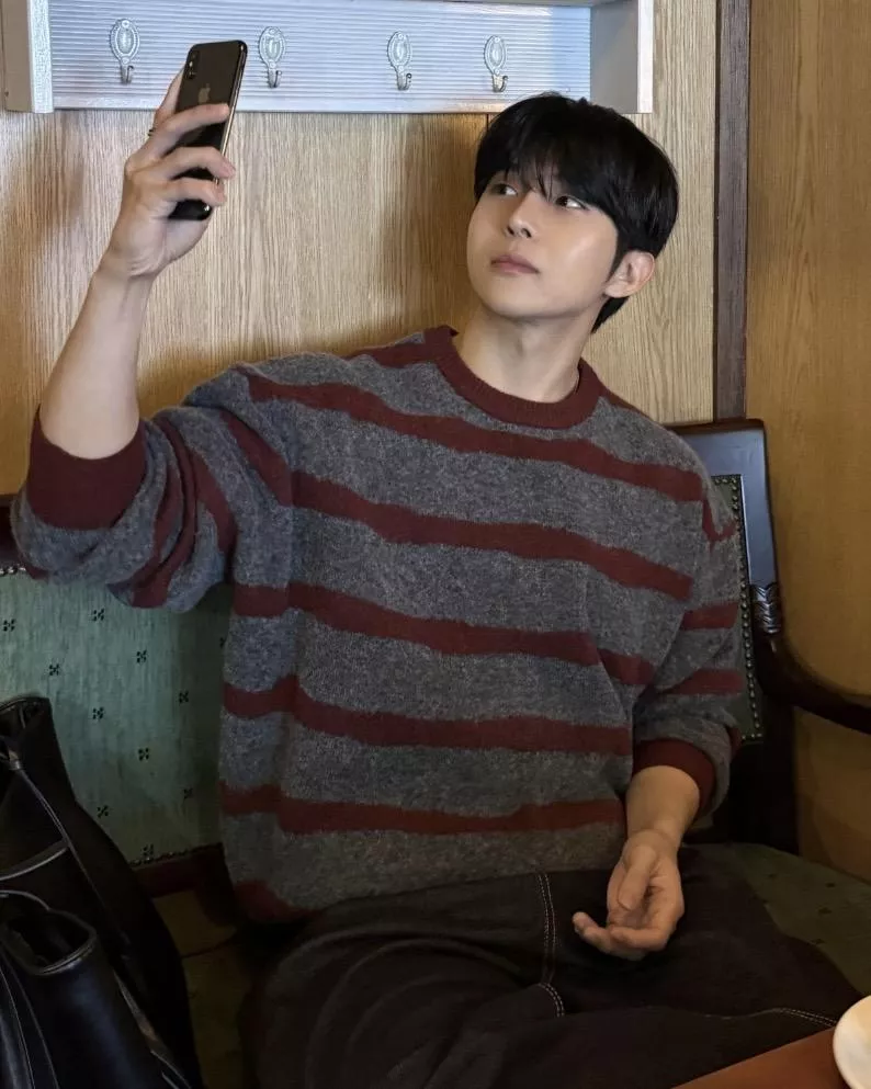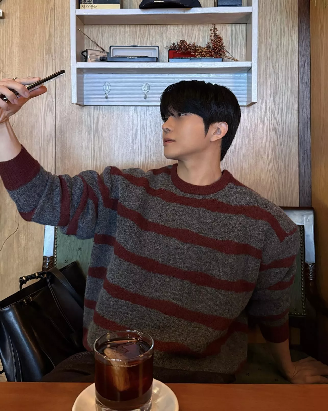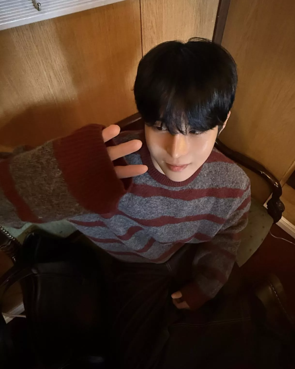 以柔軟的毛絨觸感打造的條紋針織🧶