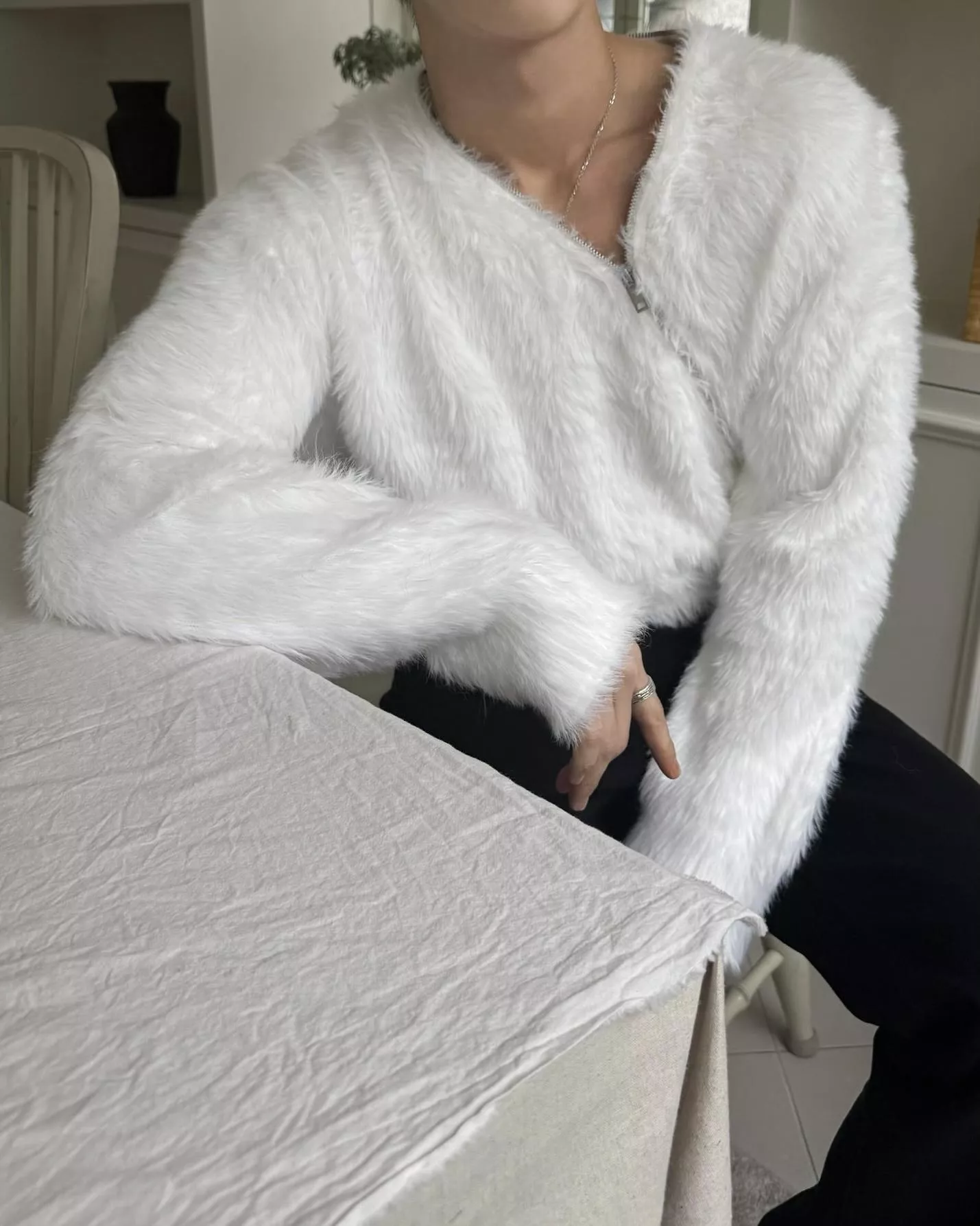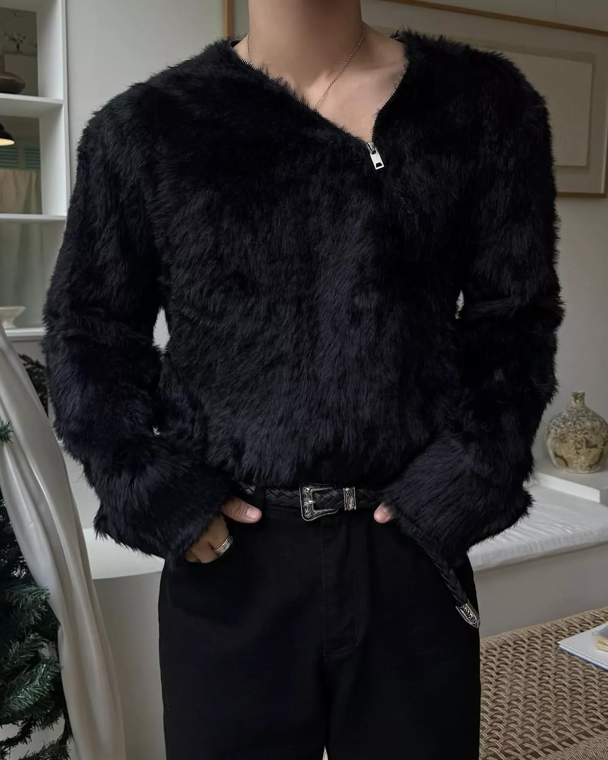 𝑯𝒐𝒕.ᐟ.ᐟ視覺感不對稱拉鍊安哥拉毛衣