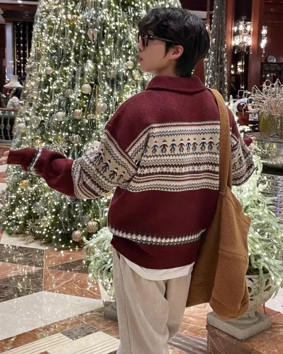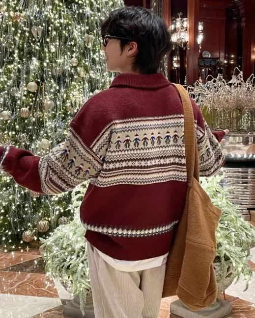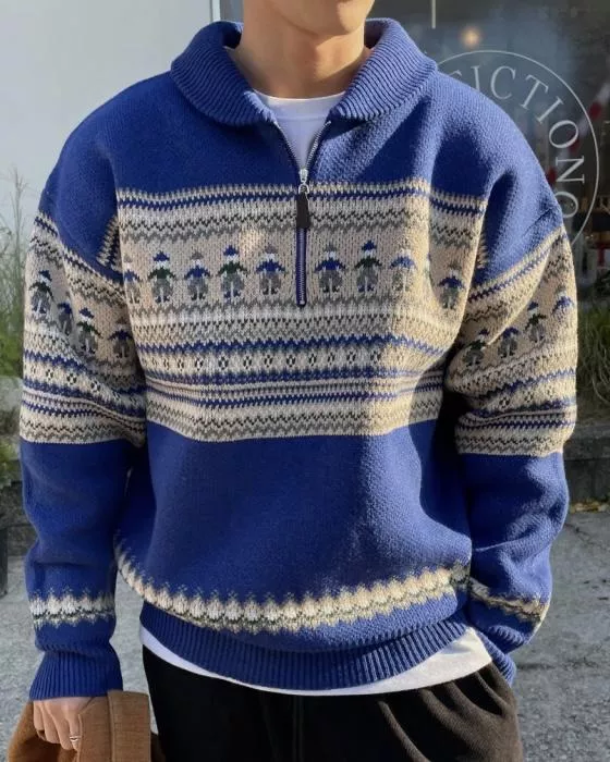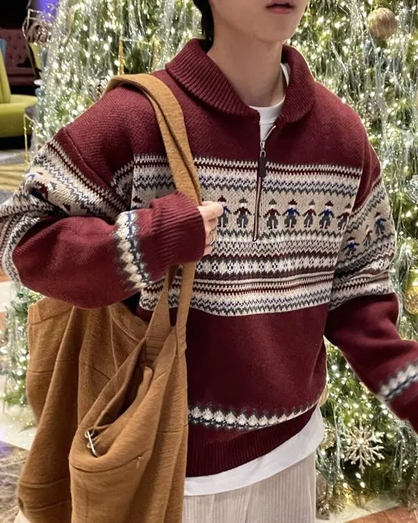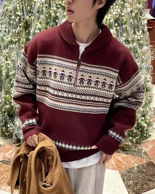 聖誕氛圍 挪威民族圖騰拉鍊套衫