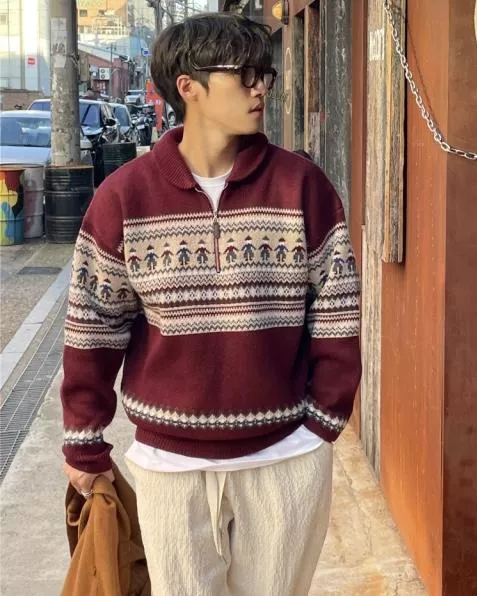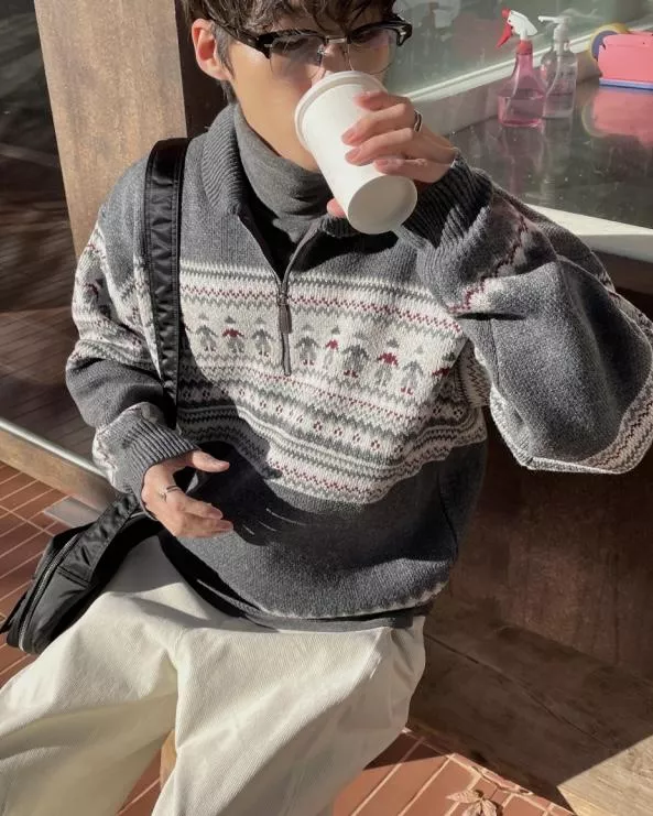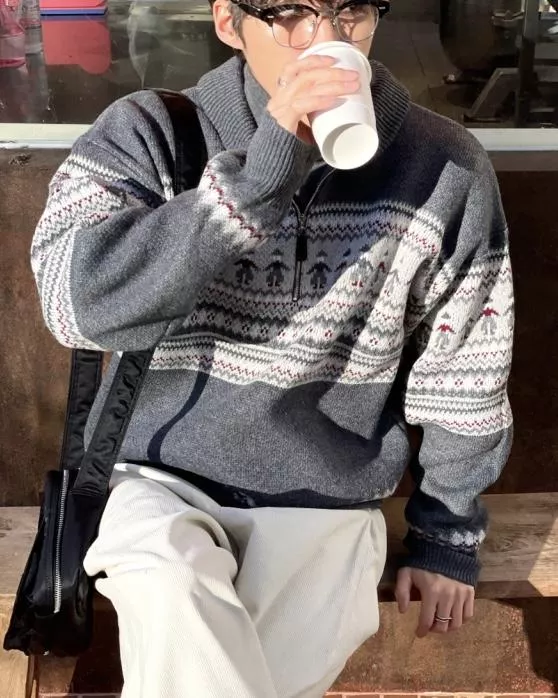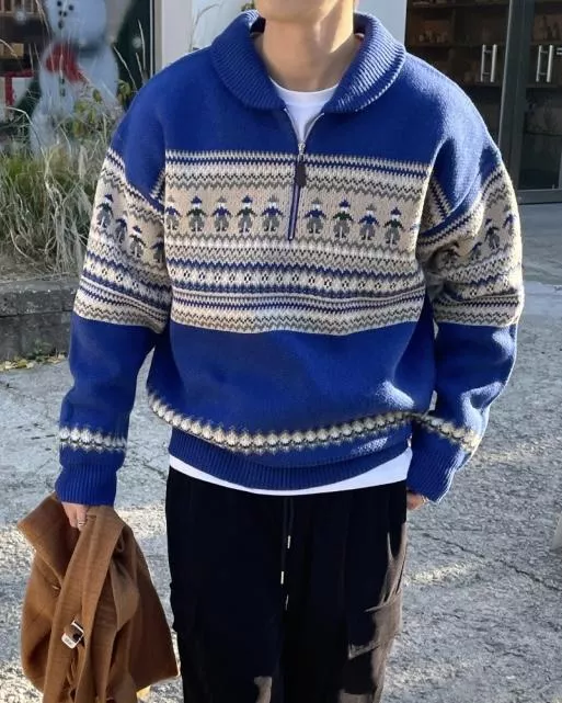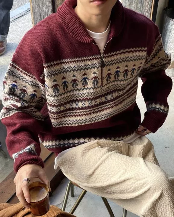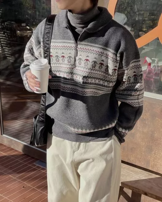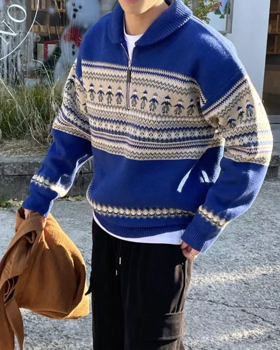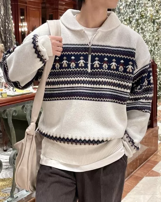 都超級適合拿來穿的北歐圖騰感拉鍊套衫♥️
