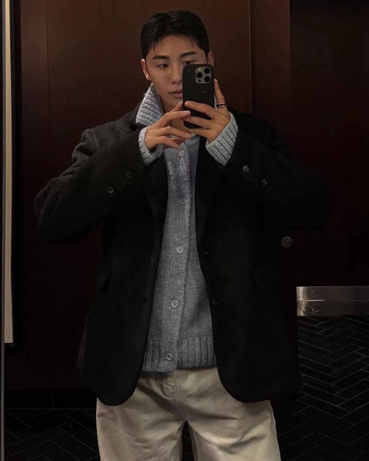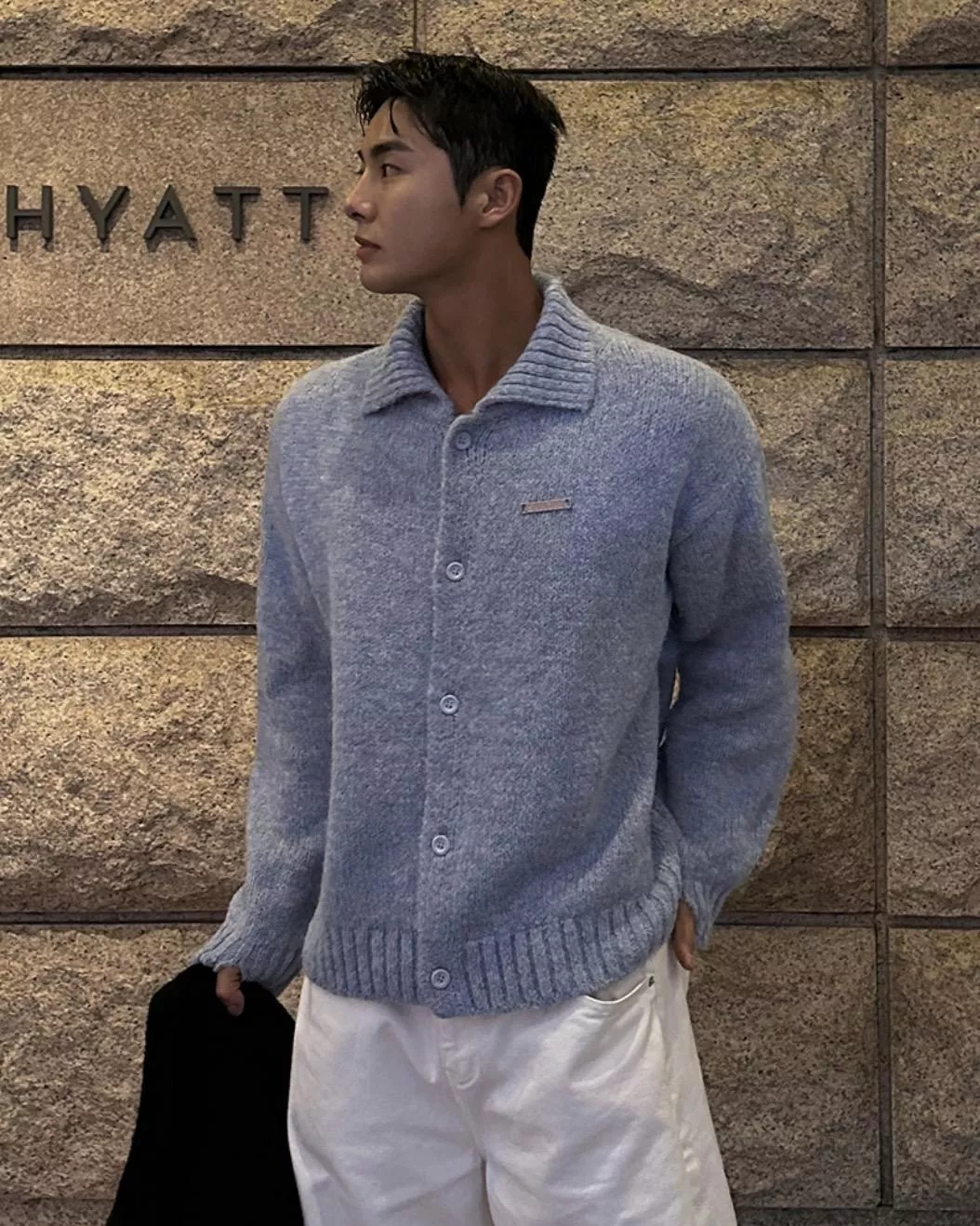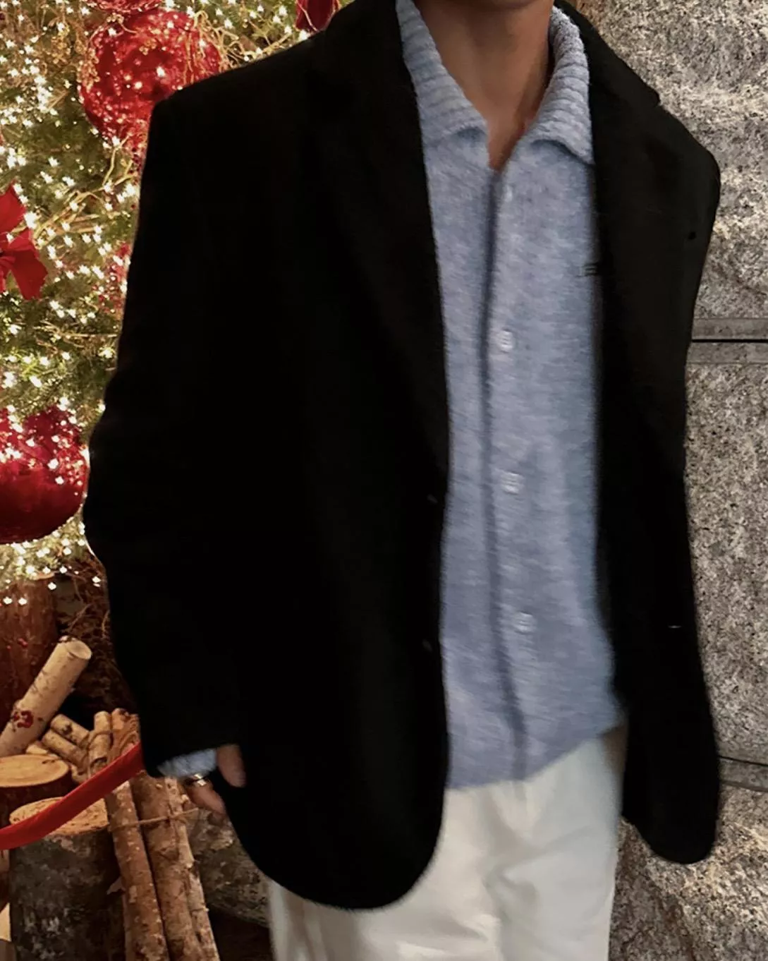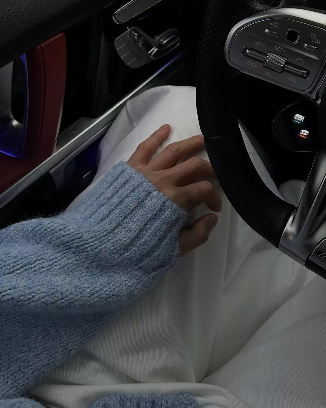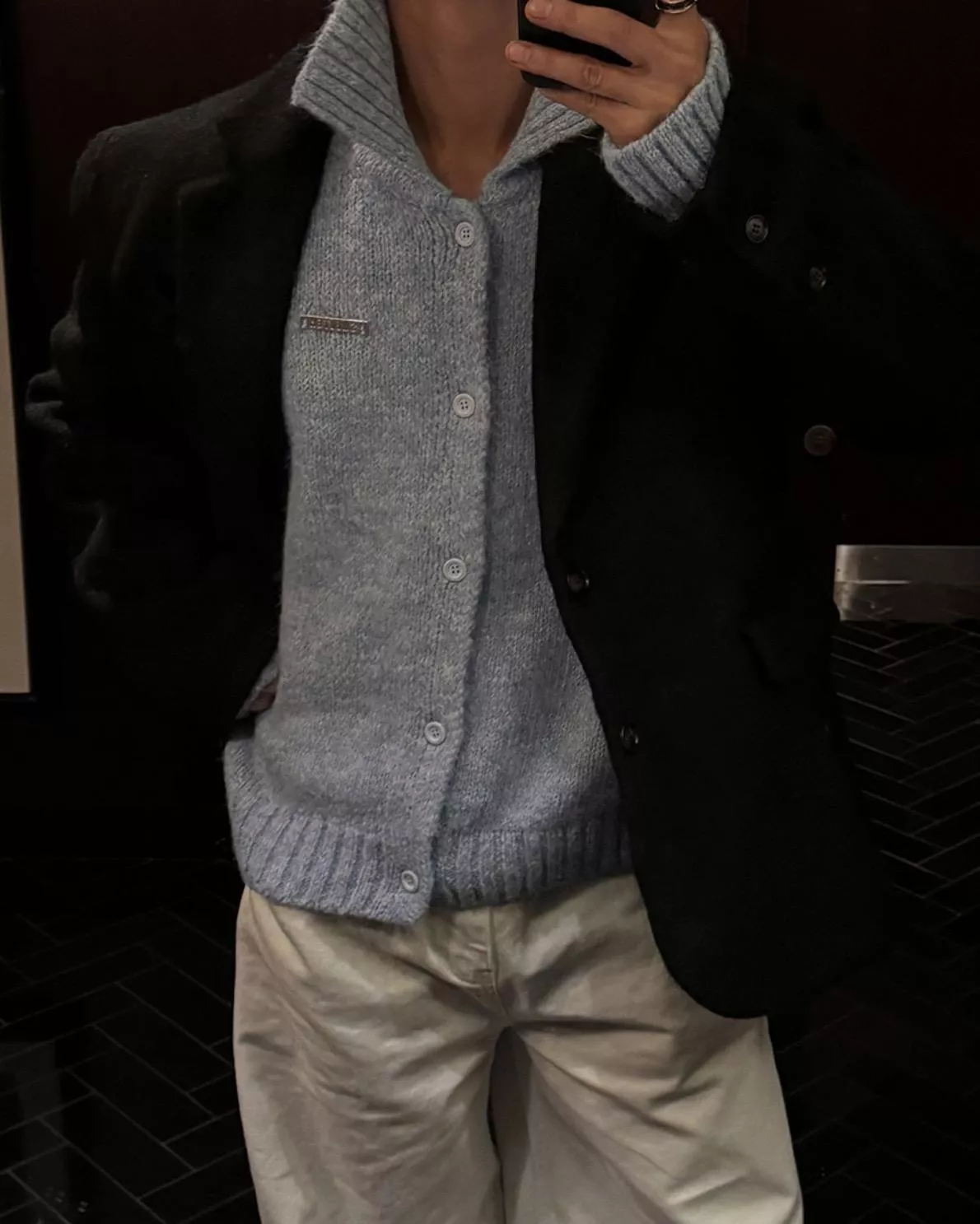 天藍色與灰色是以多色針織混紡的斑紋感面料!✨