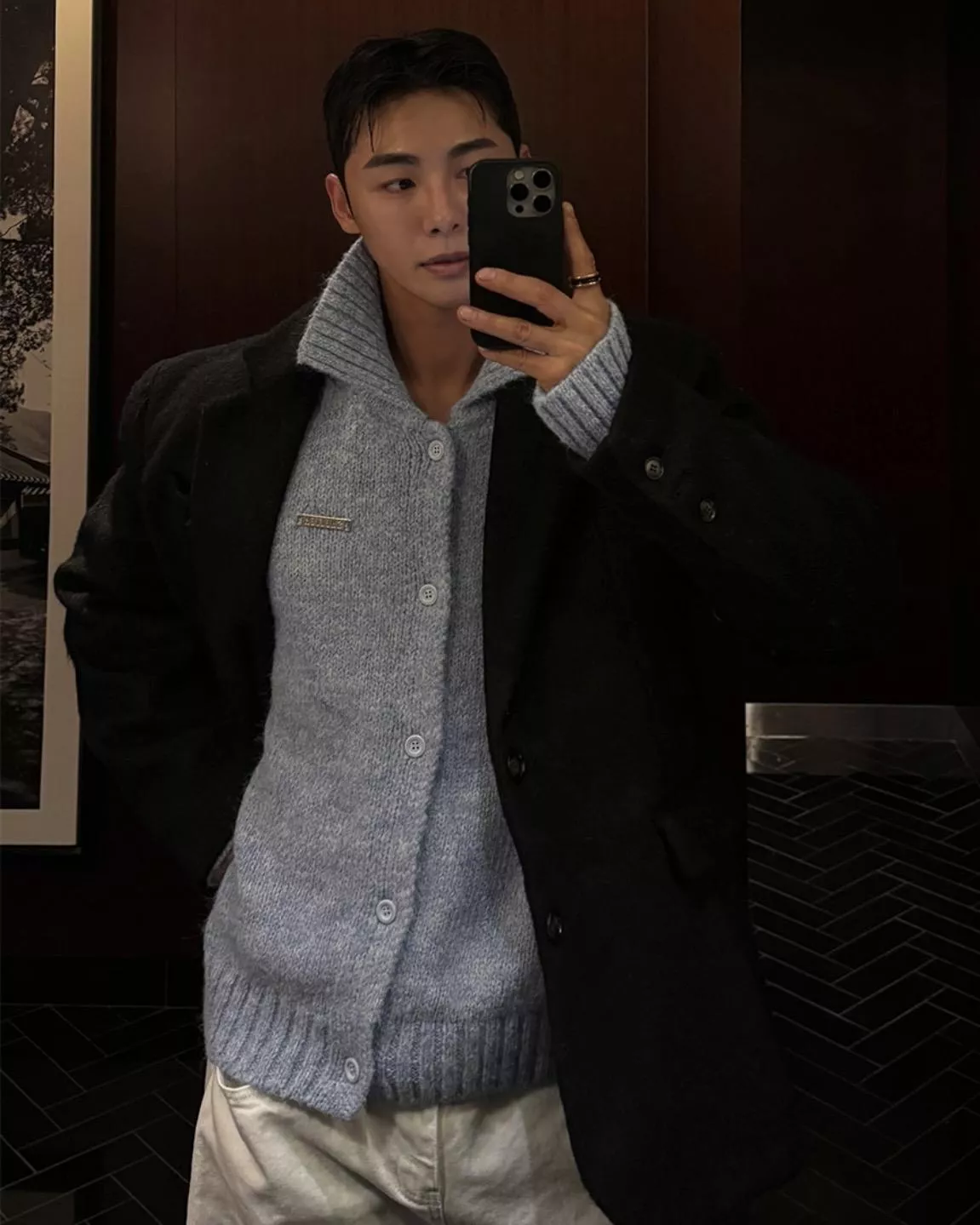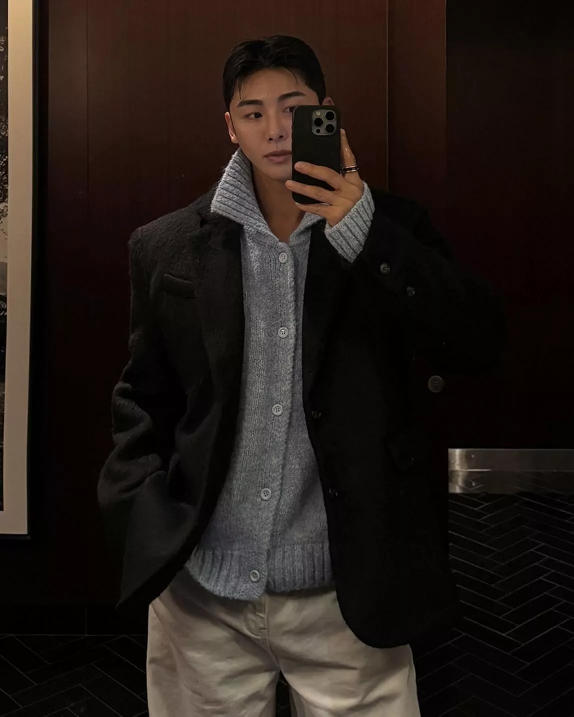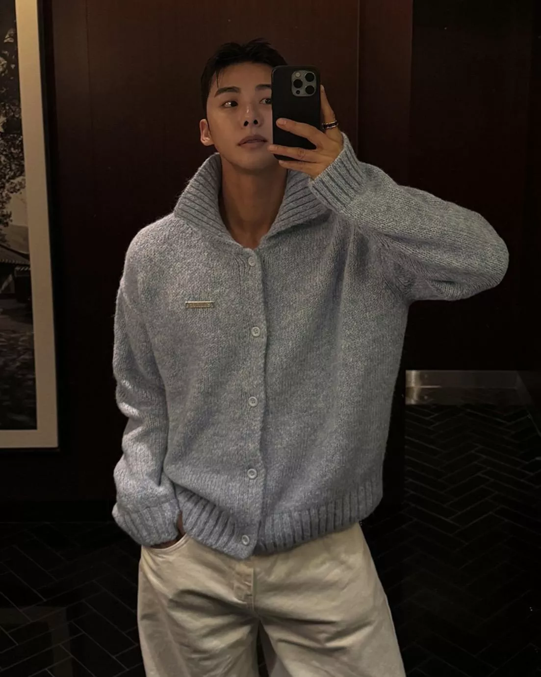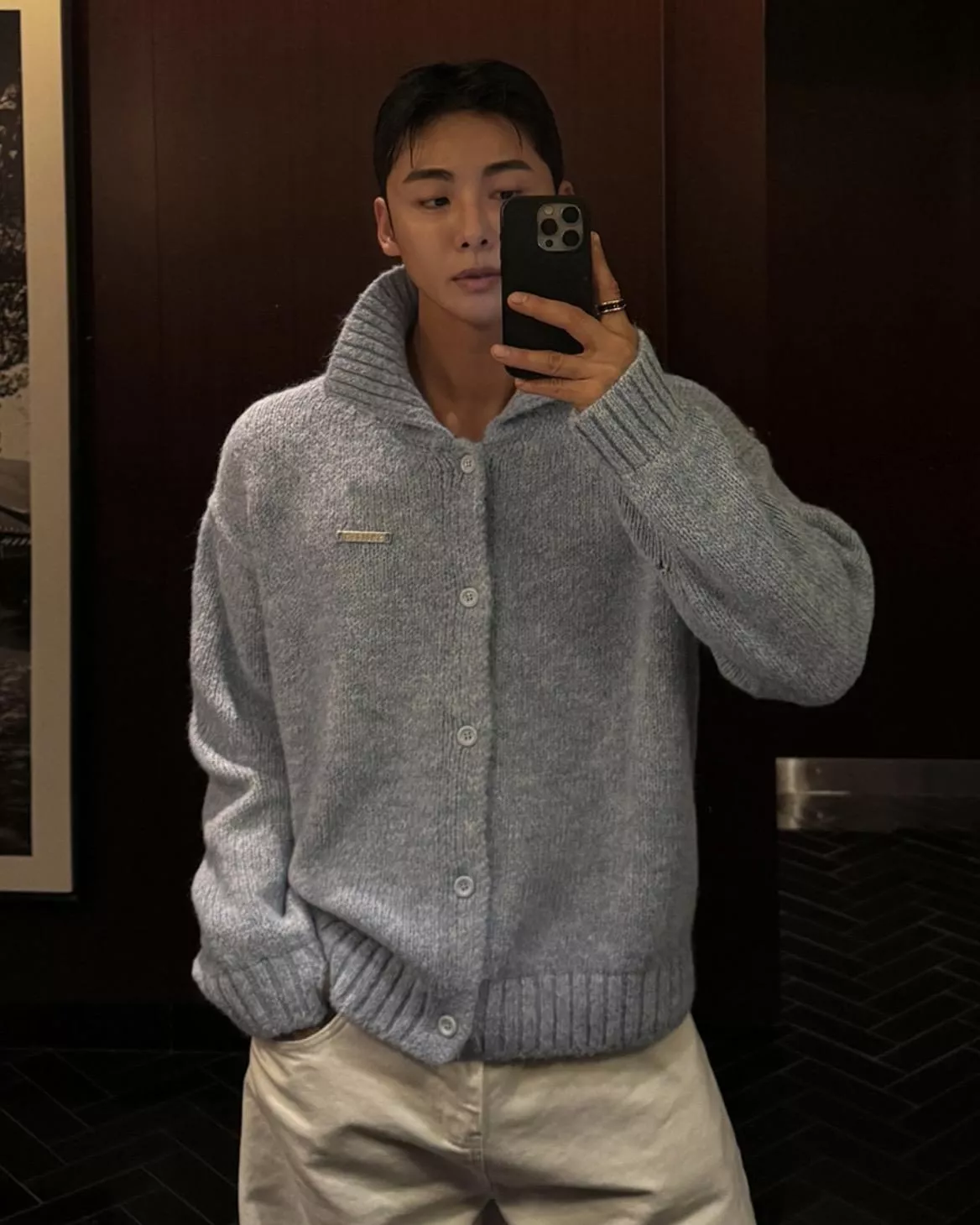 天藍色與灰色是以多色針織混紡的斑紋感面料!✨
