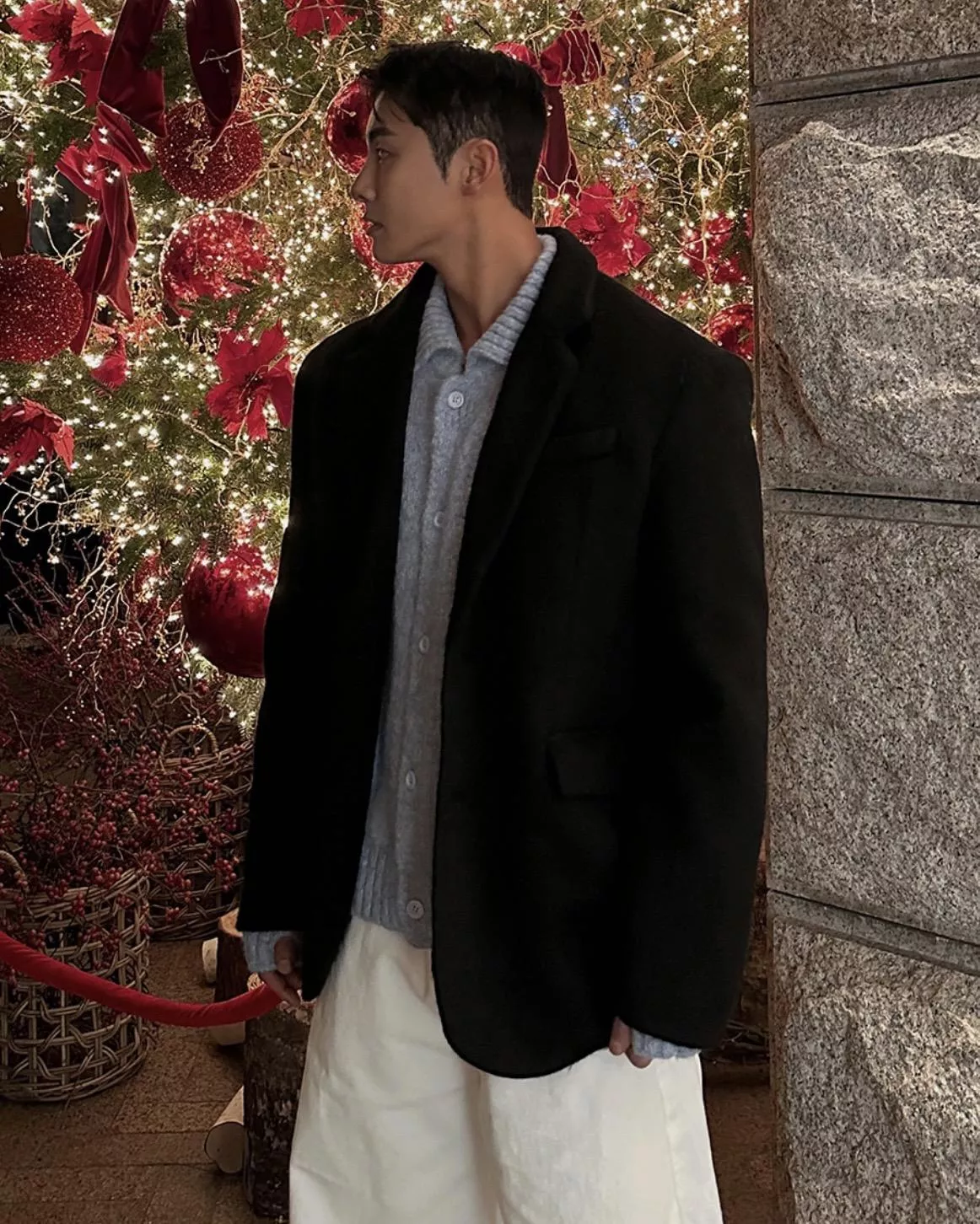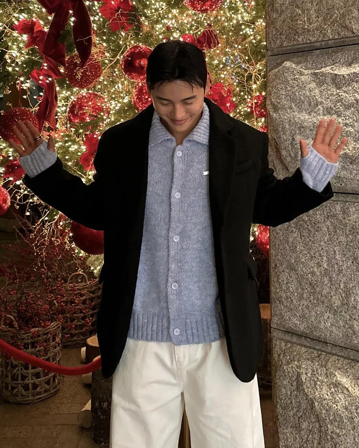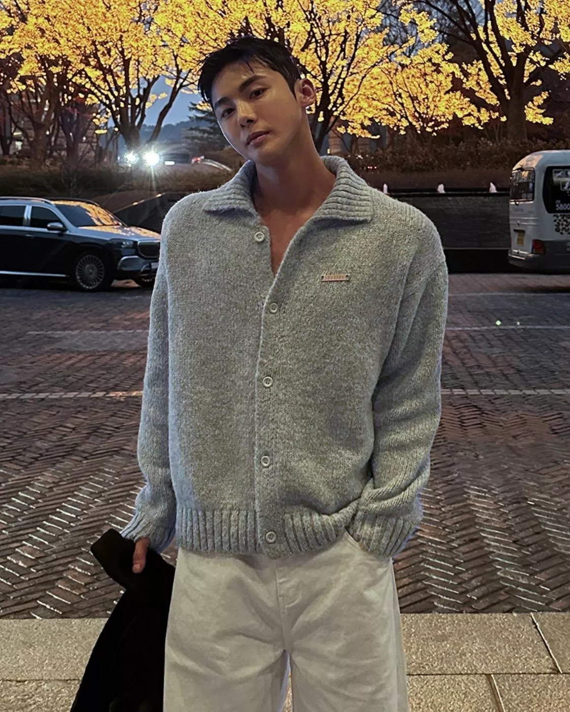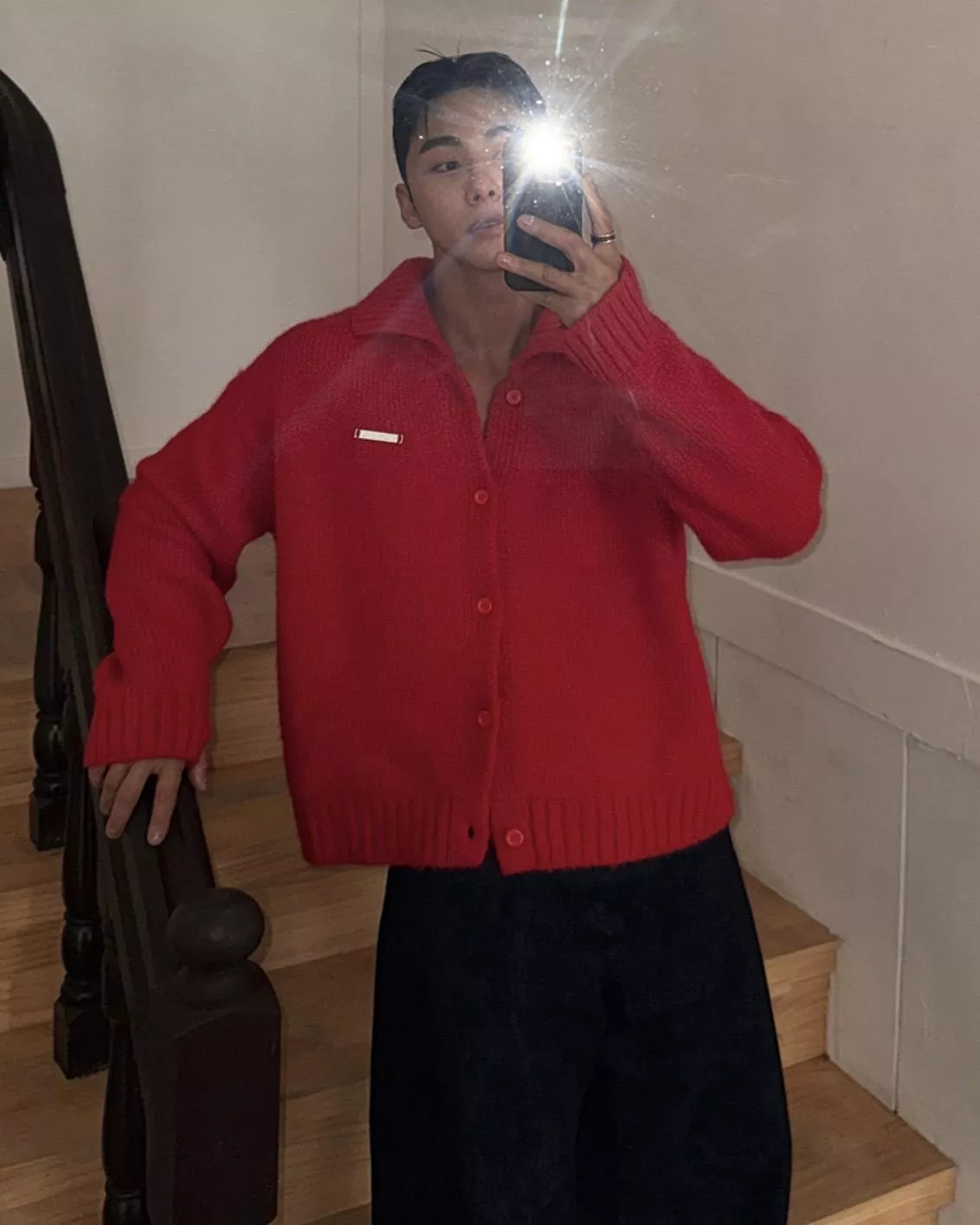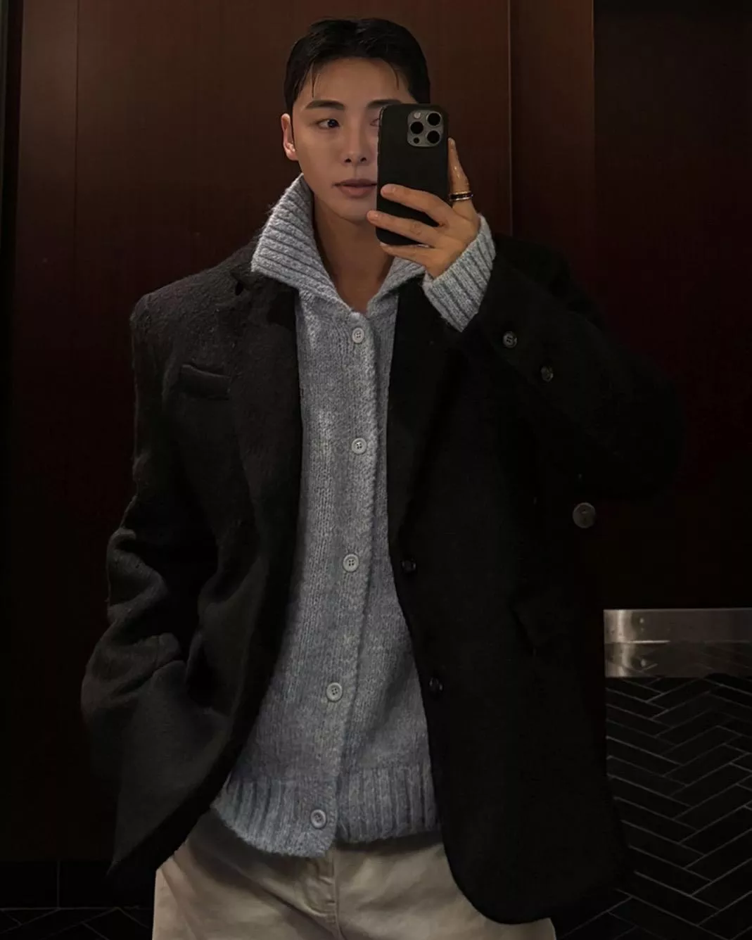 天藍色與灰色是以多色針織混紡的斑紋感面料!✨