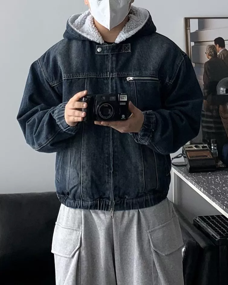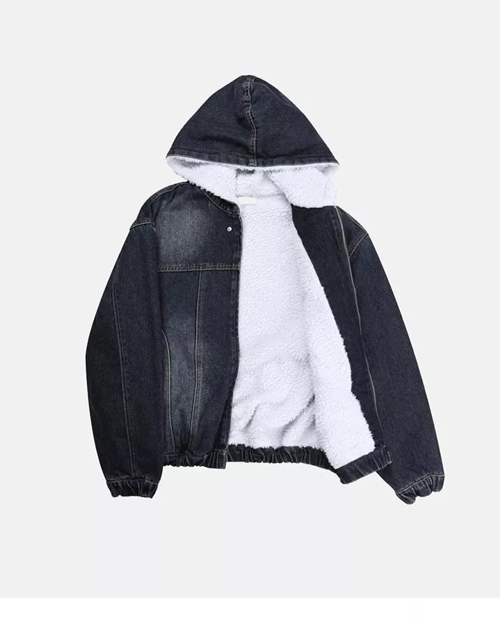 短版連帽 羊羔毛內裏 丹寧牛仔外套